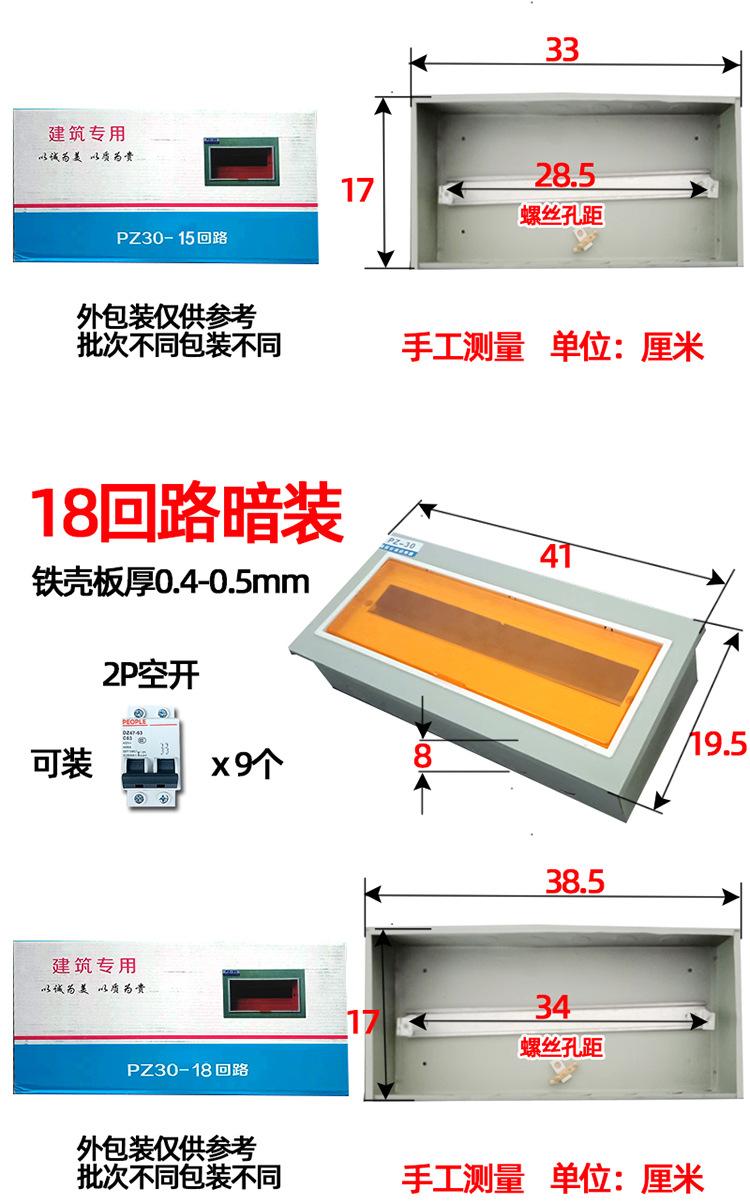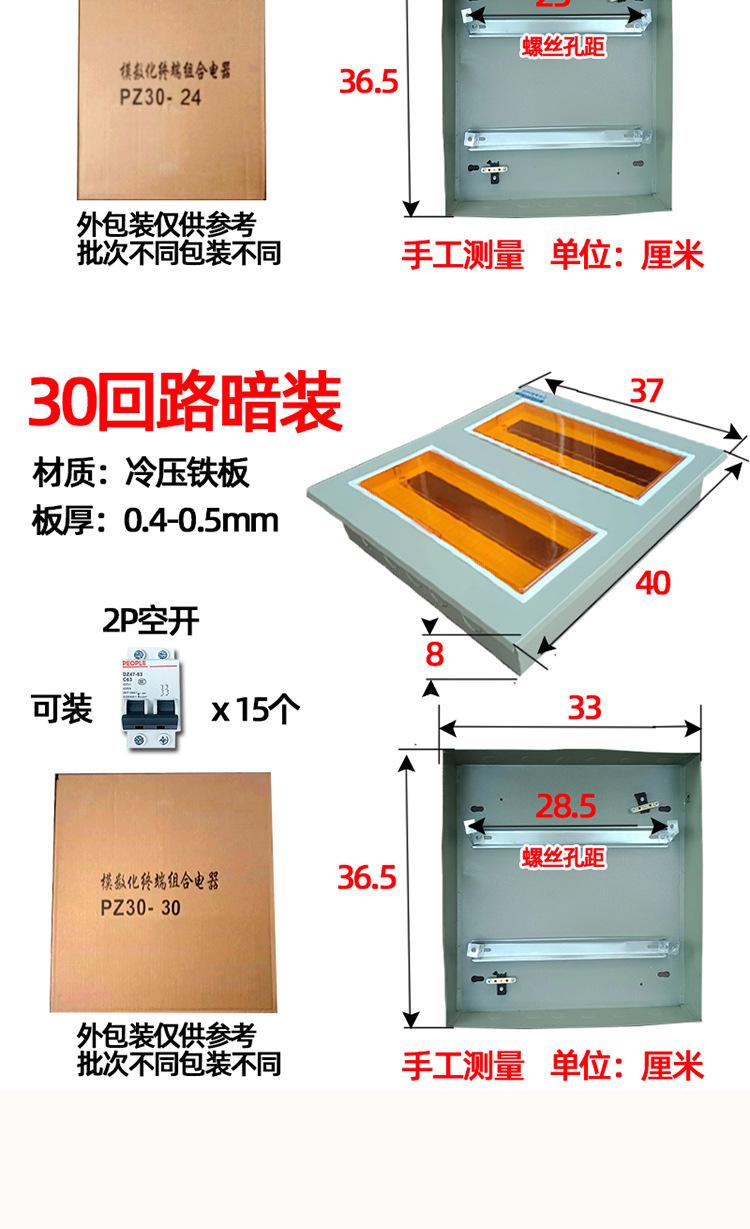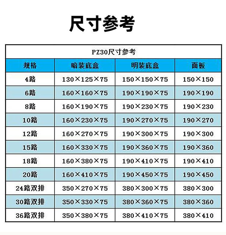Caja de distribución PZ30 para el hogar, caja de interruptores de 4 a 30 circuitos, proyecto de decoración del sitio, caja eléctrica fuerte, caja de fugas vacía