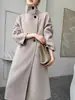 Abrigo de lana con cuello alto vintage, nuevo abrigo largo de tweed de doble cara hasta la rodilla de color liso para mujer para otoño e invierno