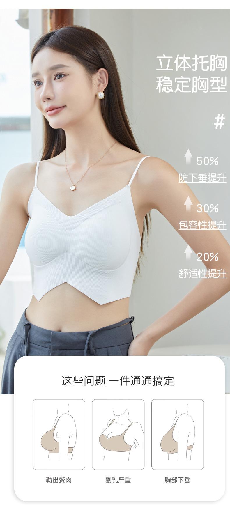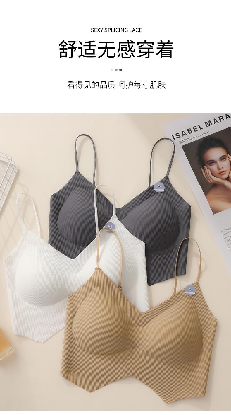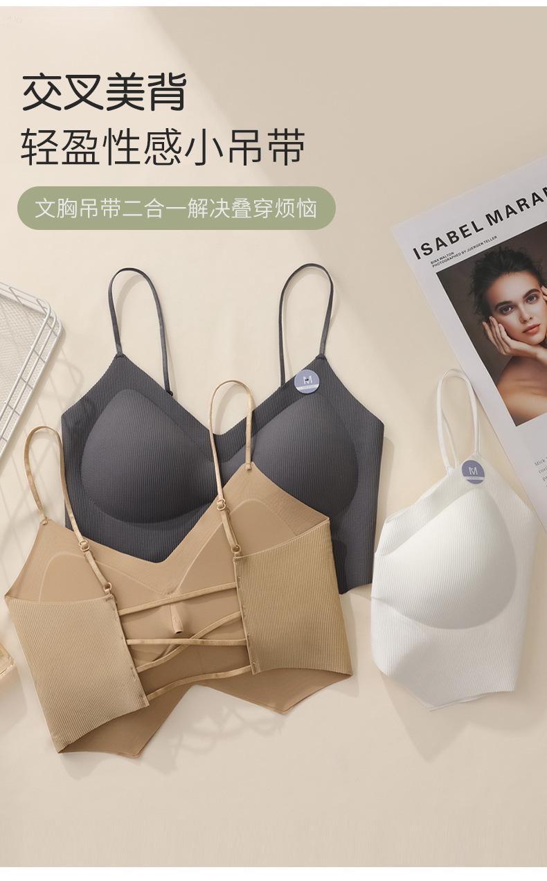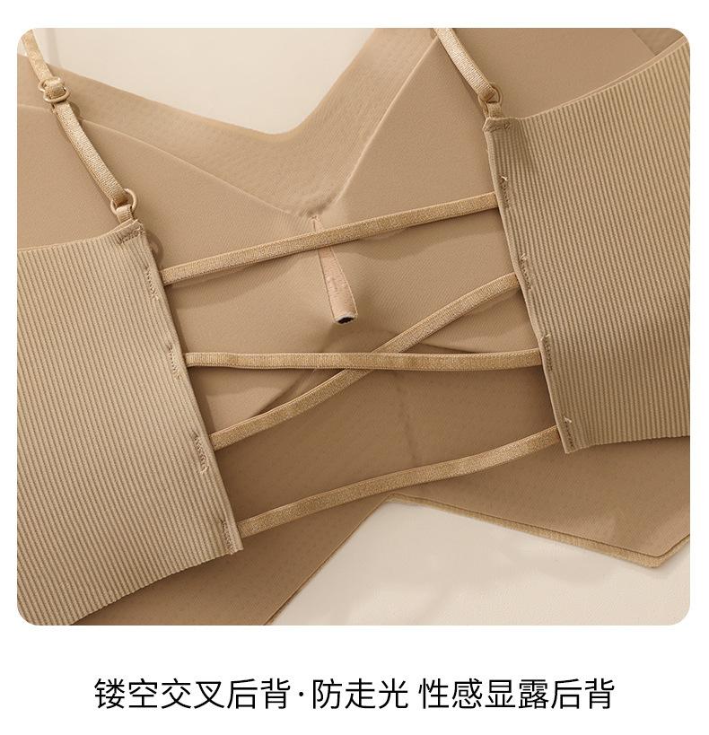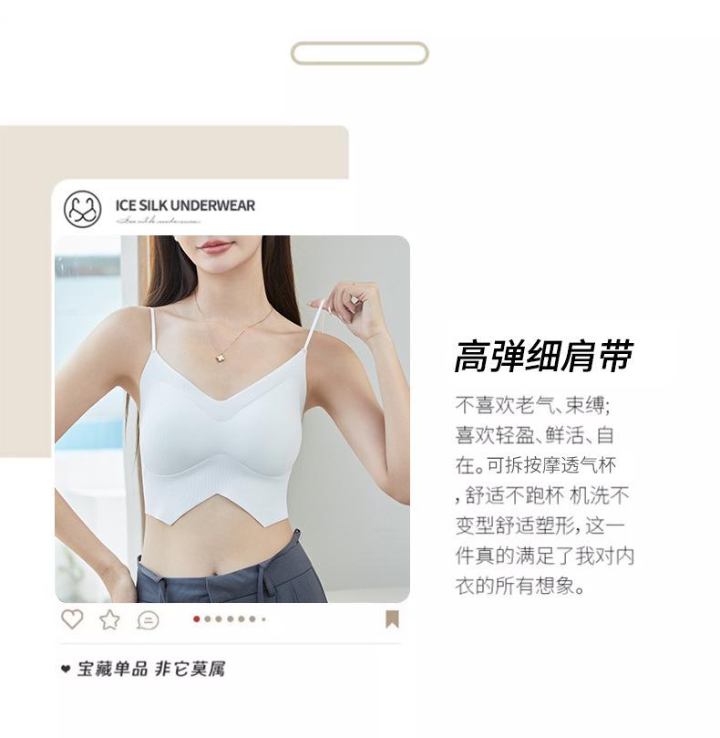 Ropa interior de mujer con correa cruzada de múltiples tiras de seda de hielo sin costuras, espalda de belleza sin aro de acero, almohadilla para el pecho, correa de hombro ajustable, cabestrillo envolvente para el pecho.