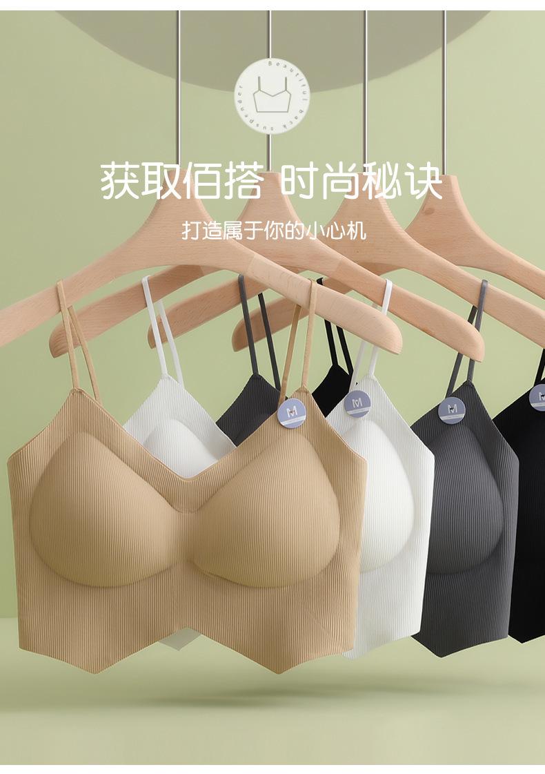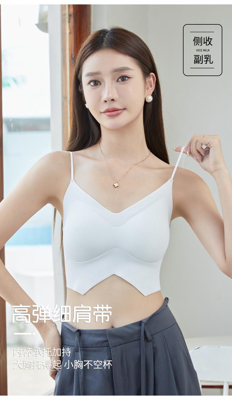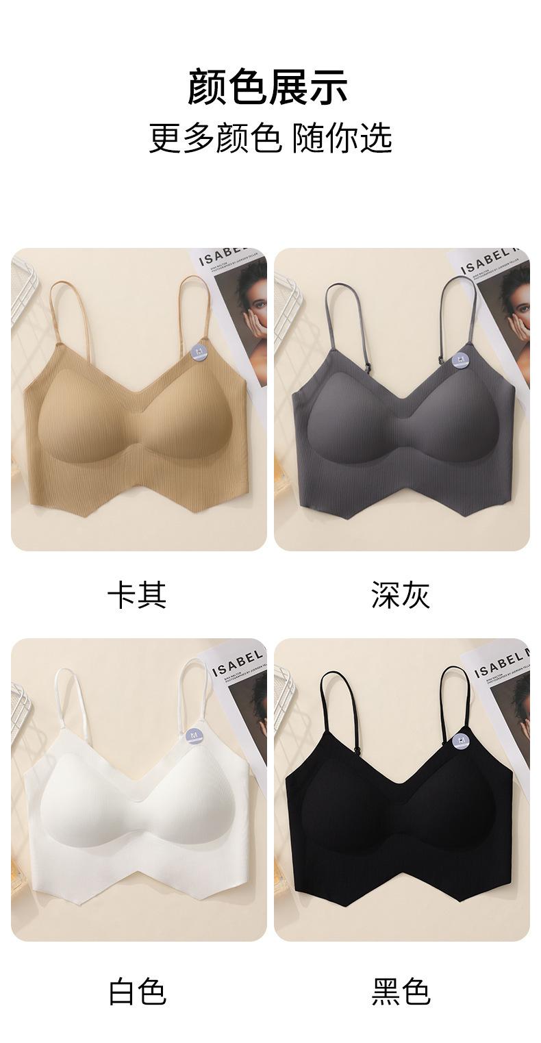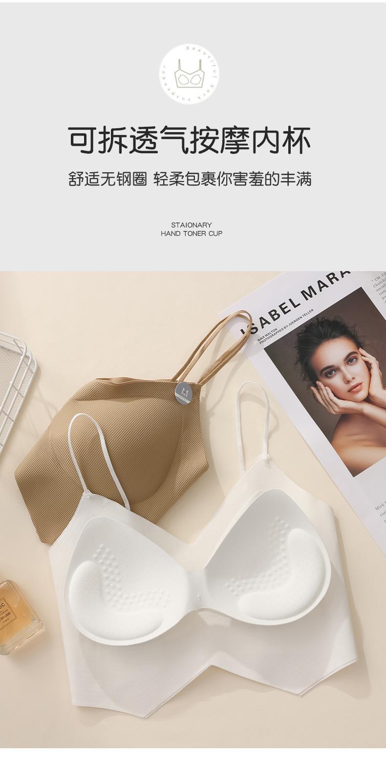 Ropa interior de mujer con correa cruzada de múltiples tiras de seda de hielo sin costuras, espalda de belleza sin aro de acero, almohadilla para el pecho, correa de hombro ajustable, cabestrillo envolvente para el pecho.