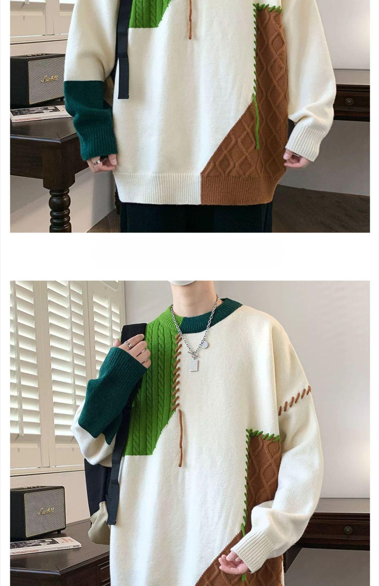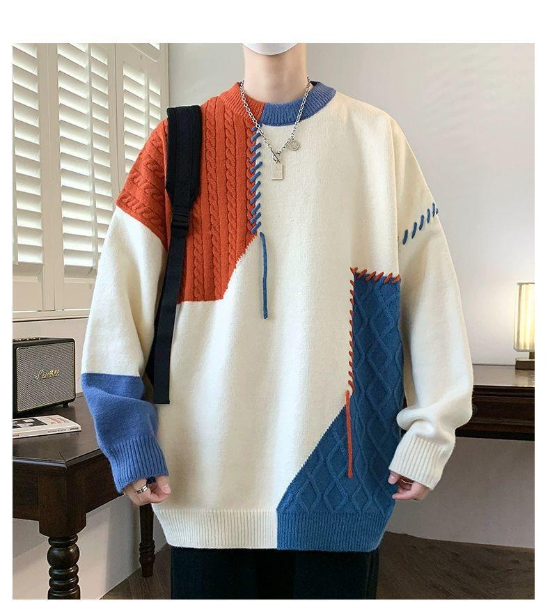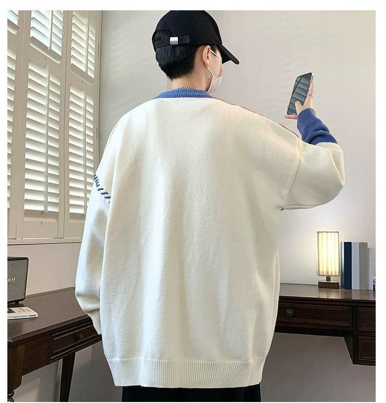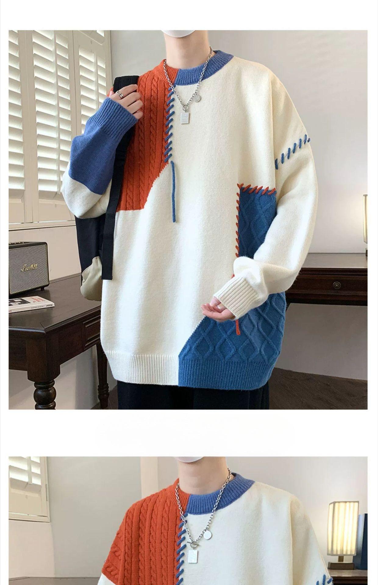 Suéter holgado de cuello redondo para hombre y mujer, diseño de moda estadounidense, nuevo otoño e invierno, con combinación de colores
