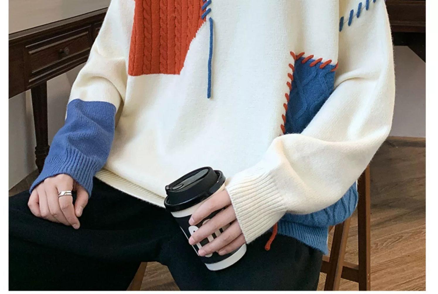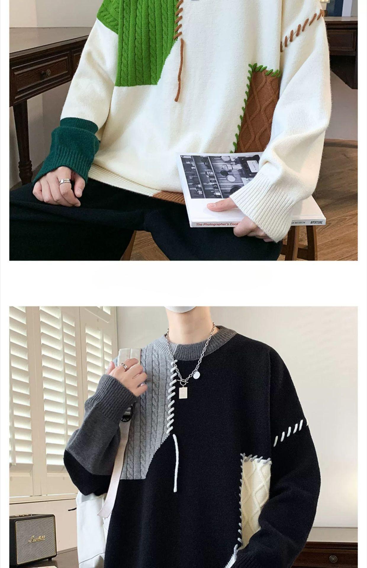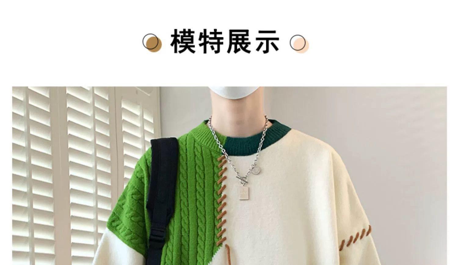 Suéter holgado de cuello redondo para hombre y mujer, diseño de moda estadounidense, nuevo otoño e invierno, con combinación de colores