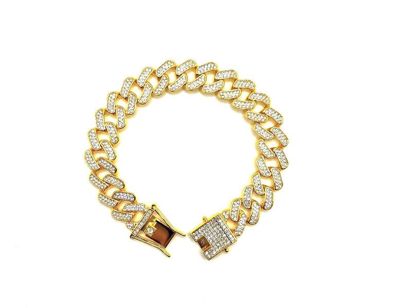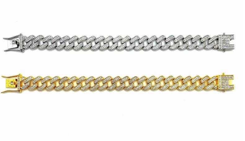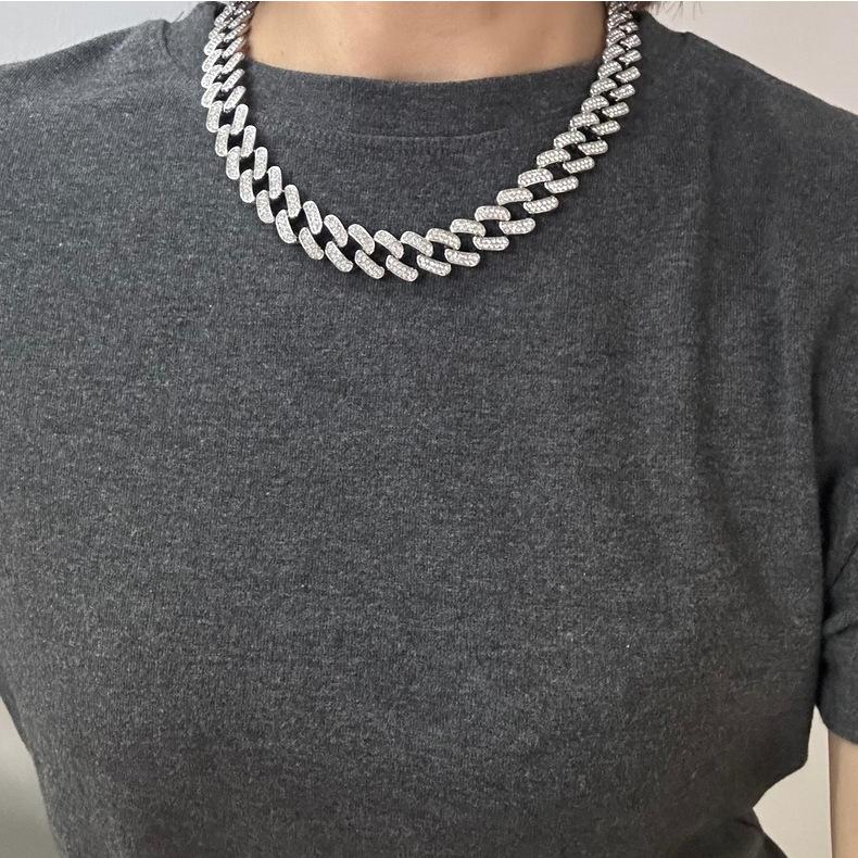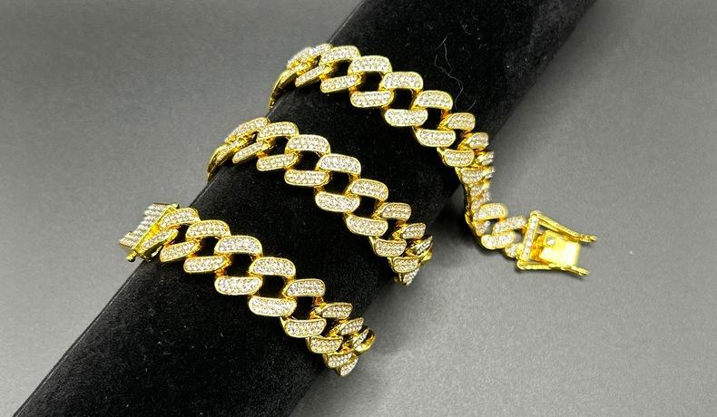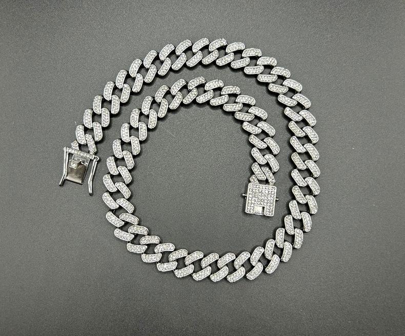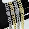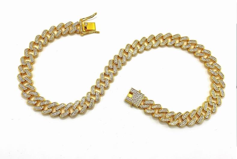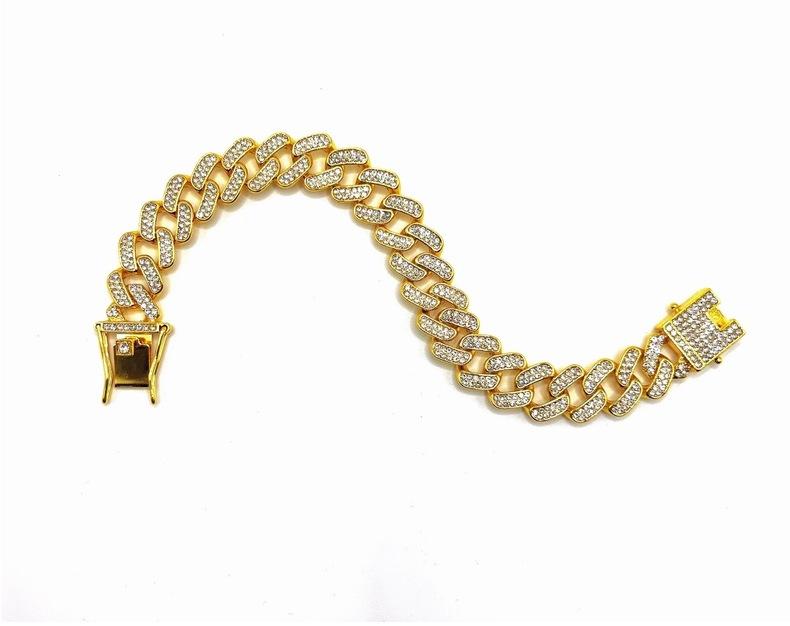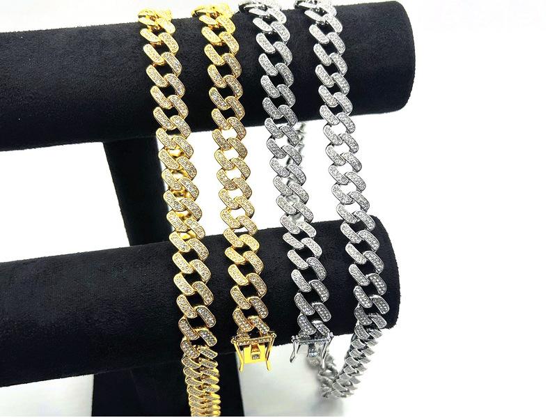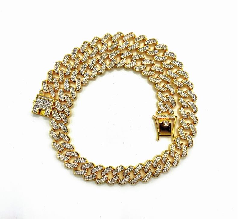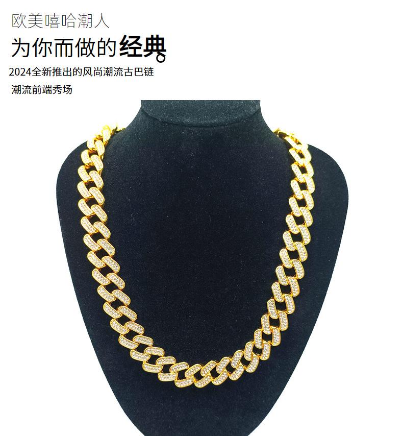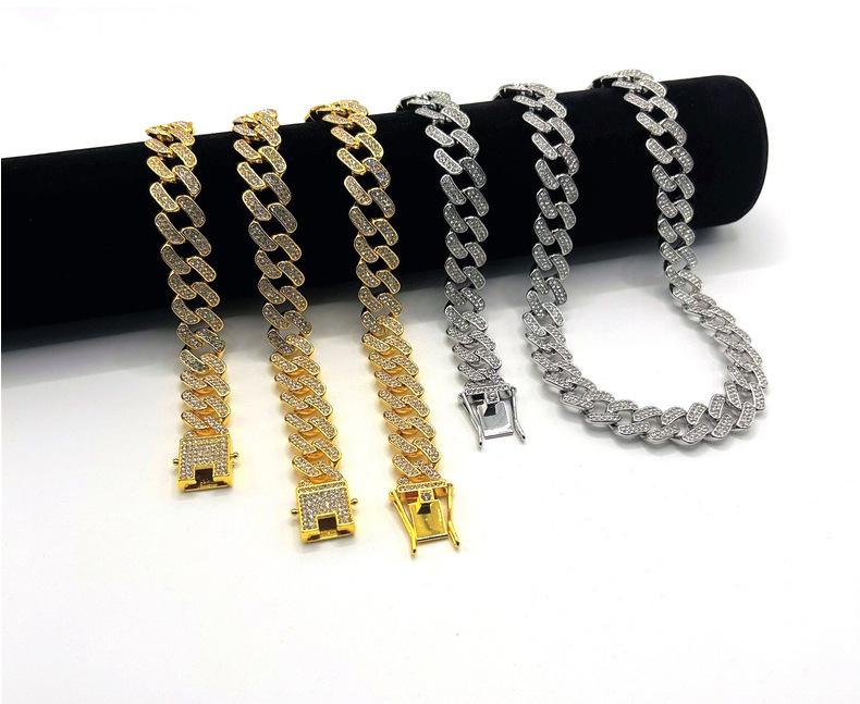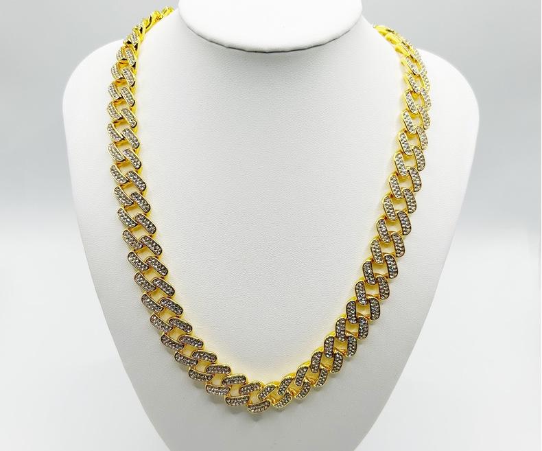 Nueva cadena cubana europea y americana de 15 mm de aleación de diamantes con diamantes completos estilo hip-hop pulsera collar cadena grande dorada transfronteriza