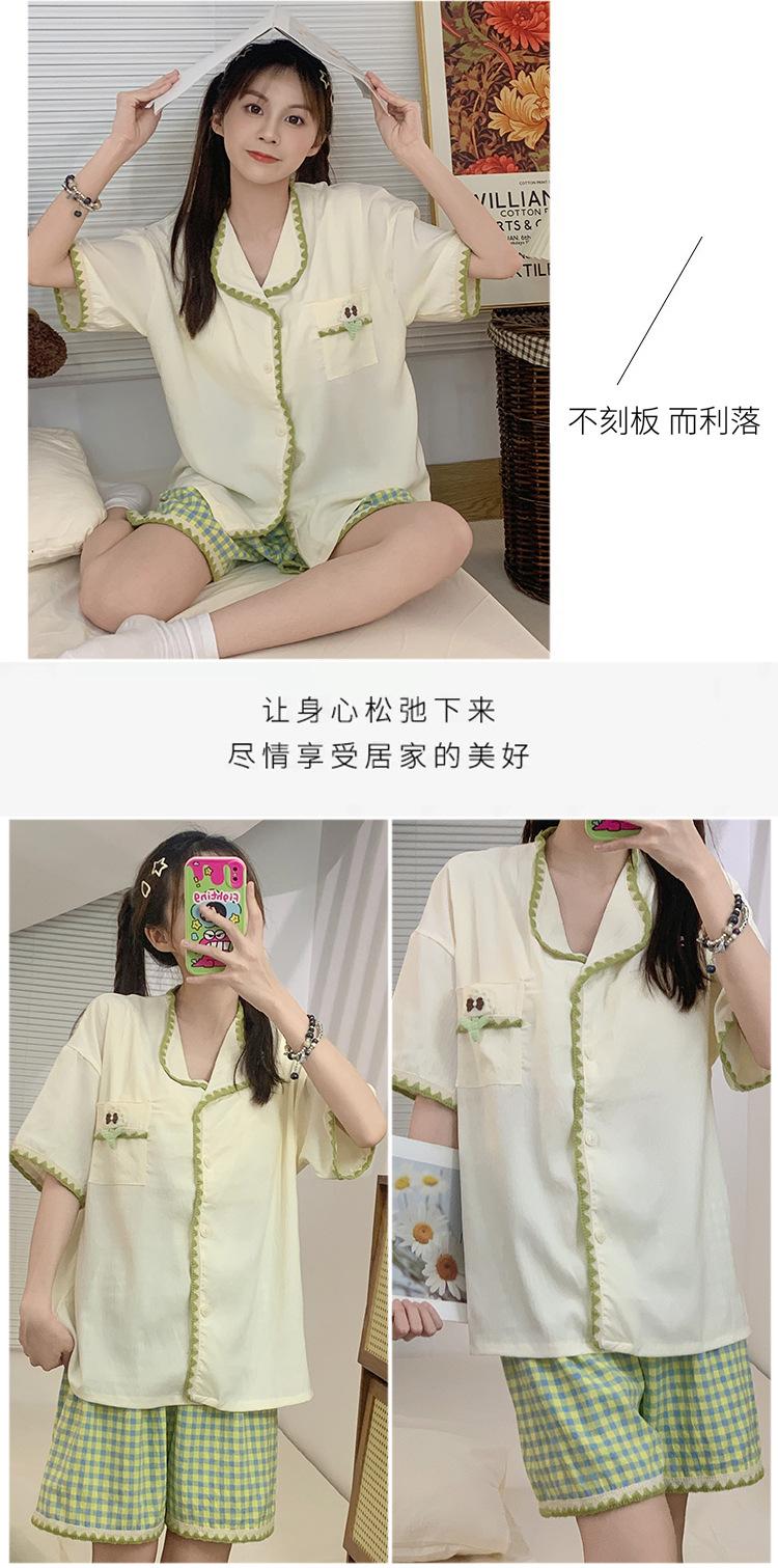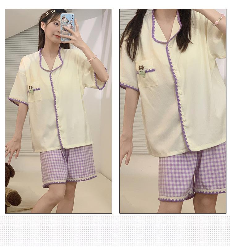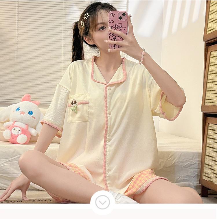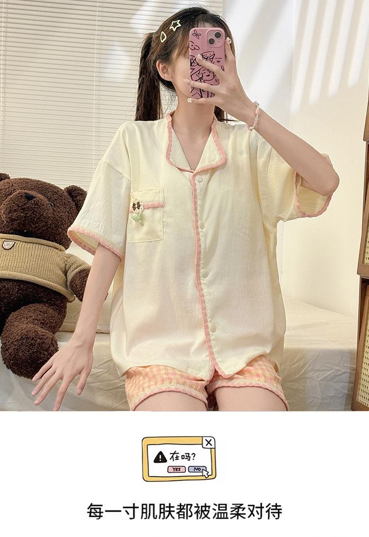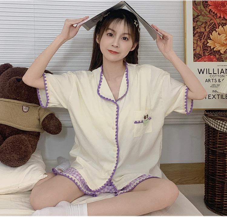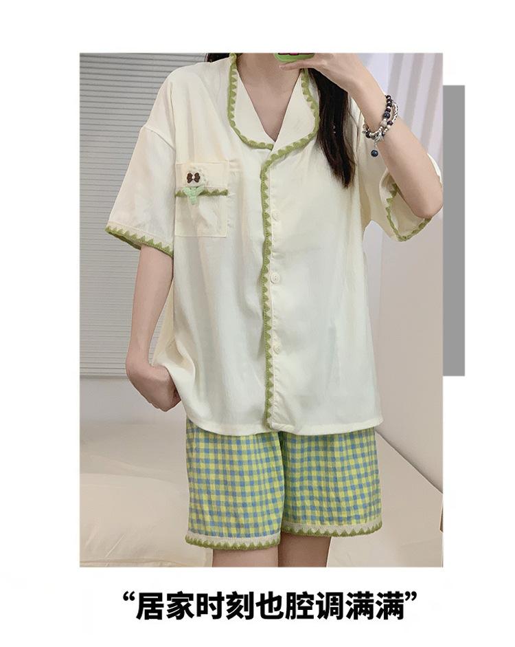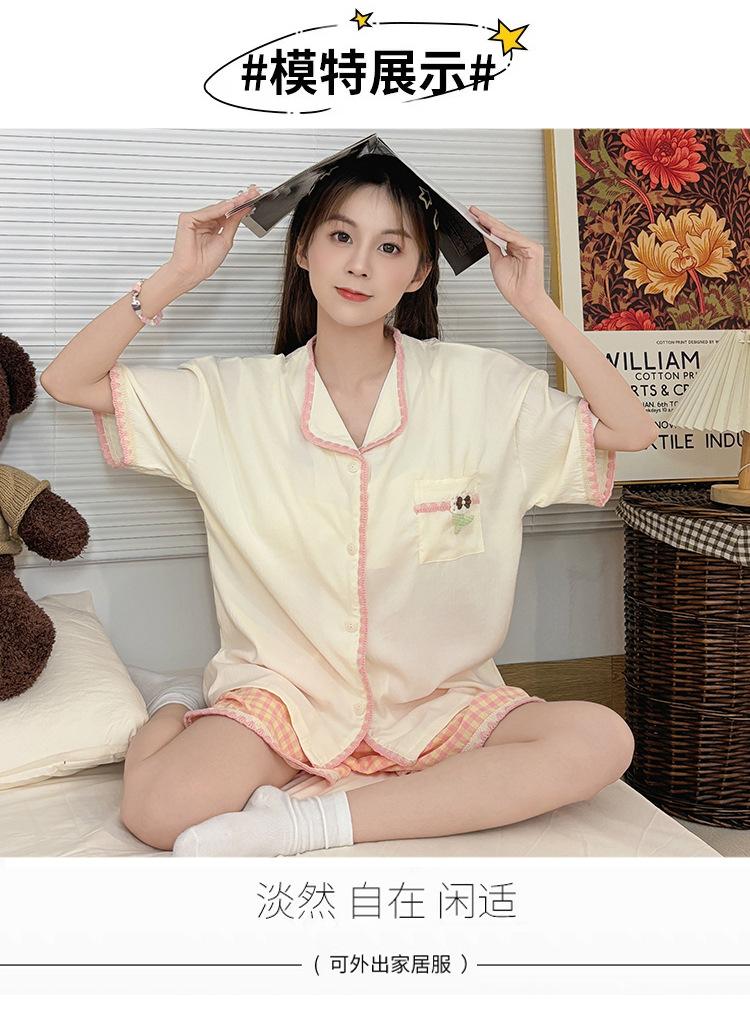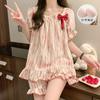 Pijamas de comercio exterior transfronterizo para mujer, bonitos pantalones cortos de verano de manga corta con almohadilla para el pecho, ropa de casa de talla grande para chica gordita