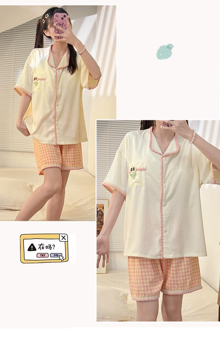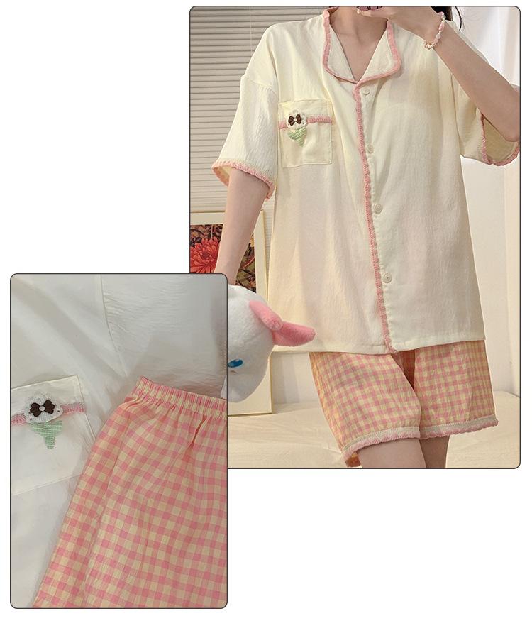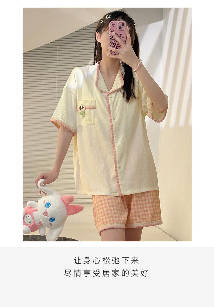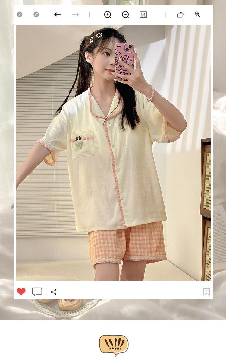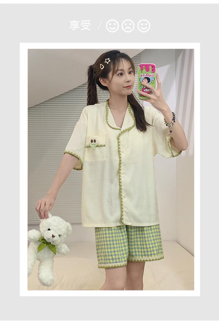 Pijamas de comercio exterior transfronterizo para mujer, bonitos pantalones cortos de verano de manga corta con almohadilla para el pecho, ropa de casa de talla grande para chica gordita