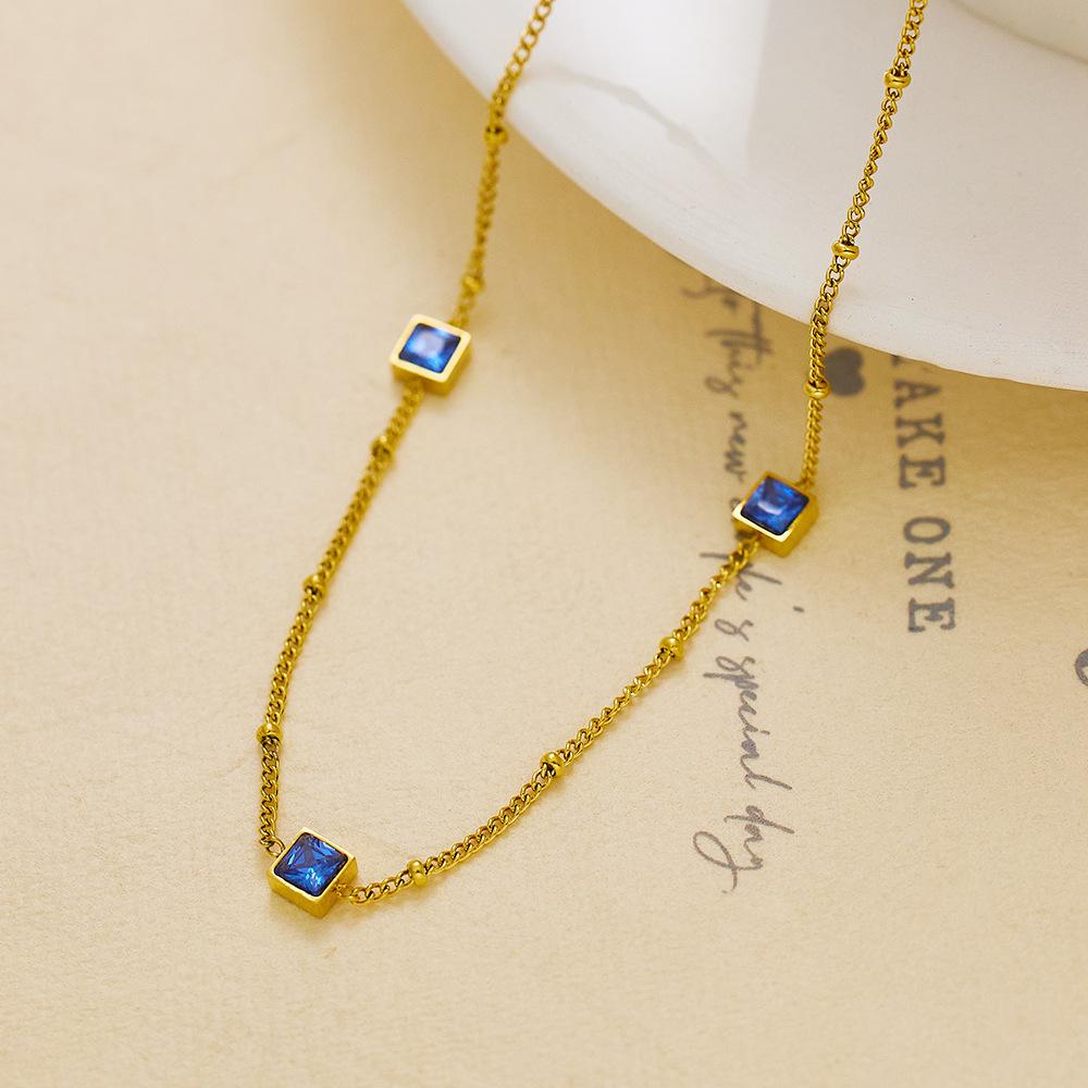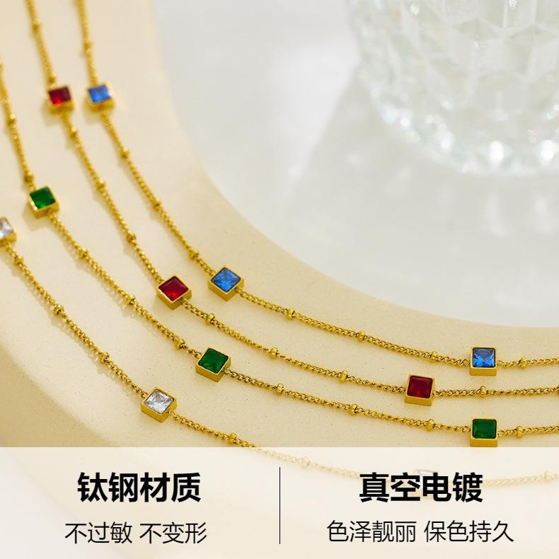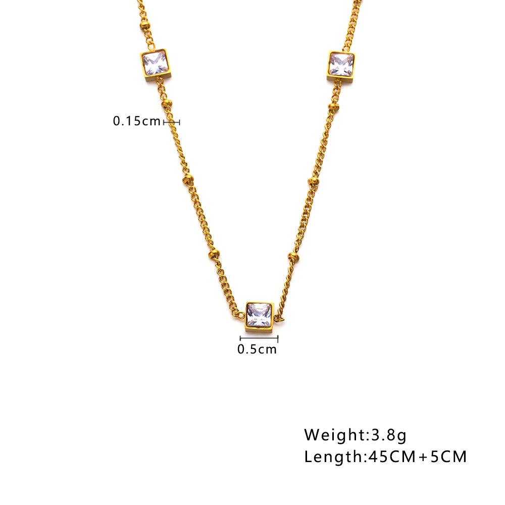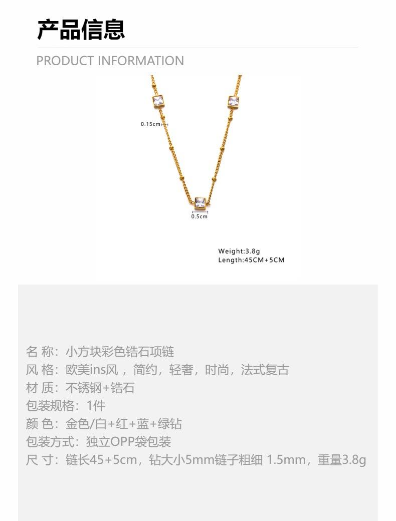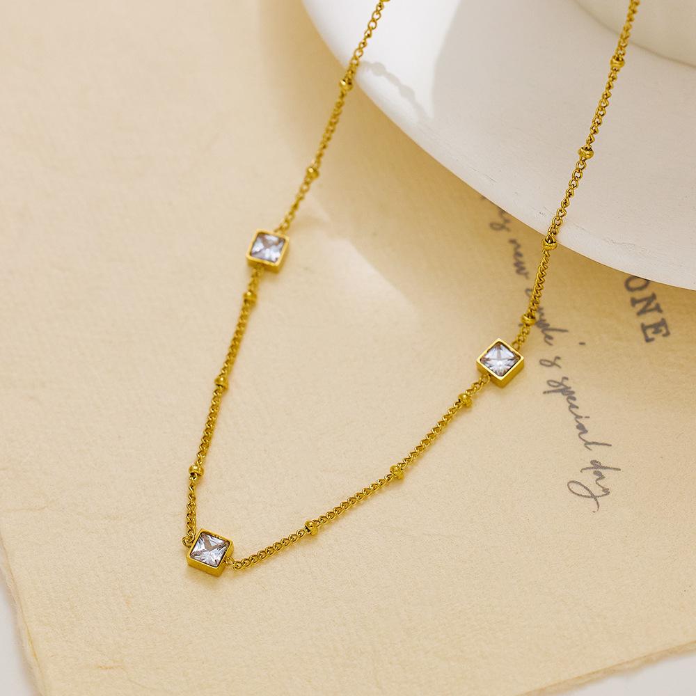 Collar Elegante Francés Chapado en Oro, Cadena de Clavícula Estilo Ins Moderna y Versátil, Collar Pequeño Cuadrado de Acero de Titanio con Zircón, Adorno para el Cuello