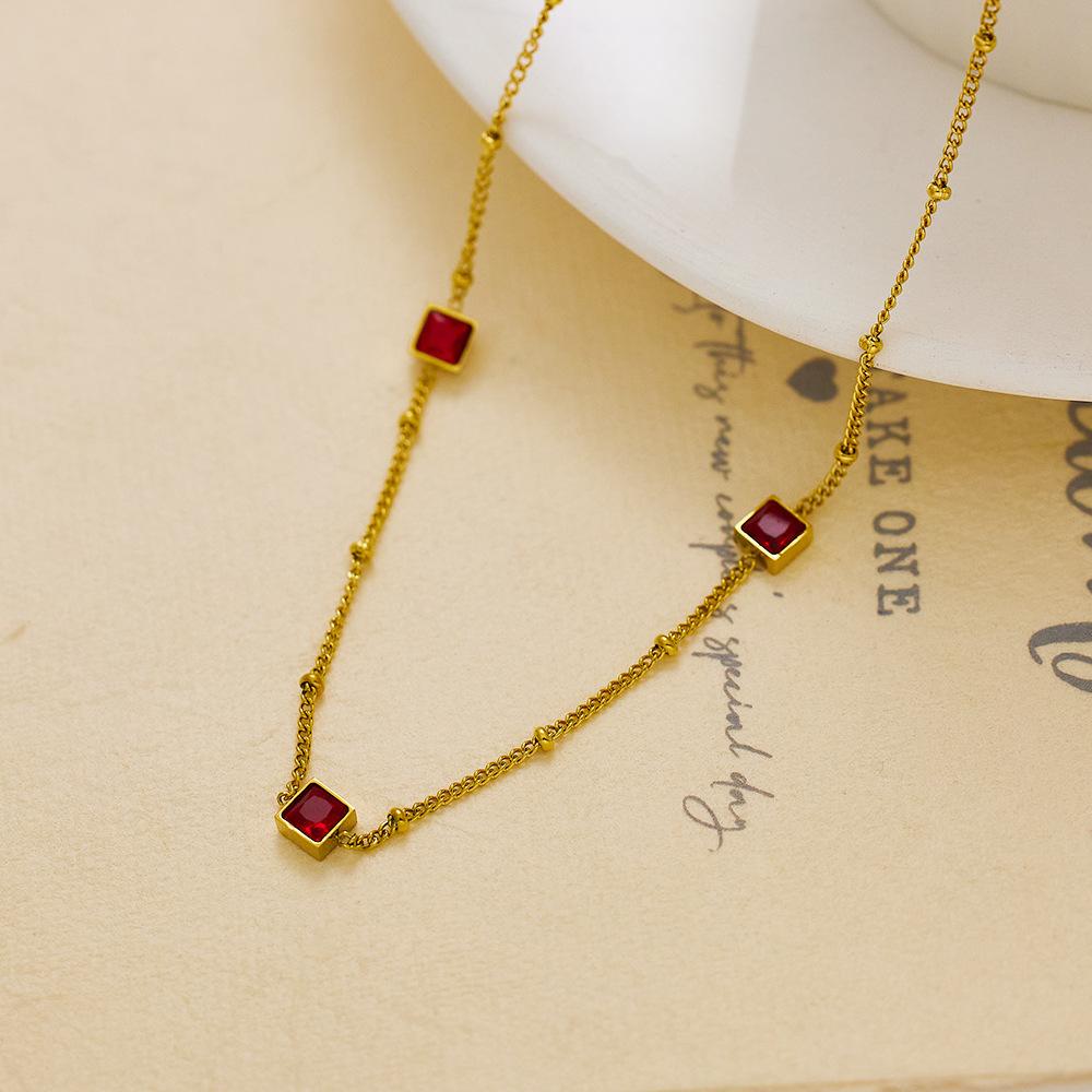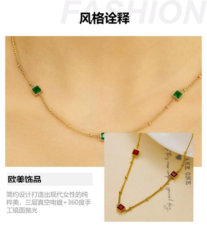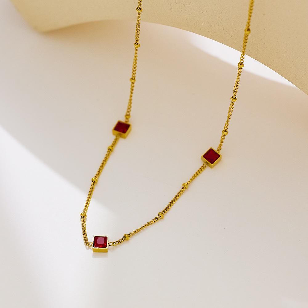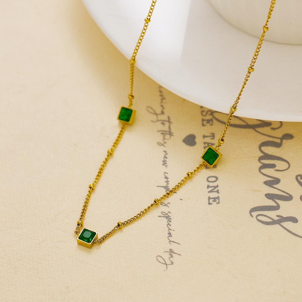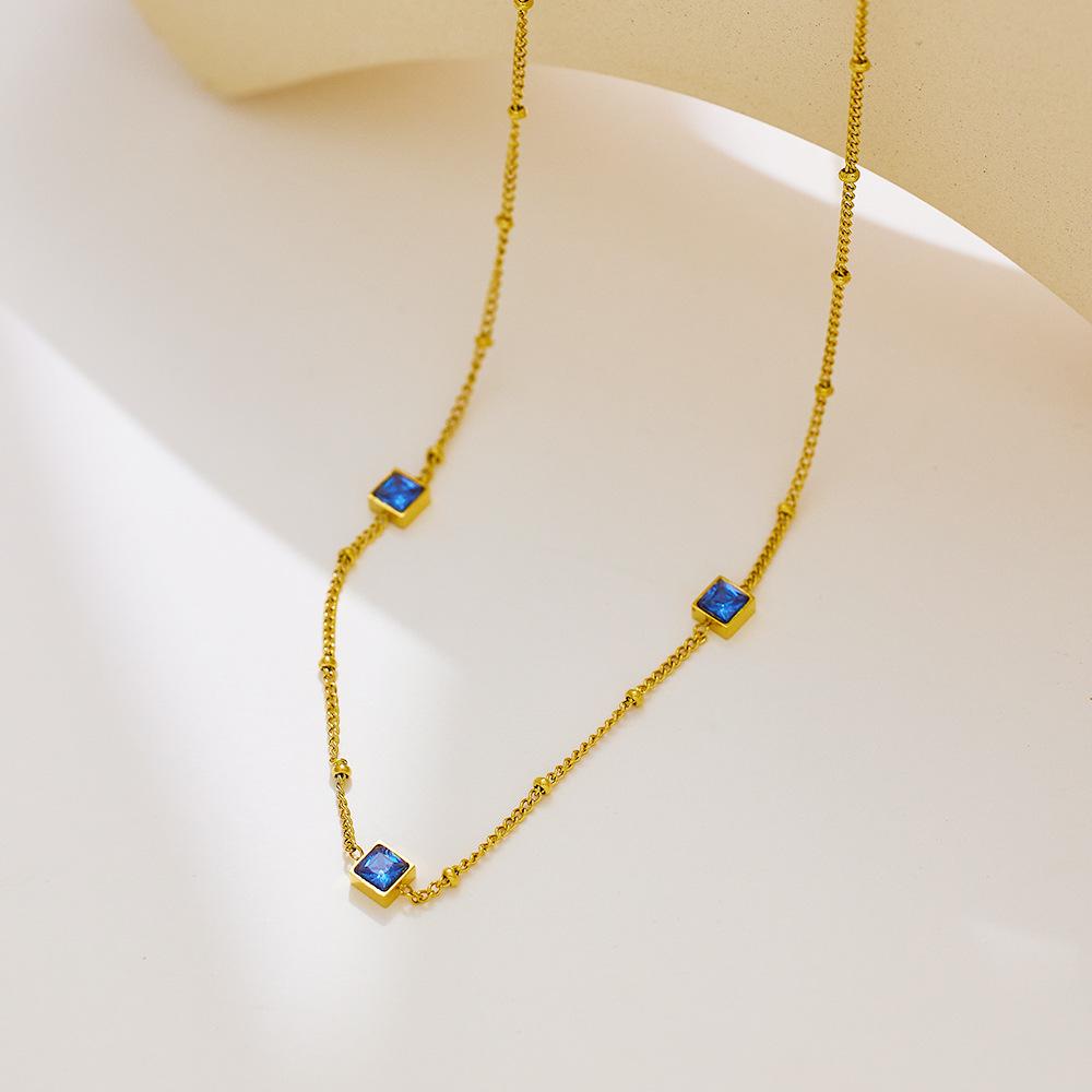 Collar Elegante Francés Chapado en Oro, Cadena de Clavícula Estilo Ins Moderna y Versátil, Collar Pequeño Cuadrado de Acero de Titanio con Zircón, Adorno para el Cuello