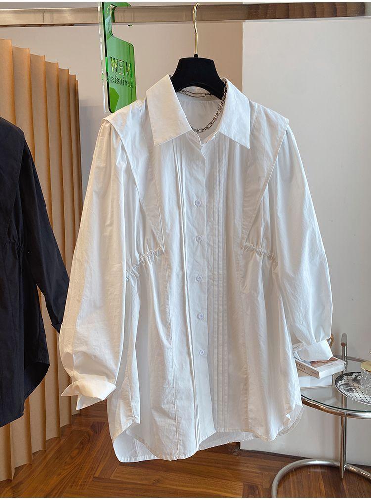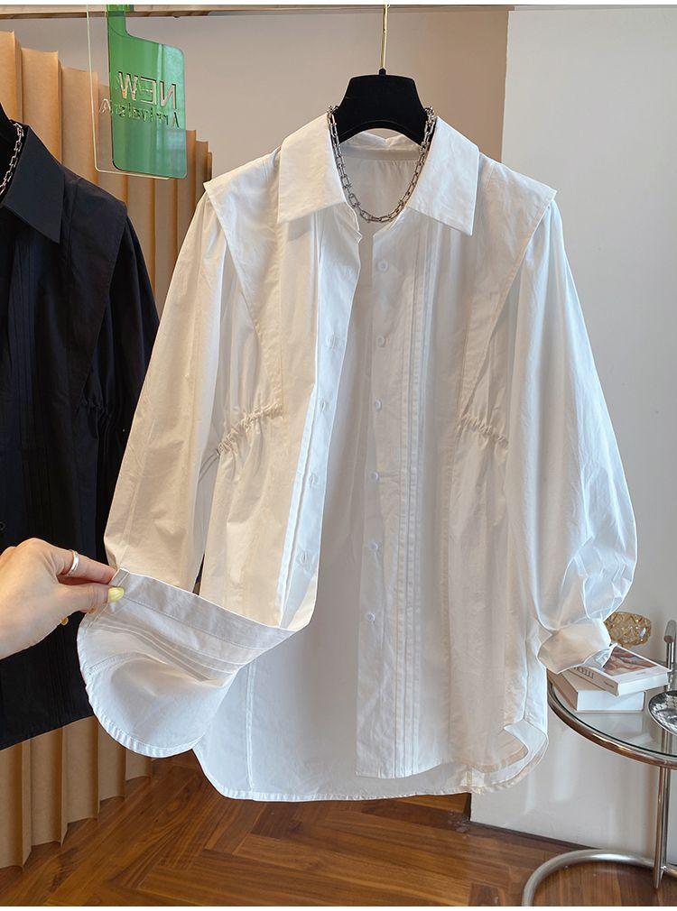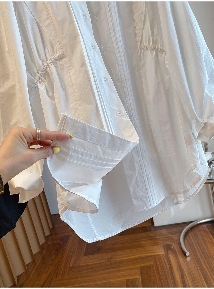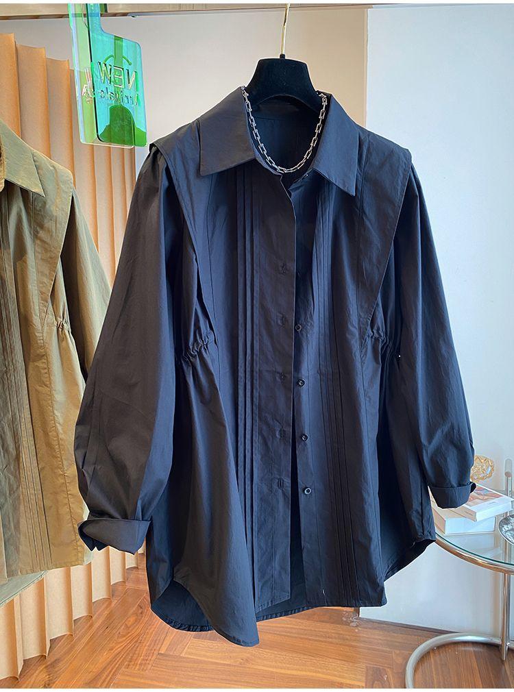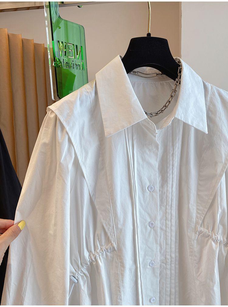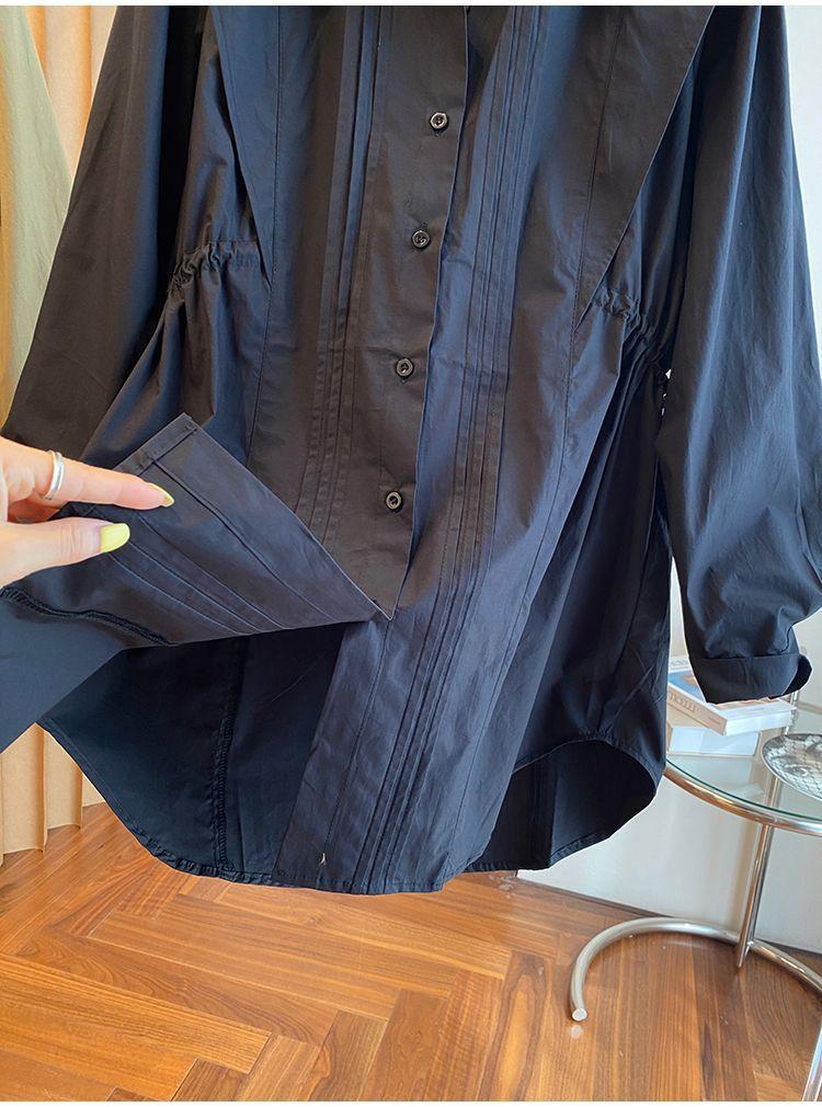 Diseño Europeo Nicho Suelto Casual Cinturón con Cordón Camisa de Mujer Largo Medio Elegante Top Otoño 2022