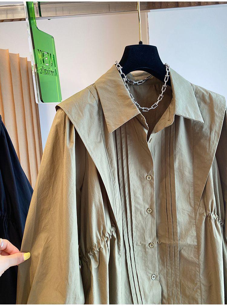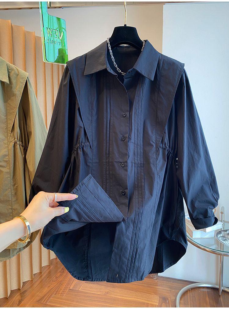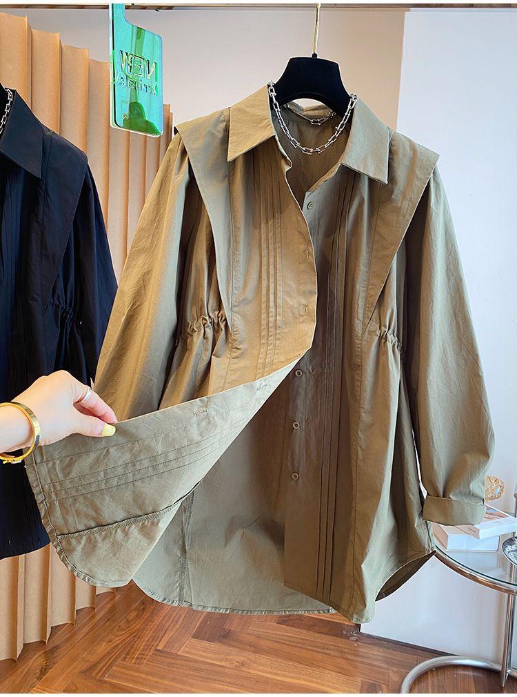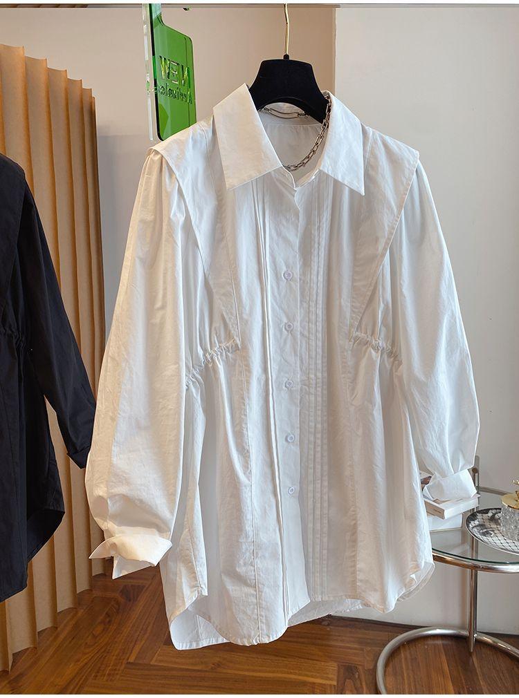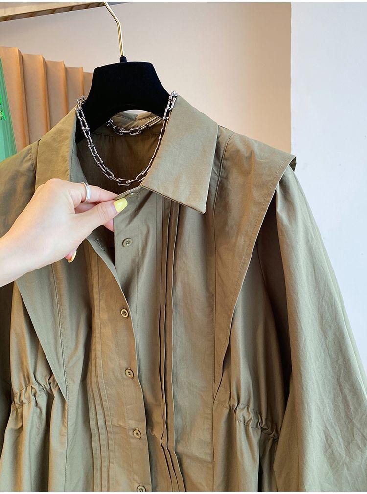 Diseño Europeo Nicho Suelto Casual Cinturón con Cordón Camisa de Mujer Largo Medio Elegante Top Otoño 2022