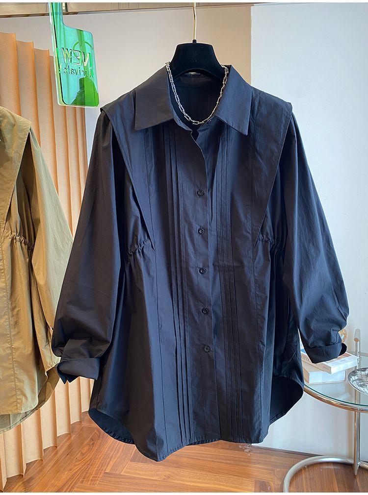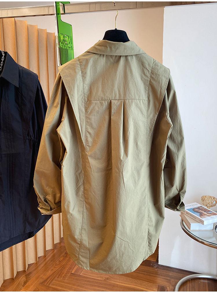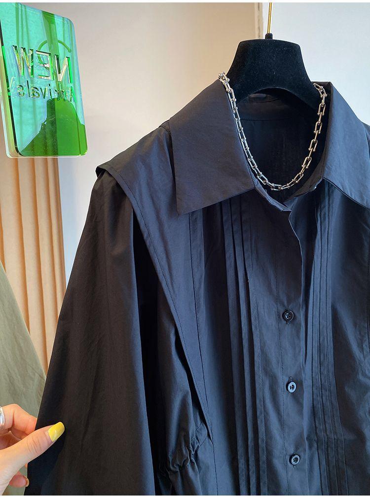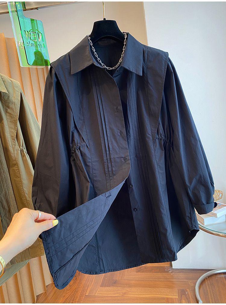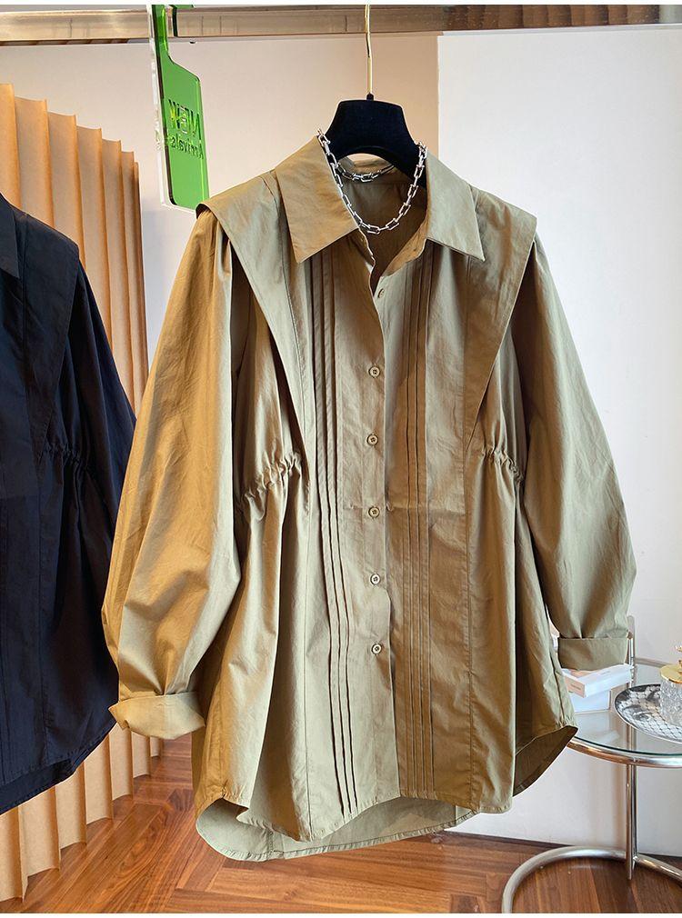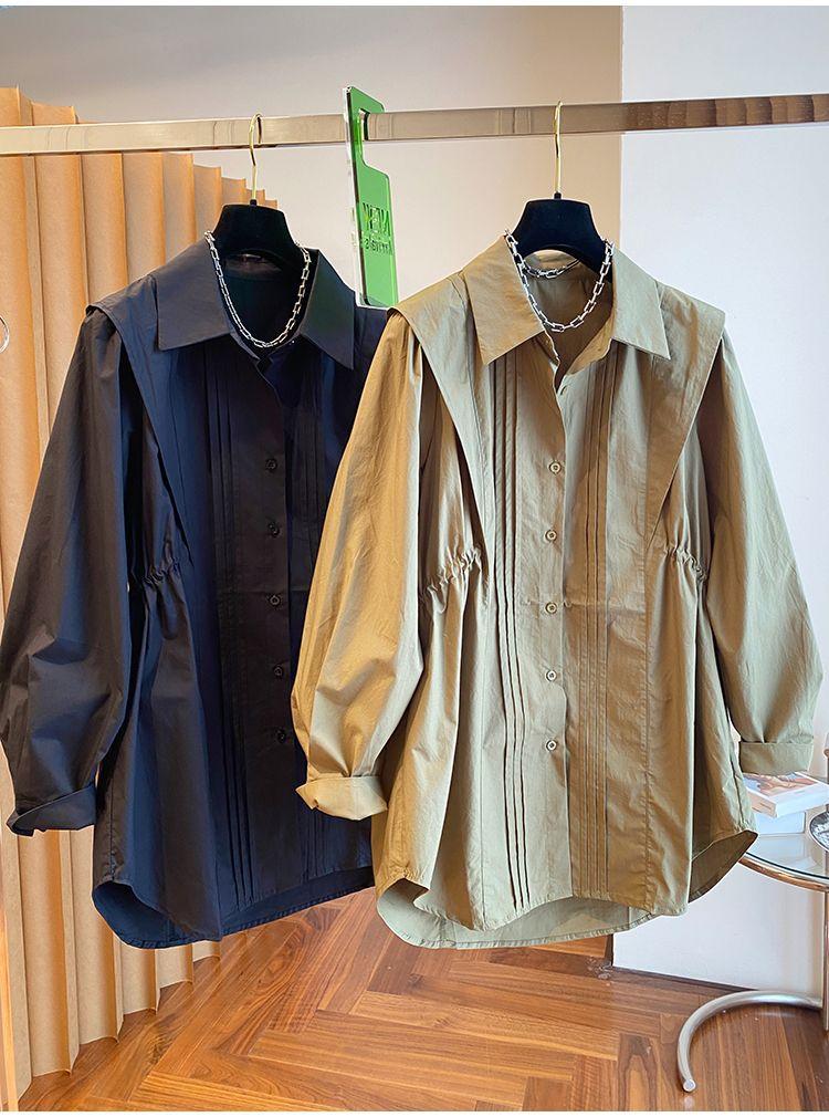 Diseño Europeo Nicho Suelto Casual Cinturón con Cordón Camisa de Mujer Largo Medio Elegante Top Otoño 2022