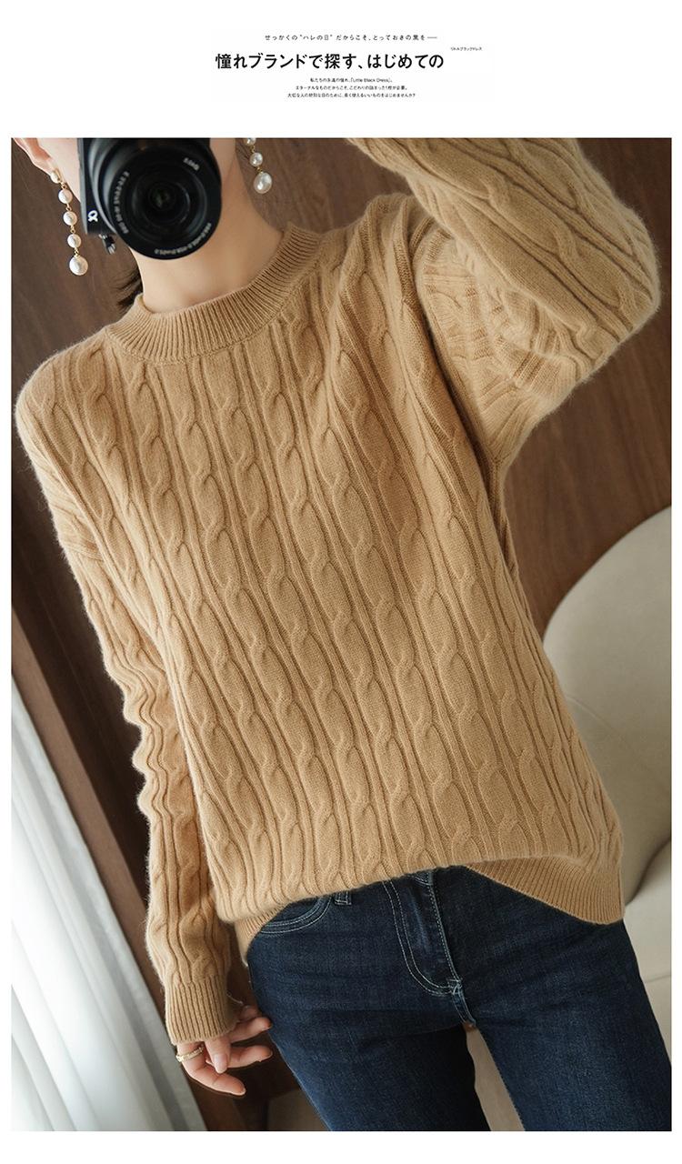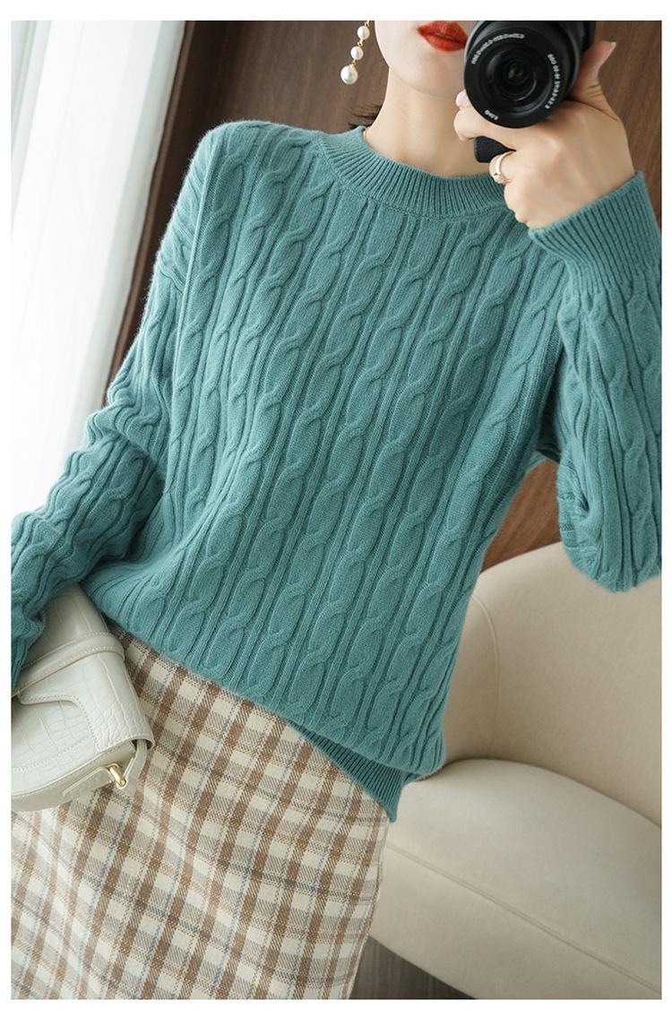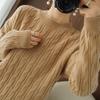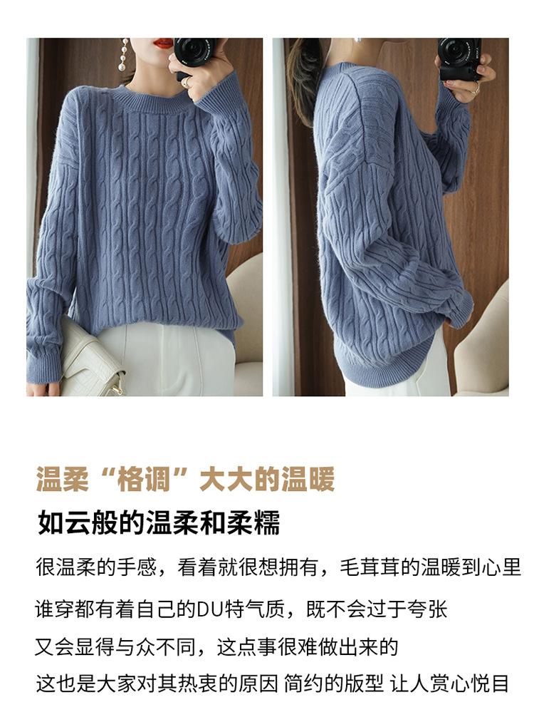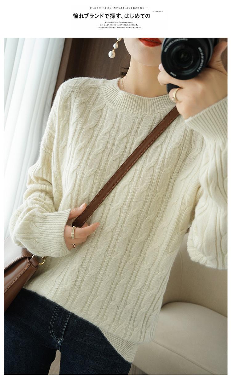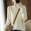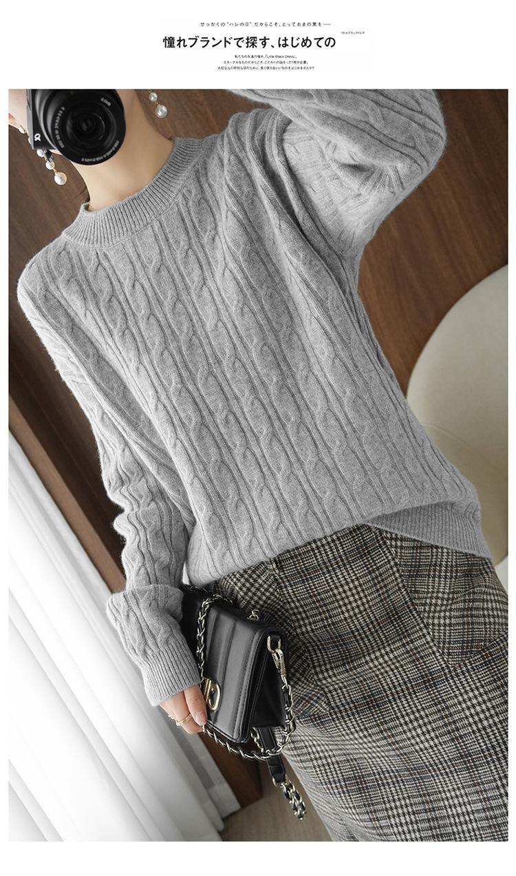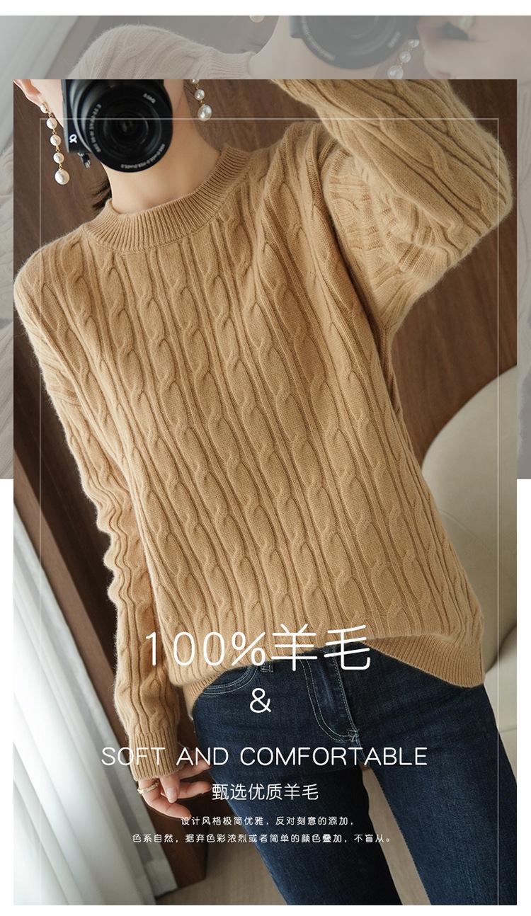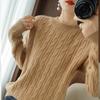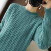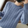 Suéter de Punto de Lana Pura para Mujer de Otoño e Invierno con Cuello Redondo Torcido, Grueso, Coreano, Casual, Holgado, a la Moda