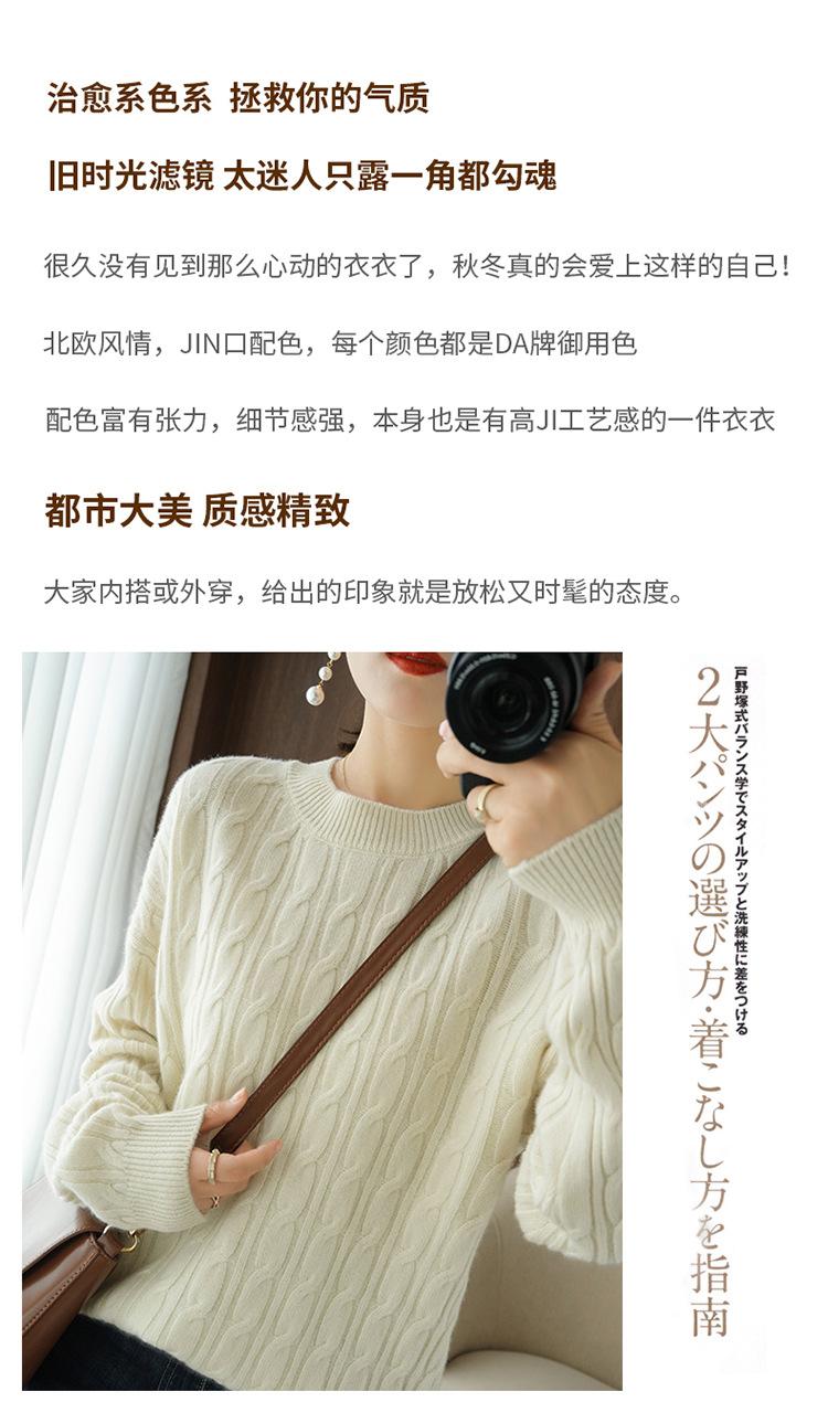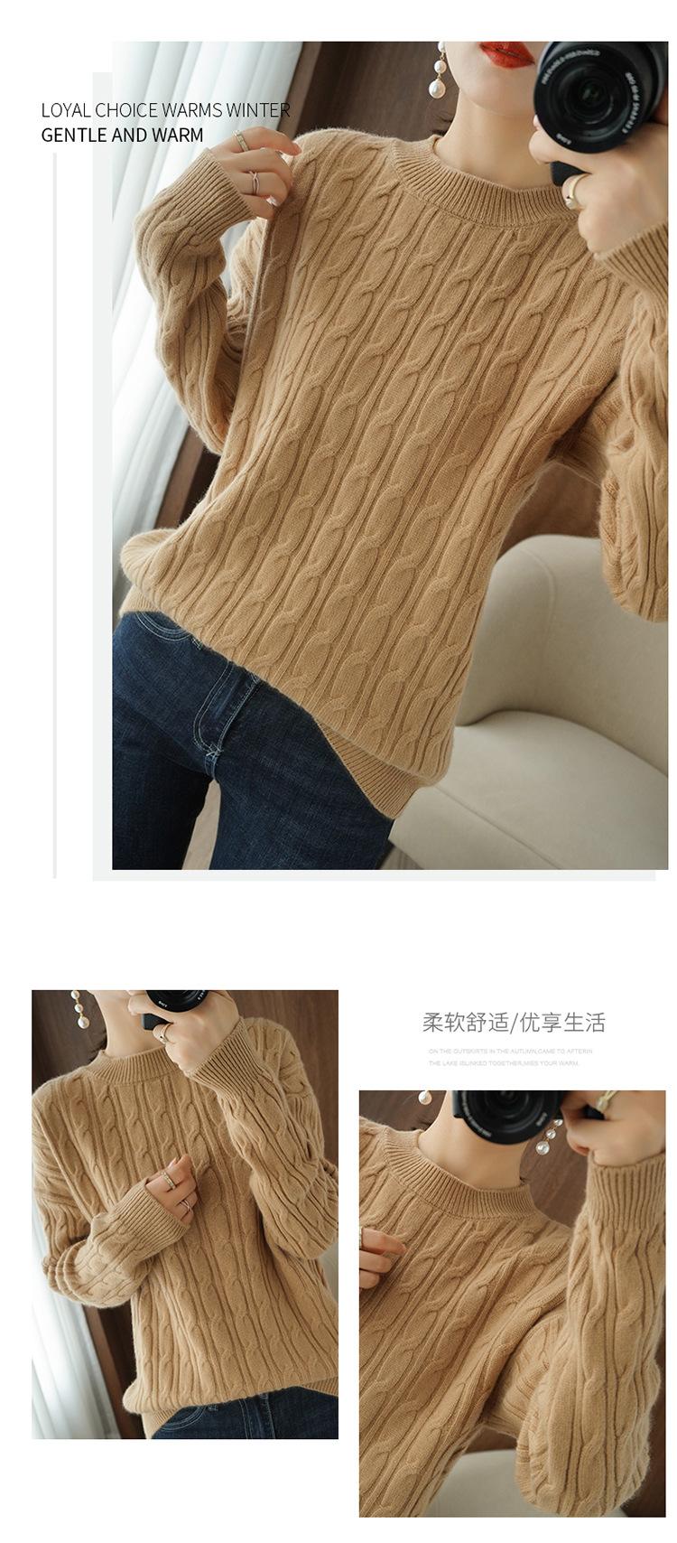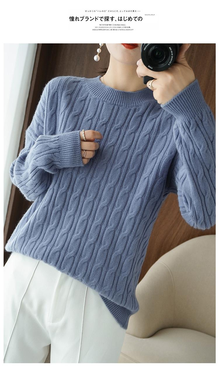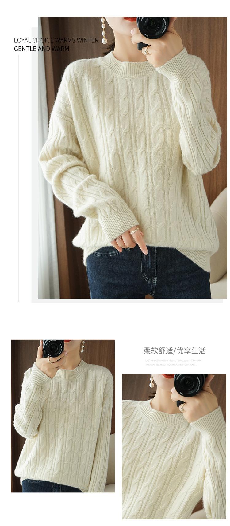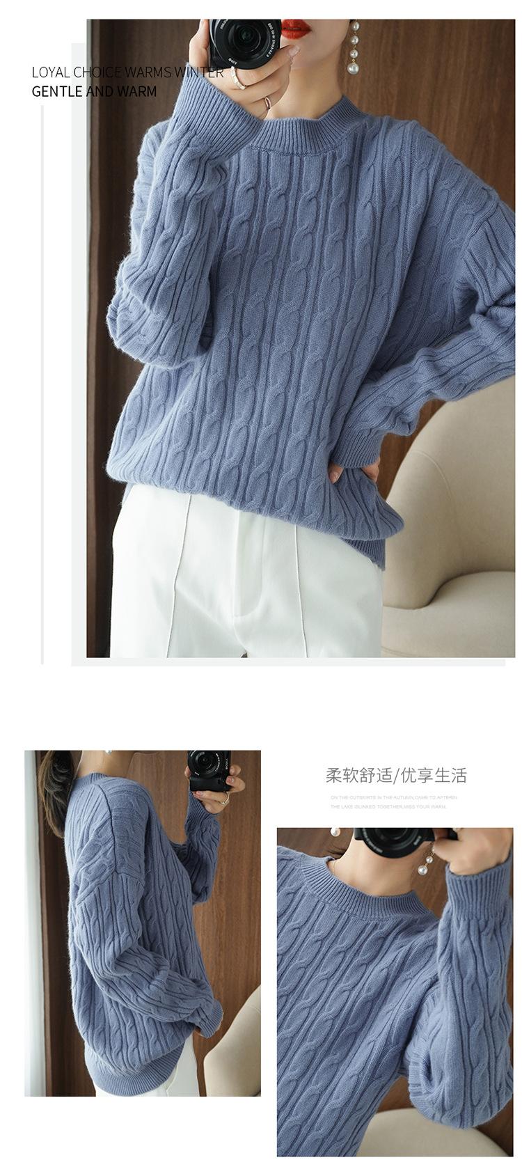 Suéter de Punto de Lana Pura para Mujer de Otoño e Invierno con Cuello Redondo Torcido, Grueso, Coreano, Casual, Holgado, a la Moda