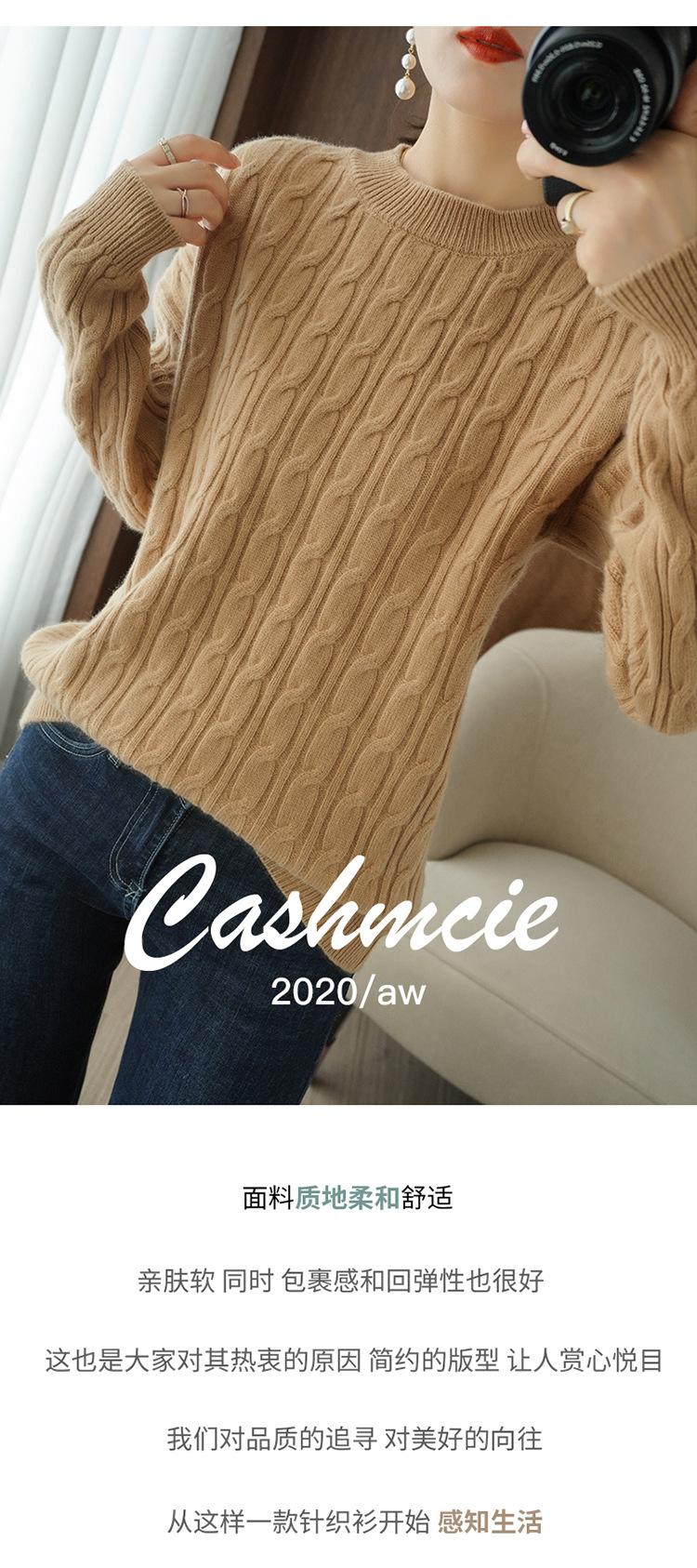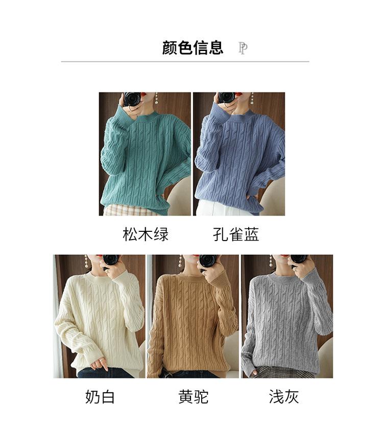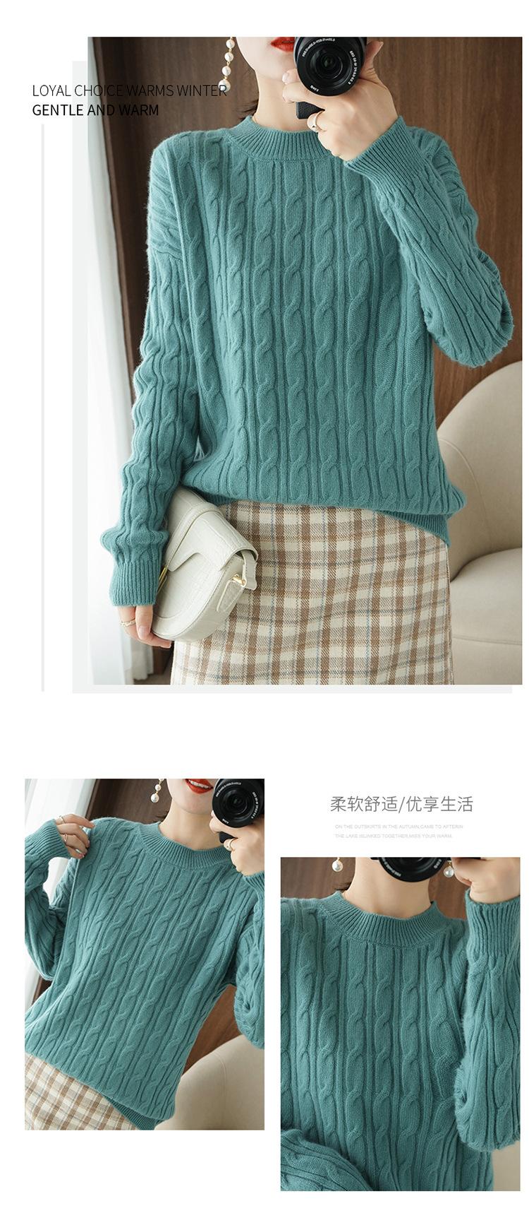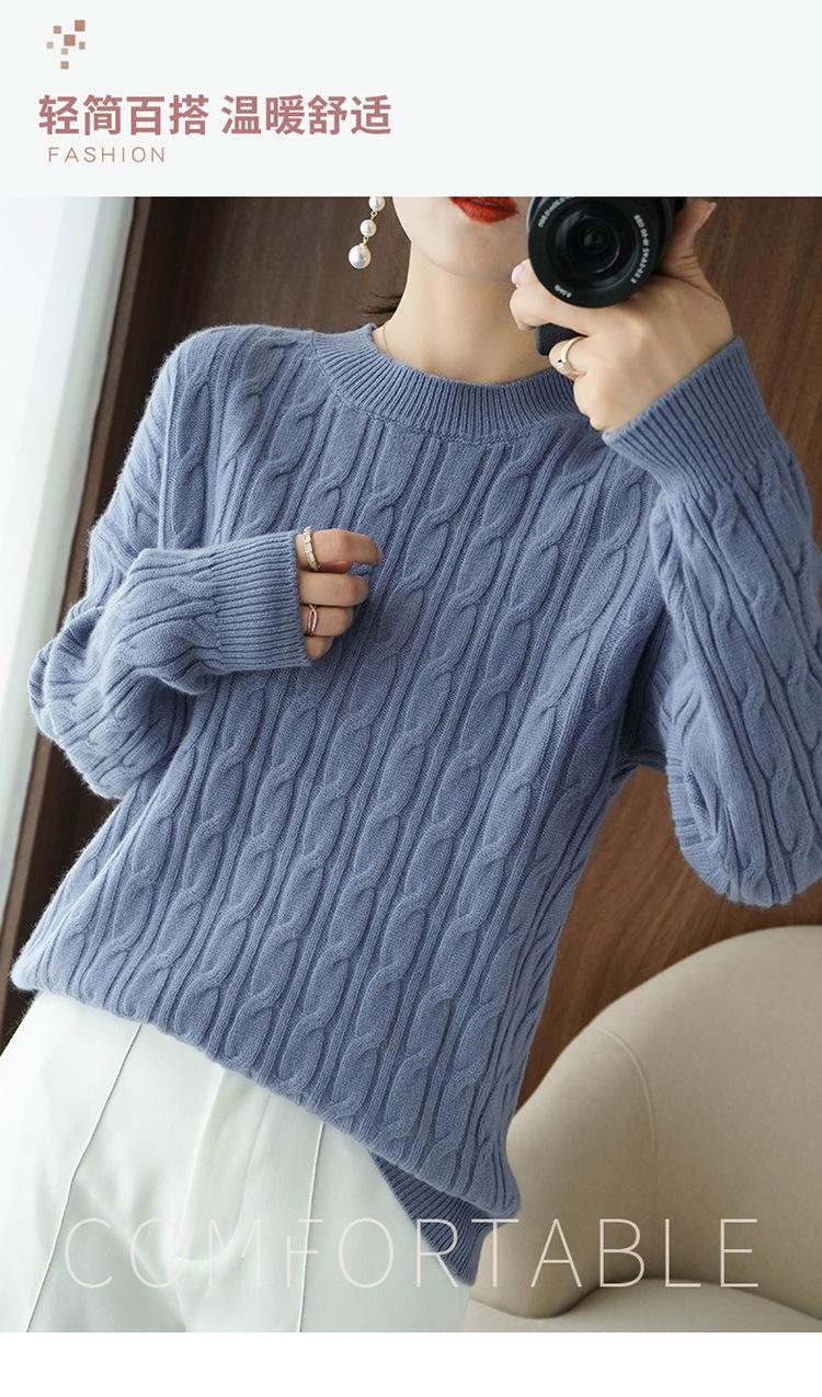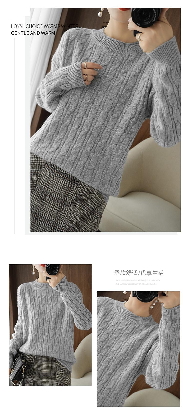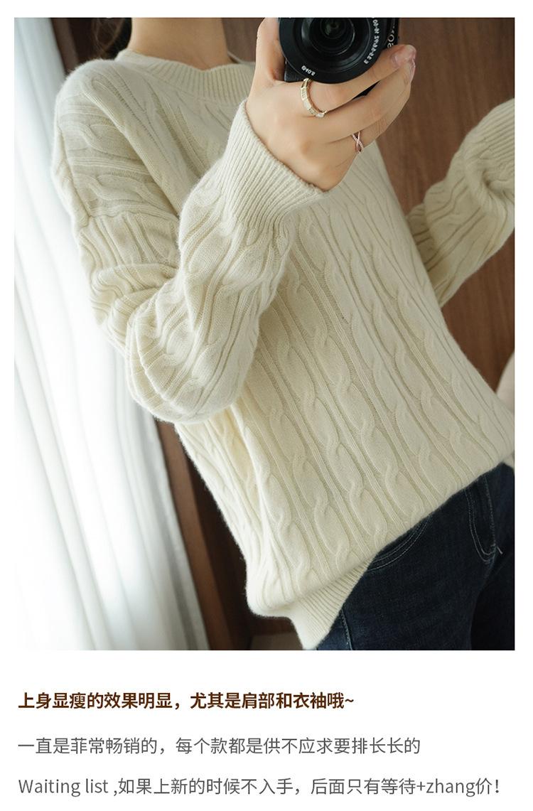 Suéter de Punto de Lana Pura para Mujer de Otoño e Invierno con Cuello Redondo Torcido, Grueso, Coreano, Casual, Holgado, a la Moda