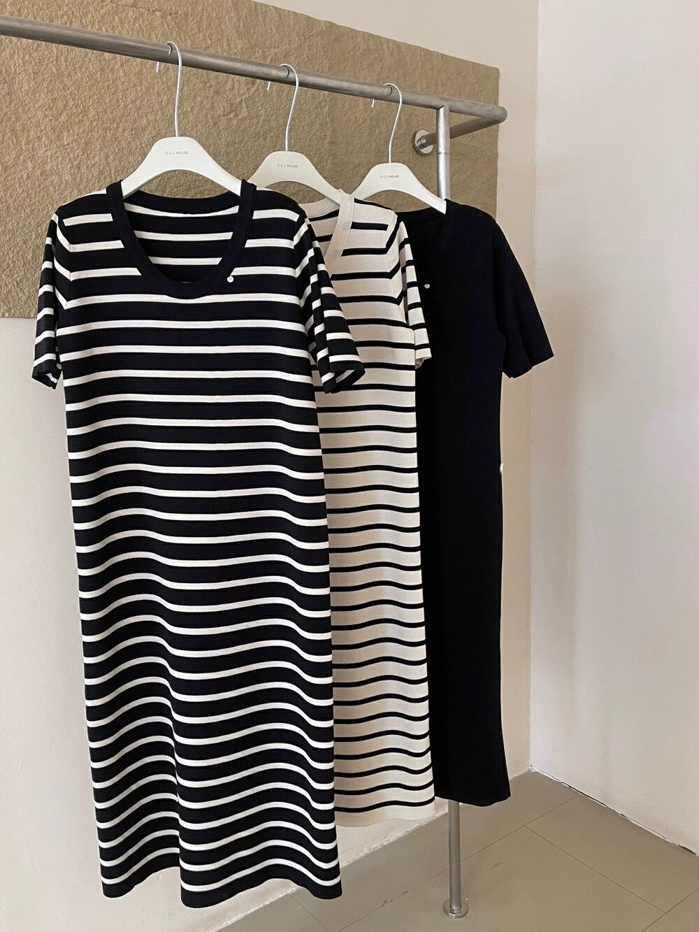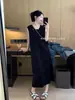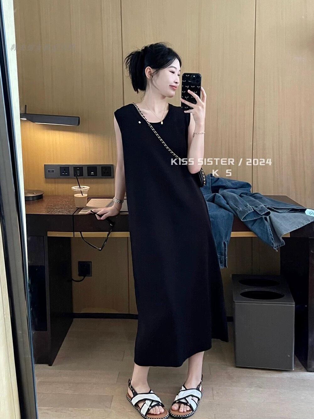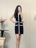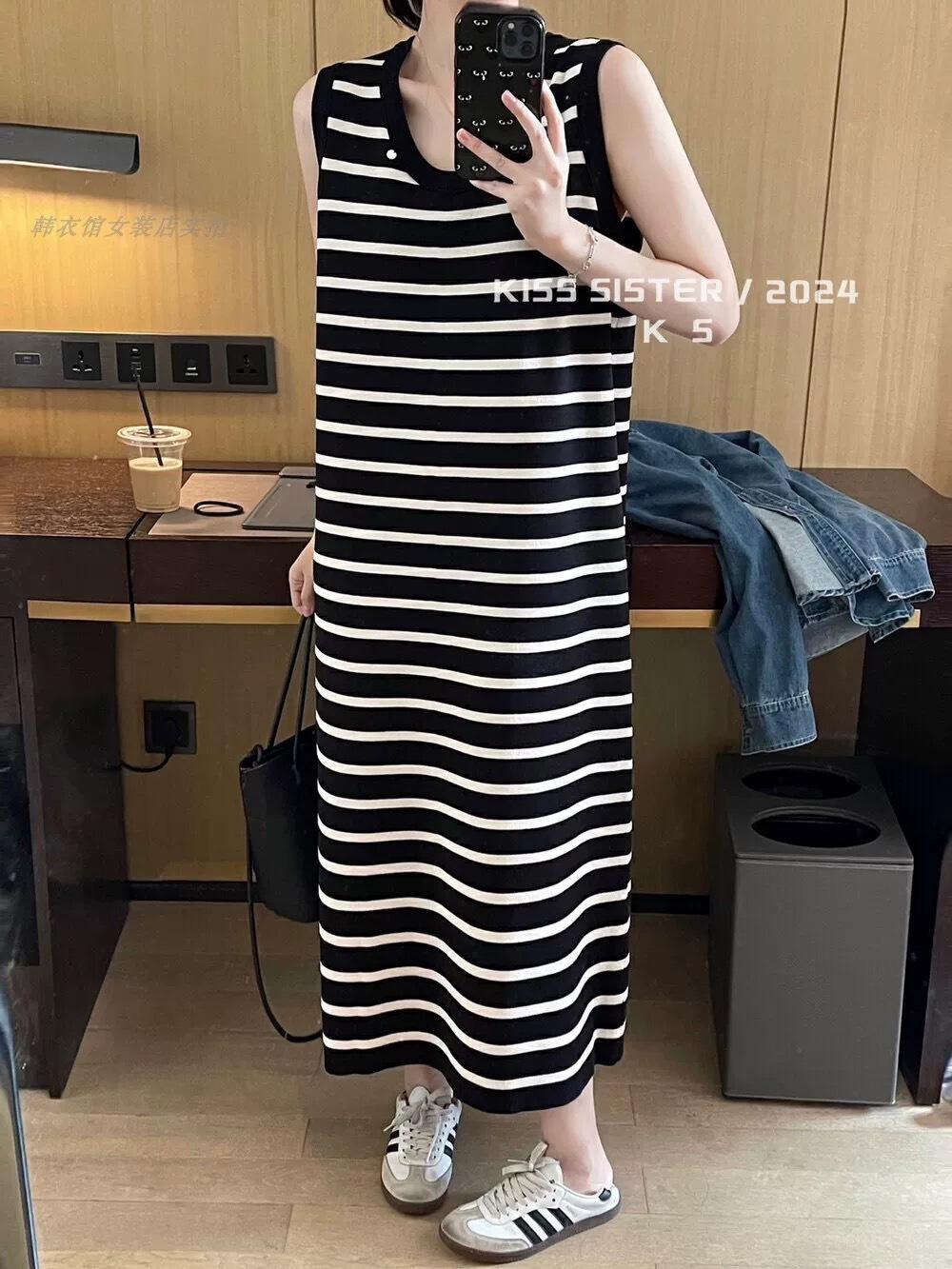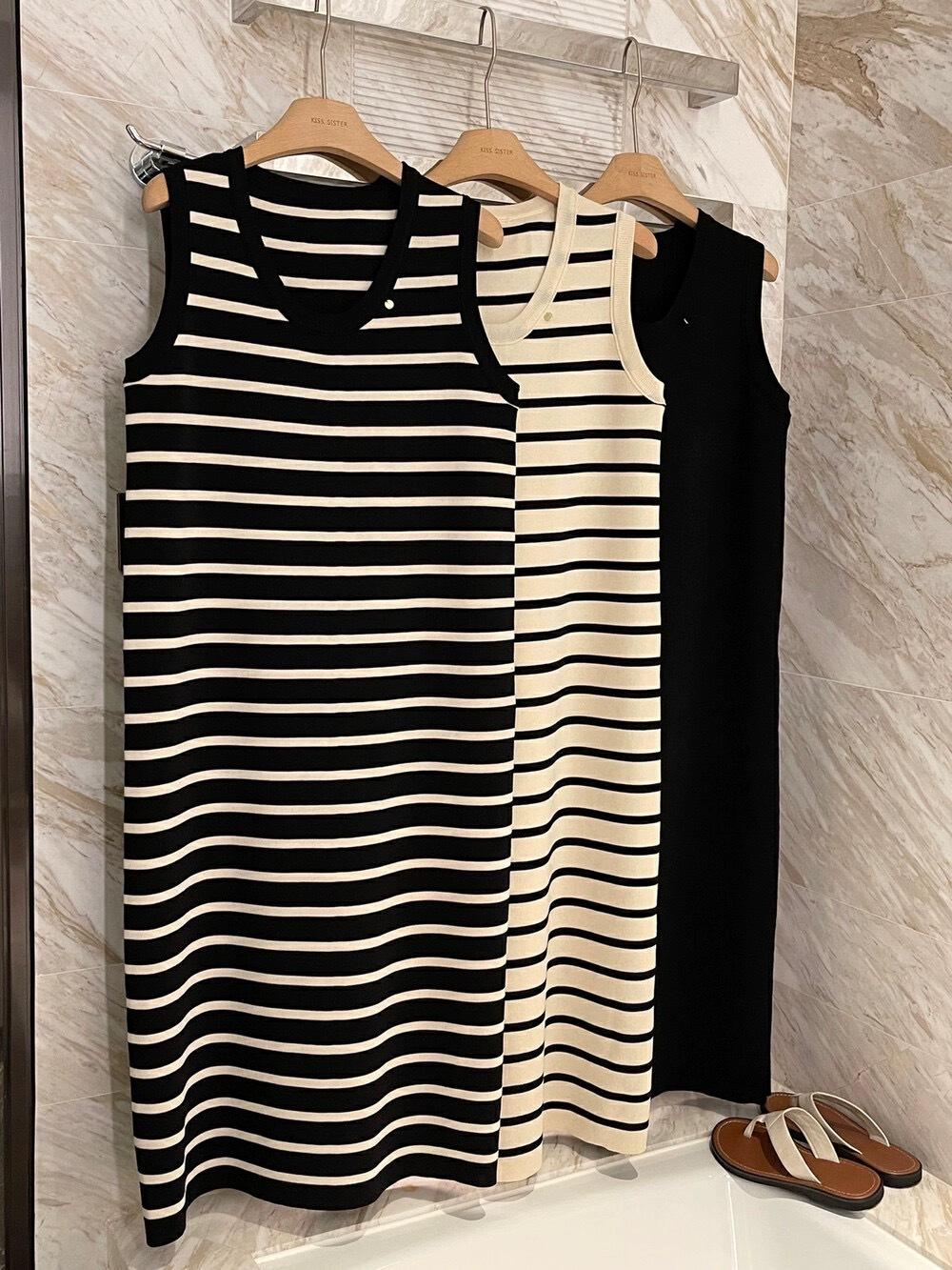 Vestido Tejido sin Mangas con Cuello U de Rayas en Contraste para Mujer Verano Nuevo Estilo Vestido Pequeño Chic y Hermoso