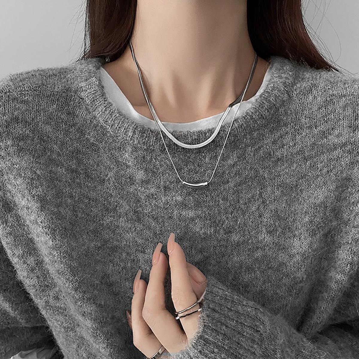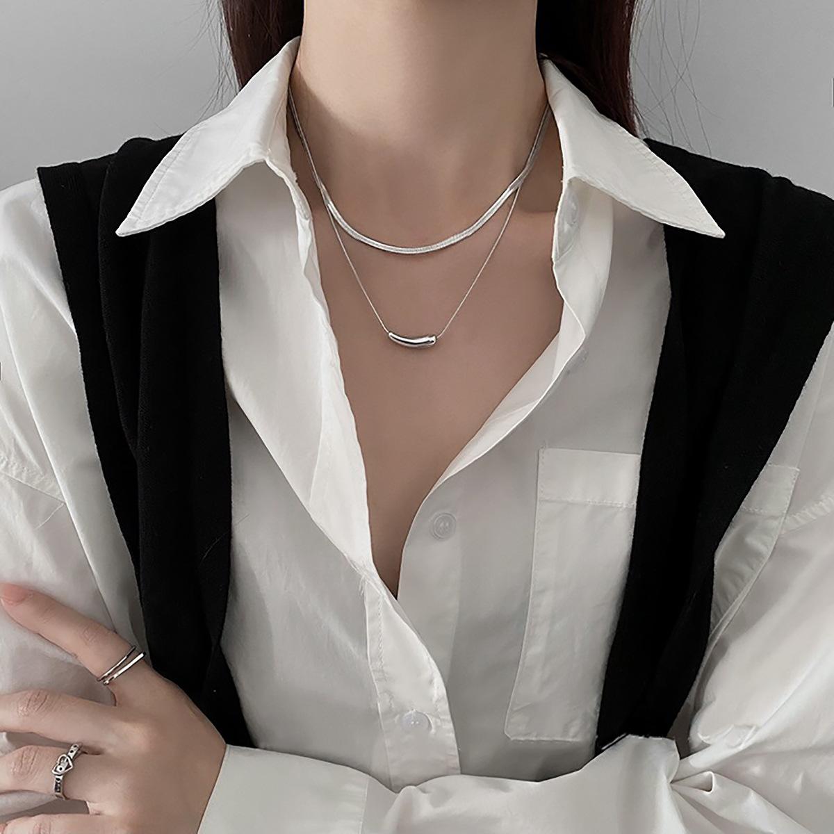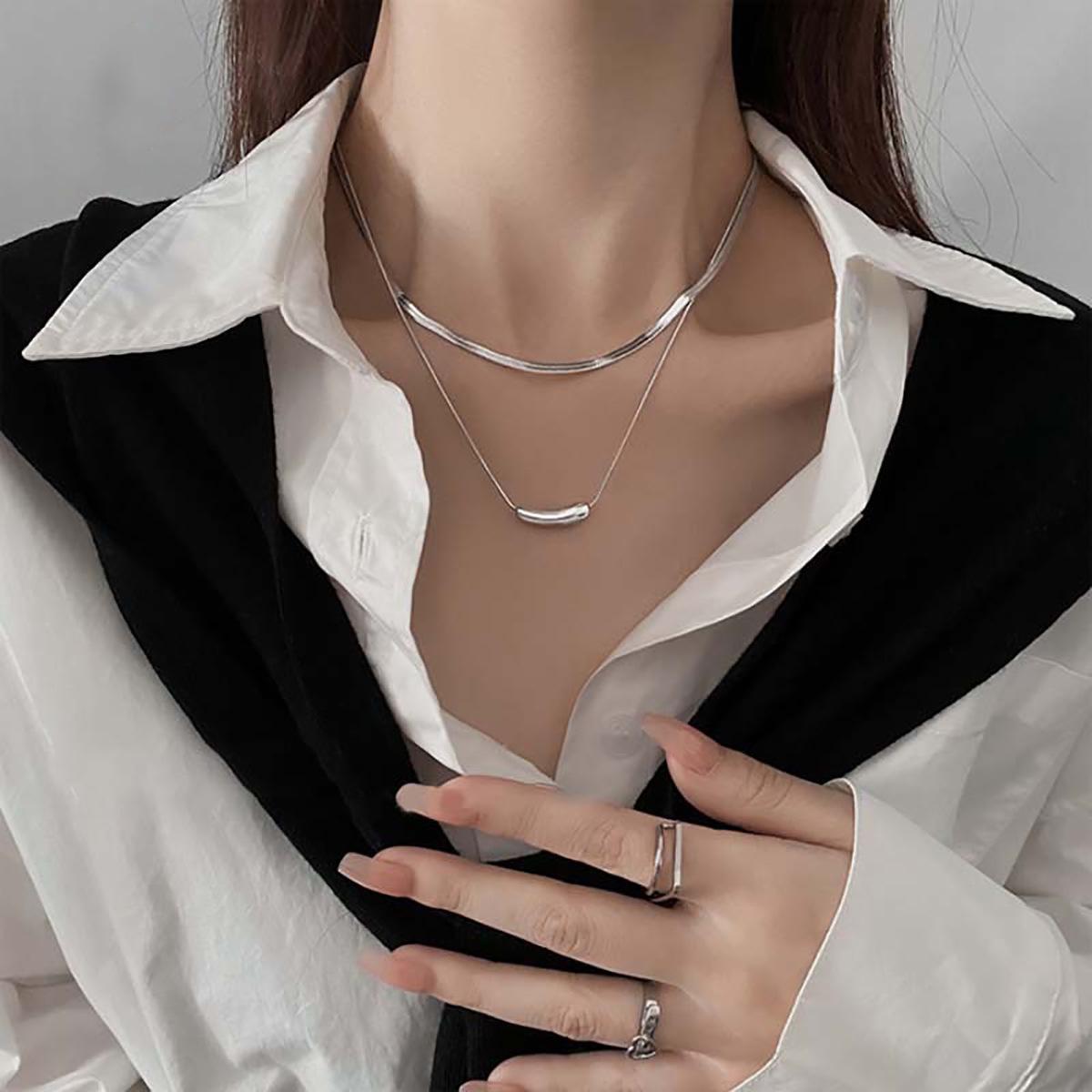 Collar creativo de doble capa apilada para mujer, diseño de nicho ligero y lujoso, estilo hip hop simple, cadena de clavícula con cuentas de transferencia de pimienta