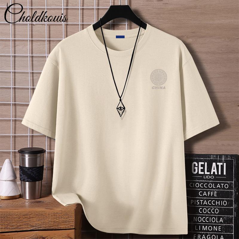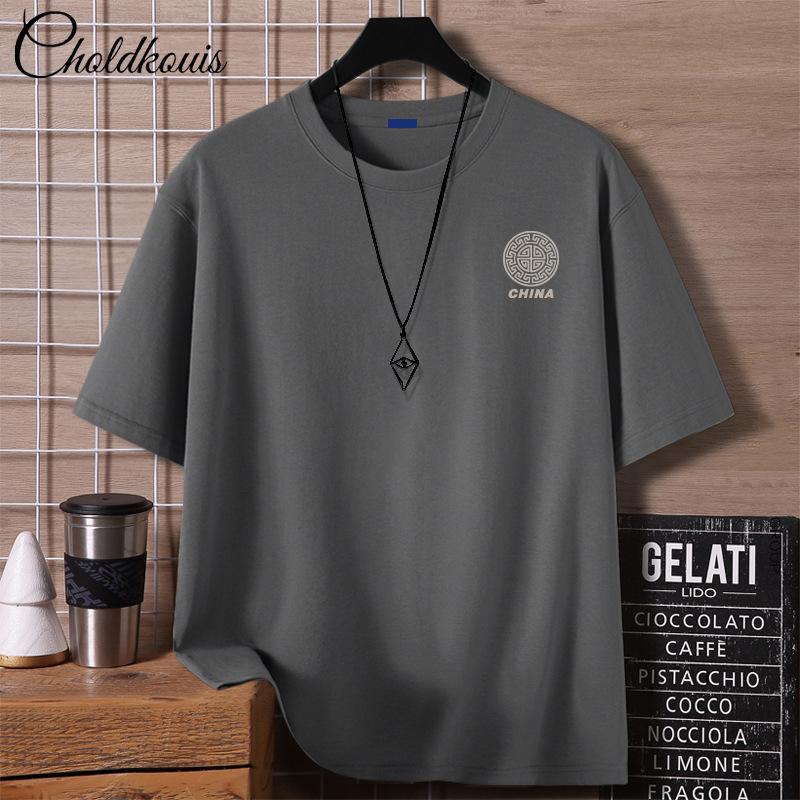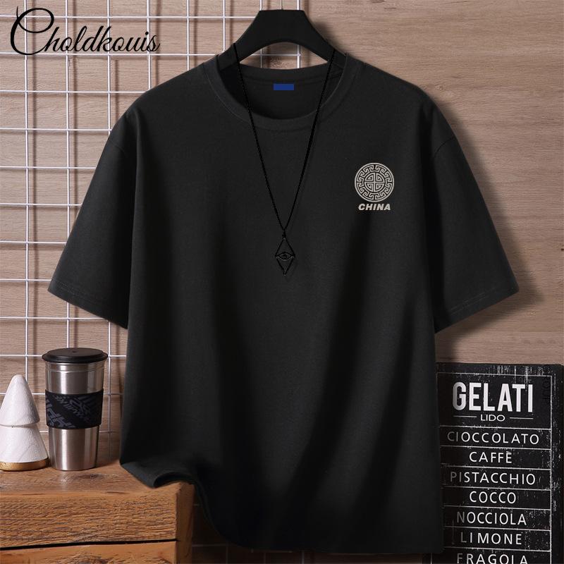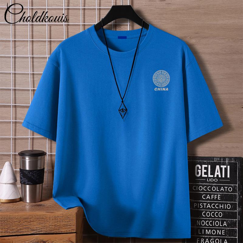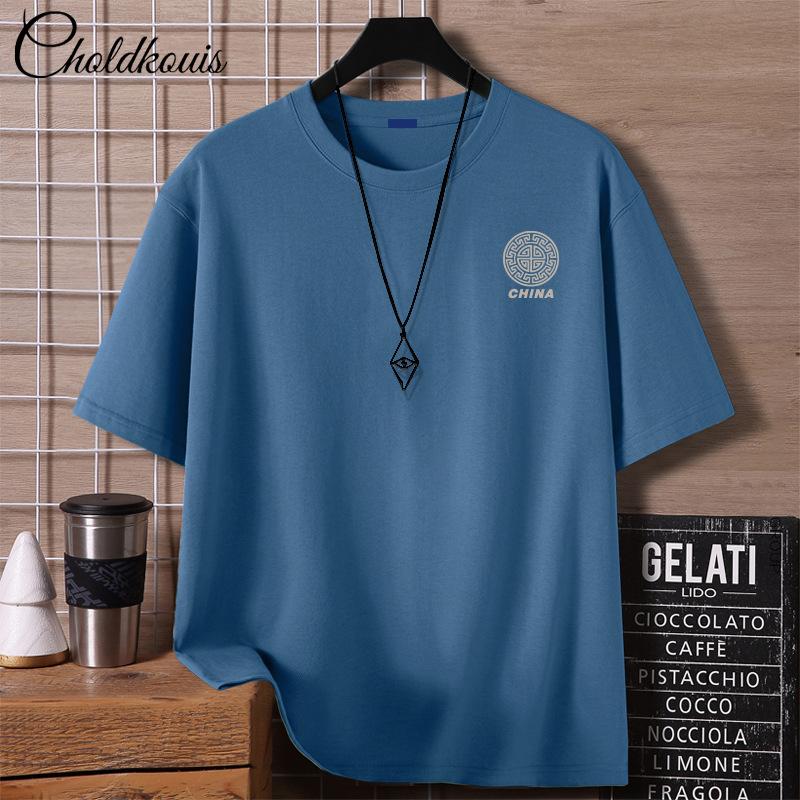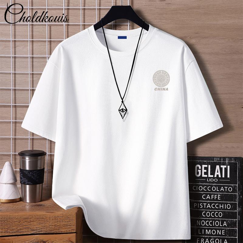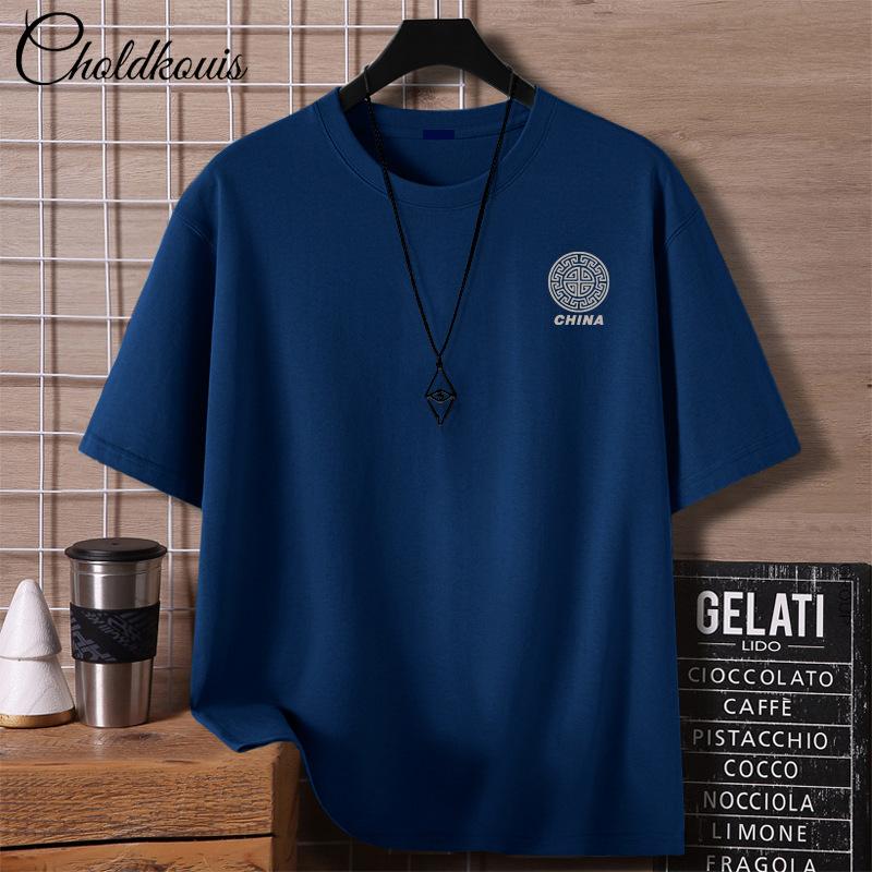 Camiseta de manga corta para hombre, de verano, holgada, de algodón, transpirable, con cuello redondo y media manga, con estampado de moda para hombre.