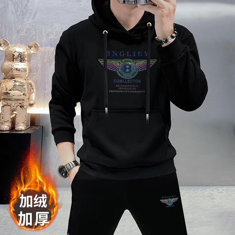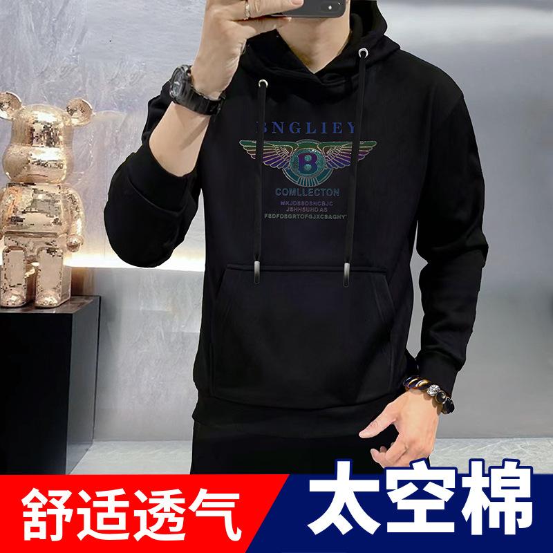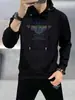 Suéter con capucha para hombre 2023 nuevo, forro polar grueso, moda masculina, otoño e invierno, top con letras de diamantes de imitación, ropa exterior
