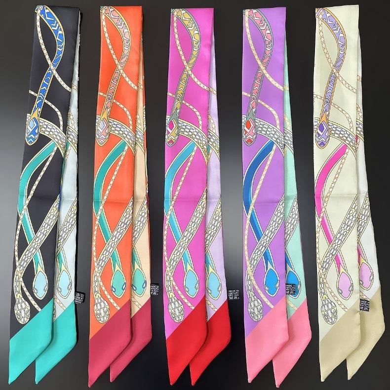 Nuevo de principios de primavera ~ bufanda de seda larga y estrecha delgada para mujer elegante para todo uso cinta larga para atar asa de bolso cinta cinturón banda para el cabello