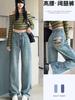 Vaqueros de pierna ancha para mujer, primavera 2024, nuevos pantalones rectos drapeados retro con diseño de moda holgado y cintura alta