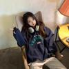 Suéter con capucha y cuello redondo para mujer, abrigo holgado de estilo coreano para estudiantes de gran tamaño, top de manga larga a la moda para otoño