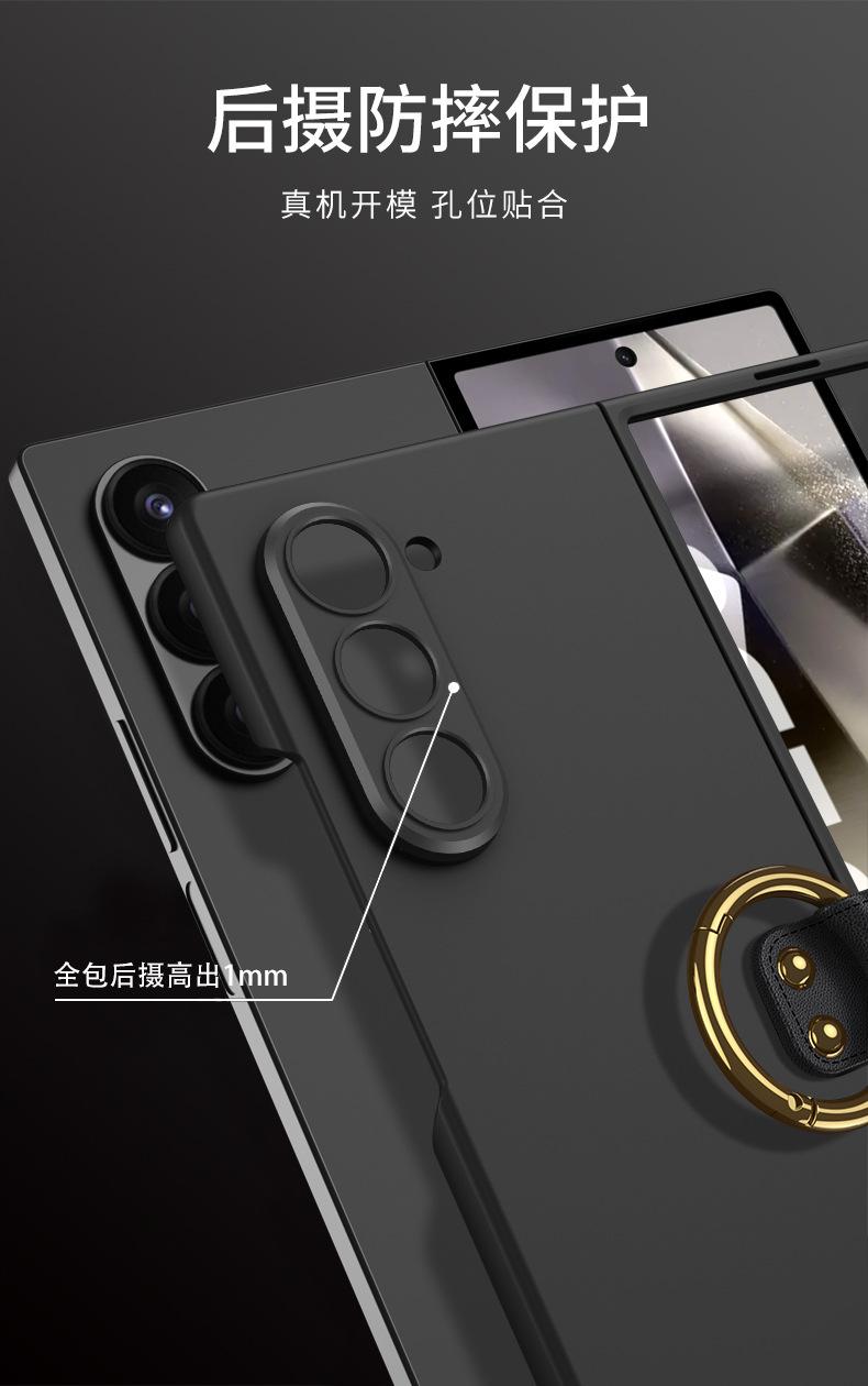 Funda plegable para Samsung Galaxy Z Fold6 con orificio fino y hebilla de anillo ultrafina para cámara