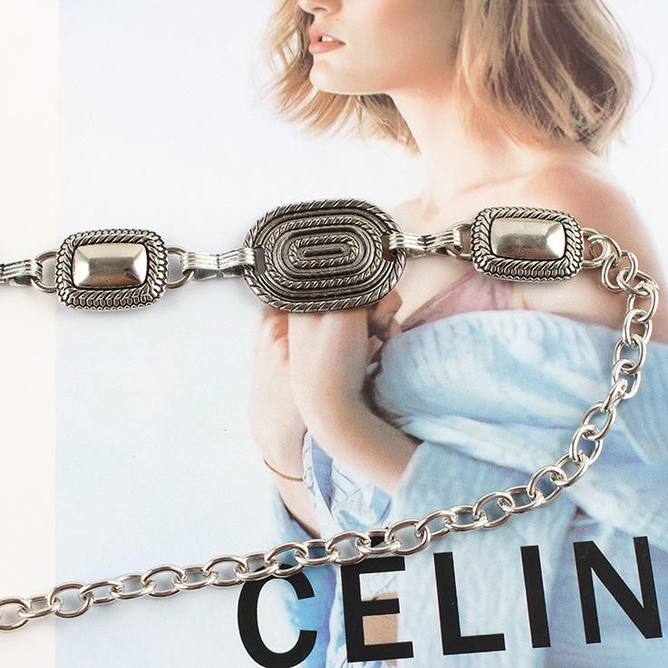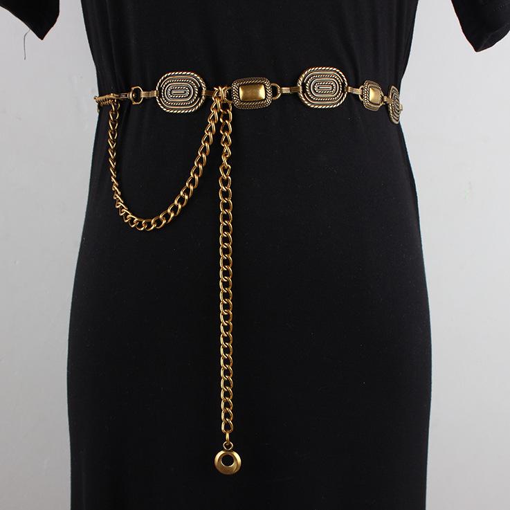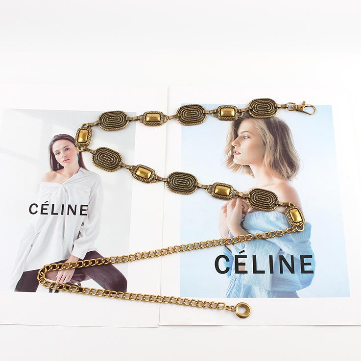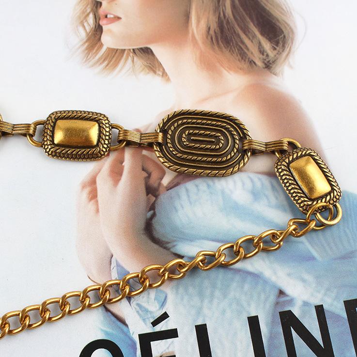 Cadena de cintura de metal de bronce para mujer, cadena de moda vintage, decoración de cinturón, accesorios de cintura de alta gama.