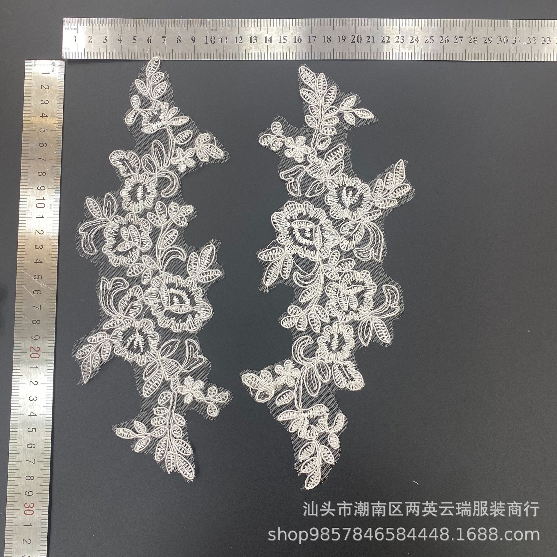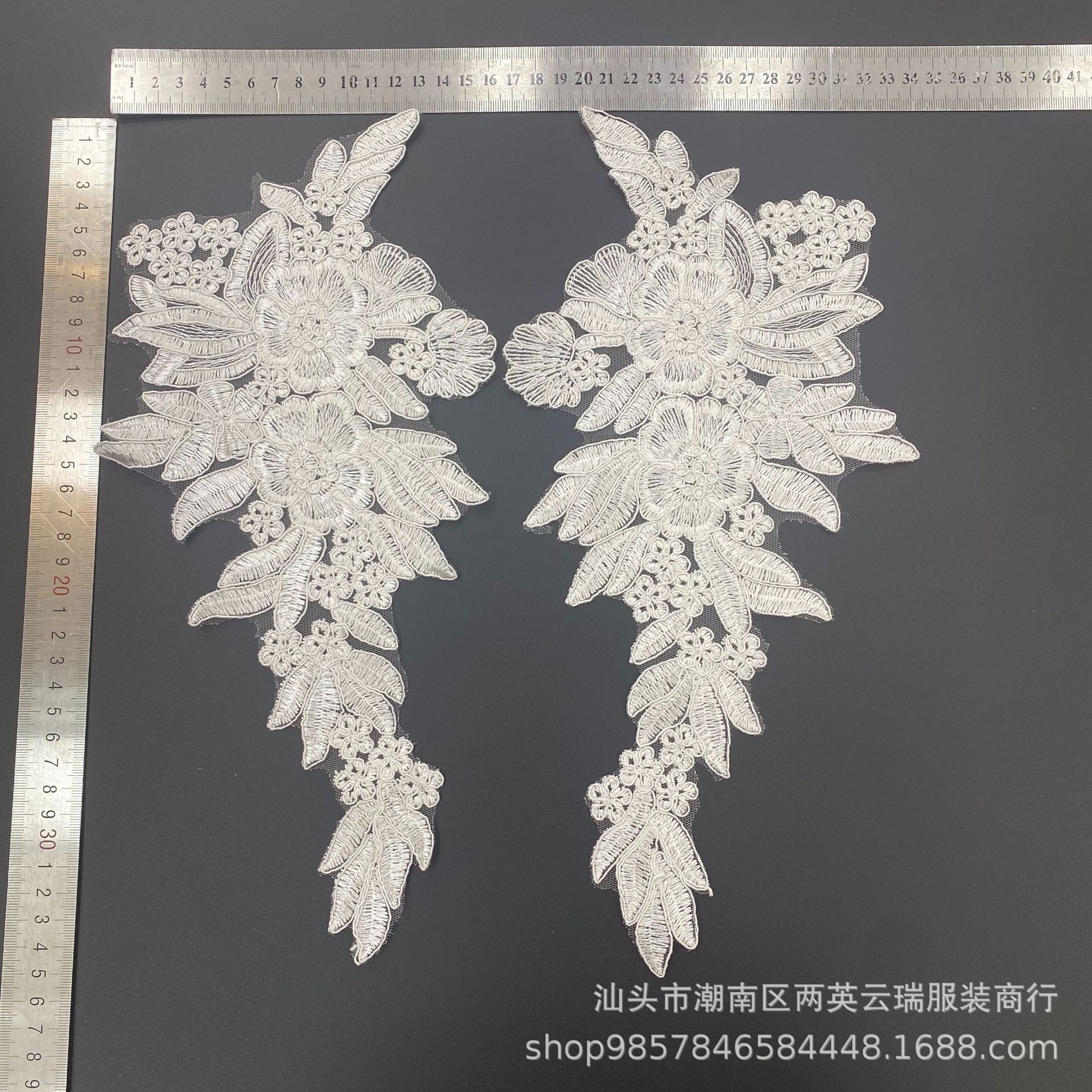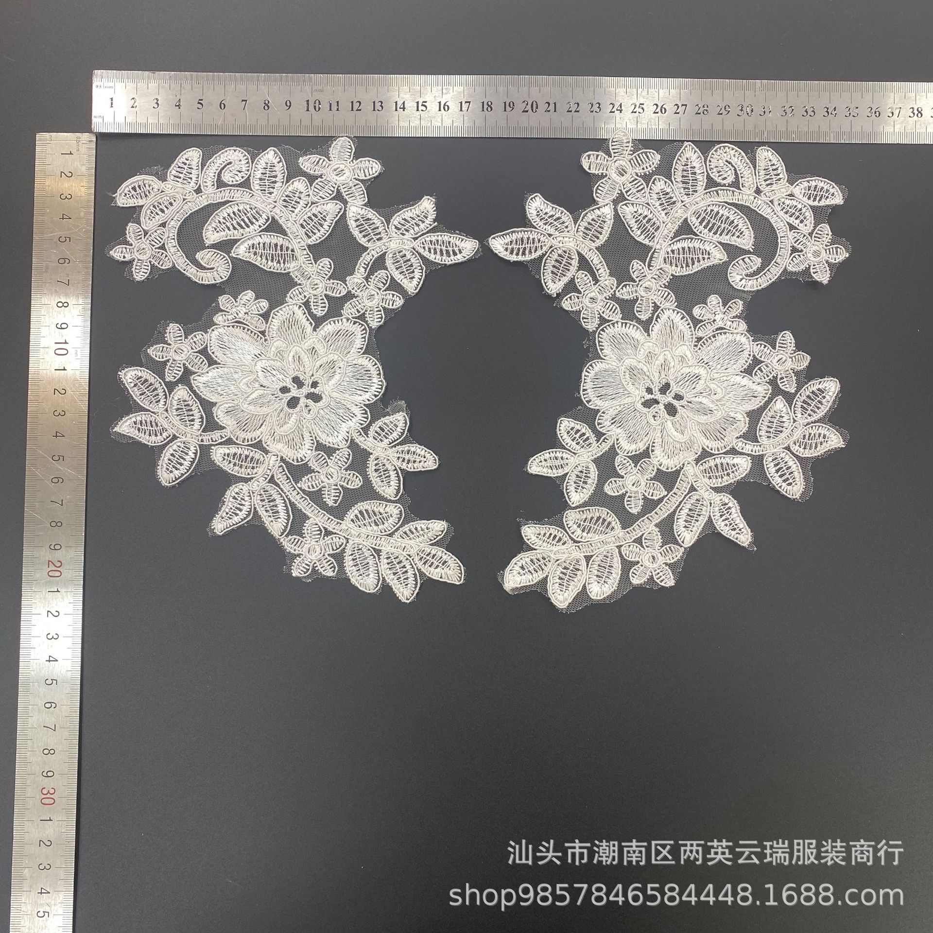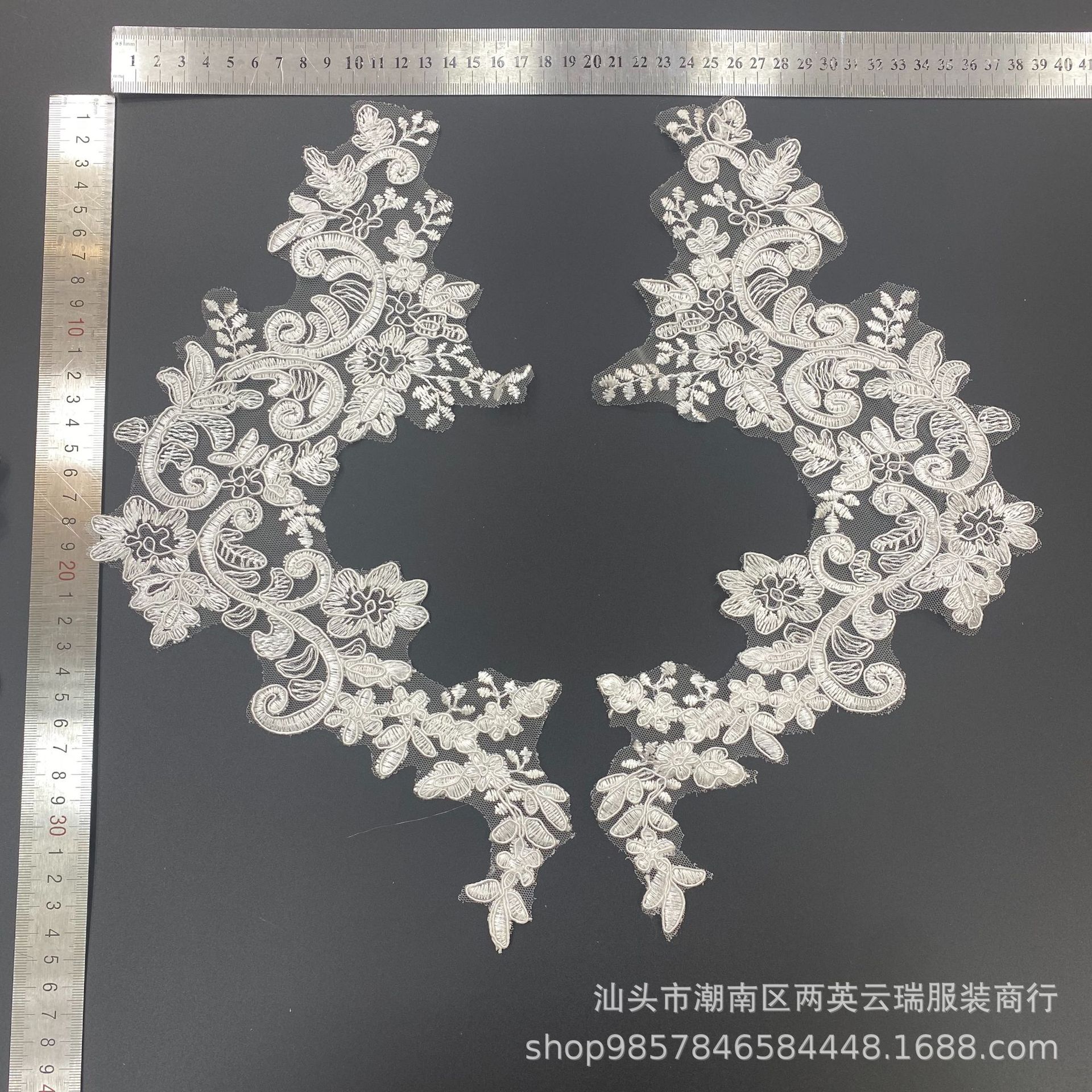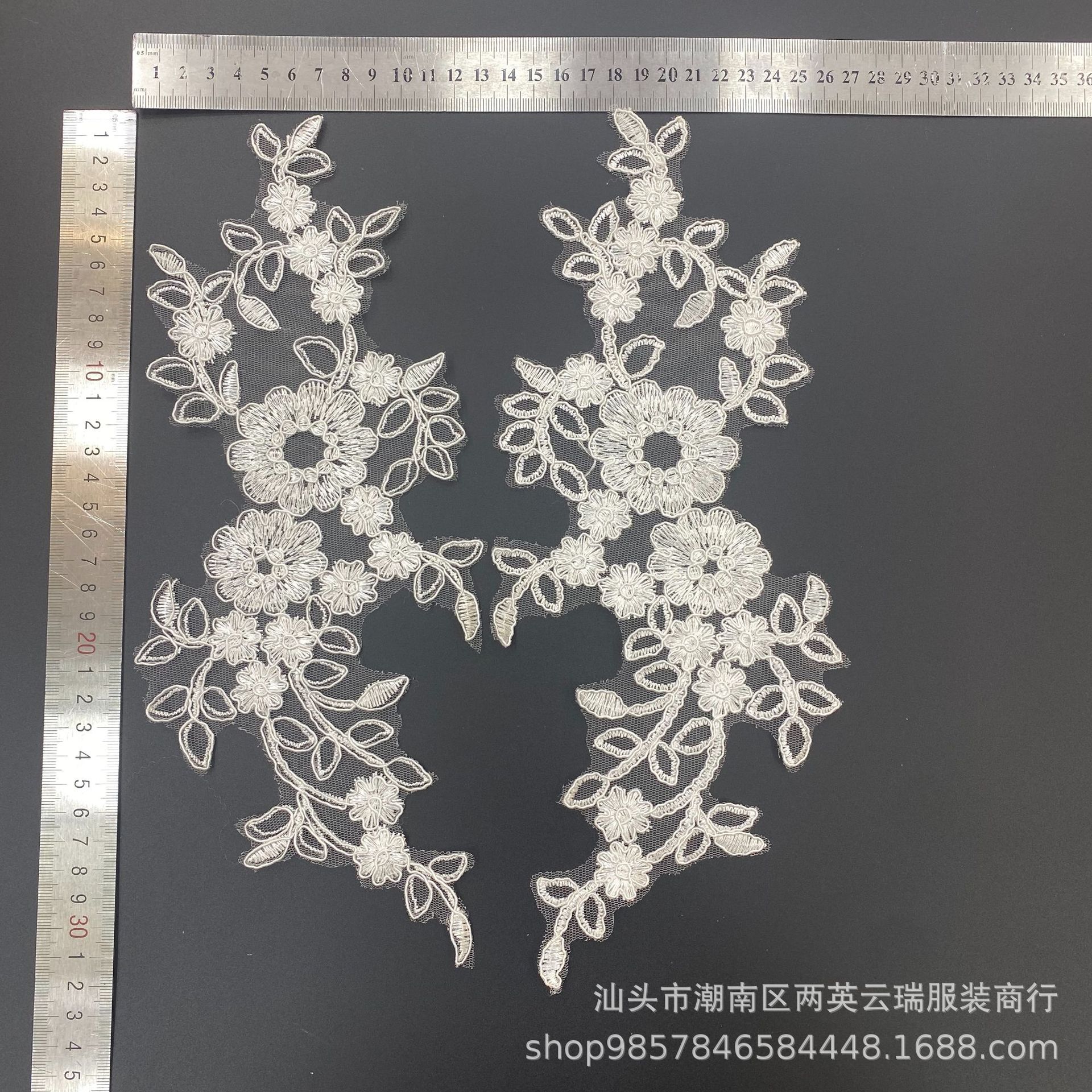 Par de huesos de coche con bordado de fábrica, collar de flores, vestido de novia, accesorios hechos a mano, apliques de encaje, accesorios de ropa