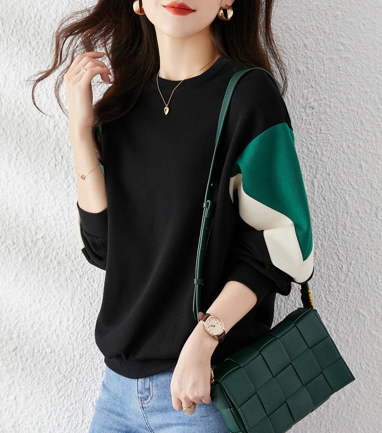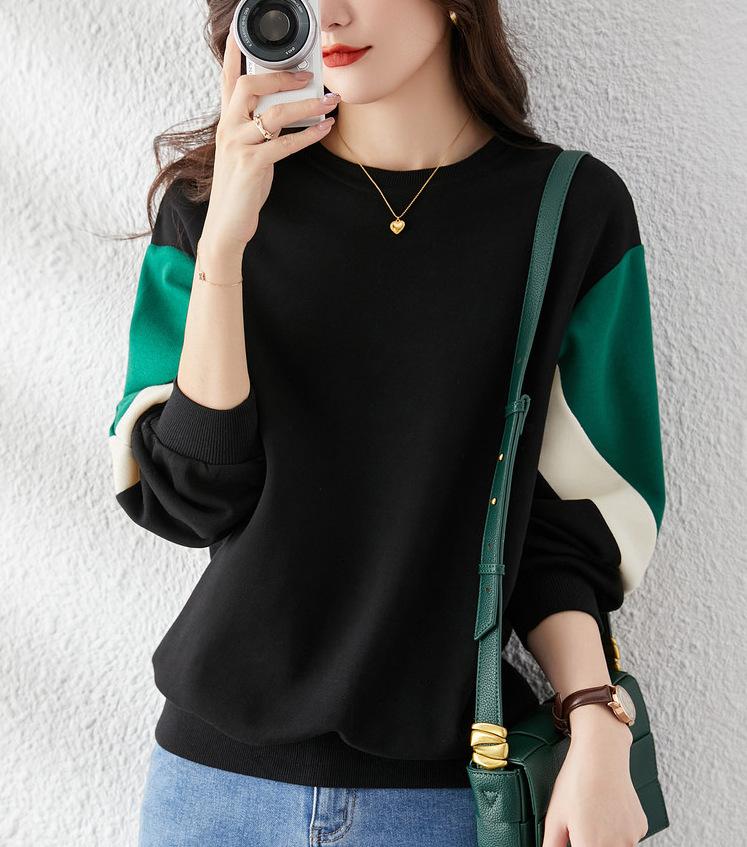 Sudadera Casual Versátil de Cuello Redondo Otoño 2023, Ropa de Trabajo a la Moda, Top Cómodo para Mujer que Cubre la Carne, Estilo K Sencillo