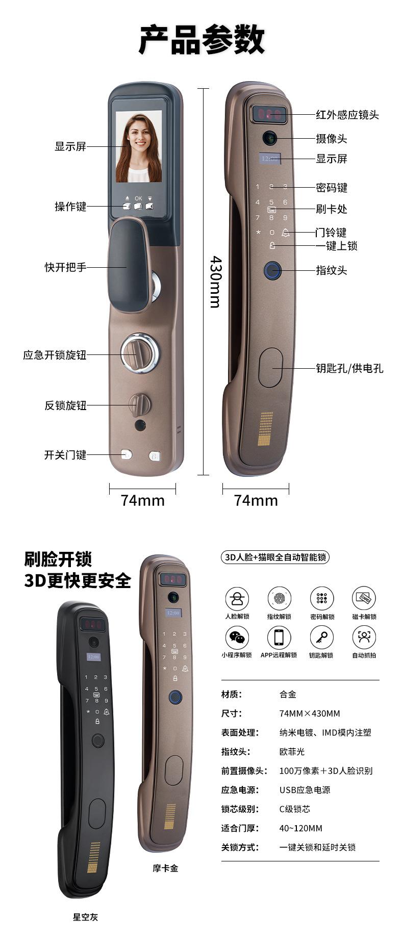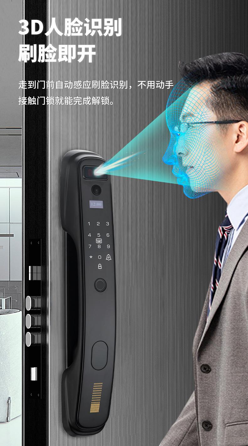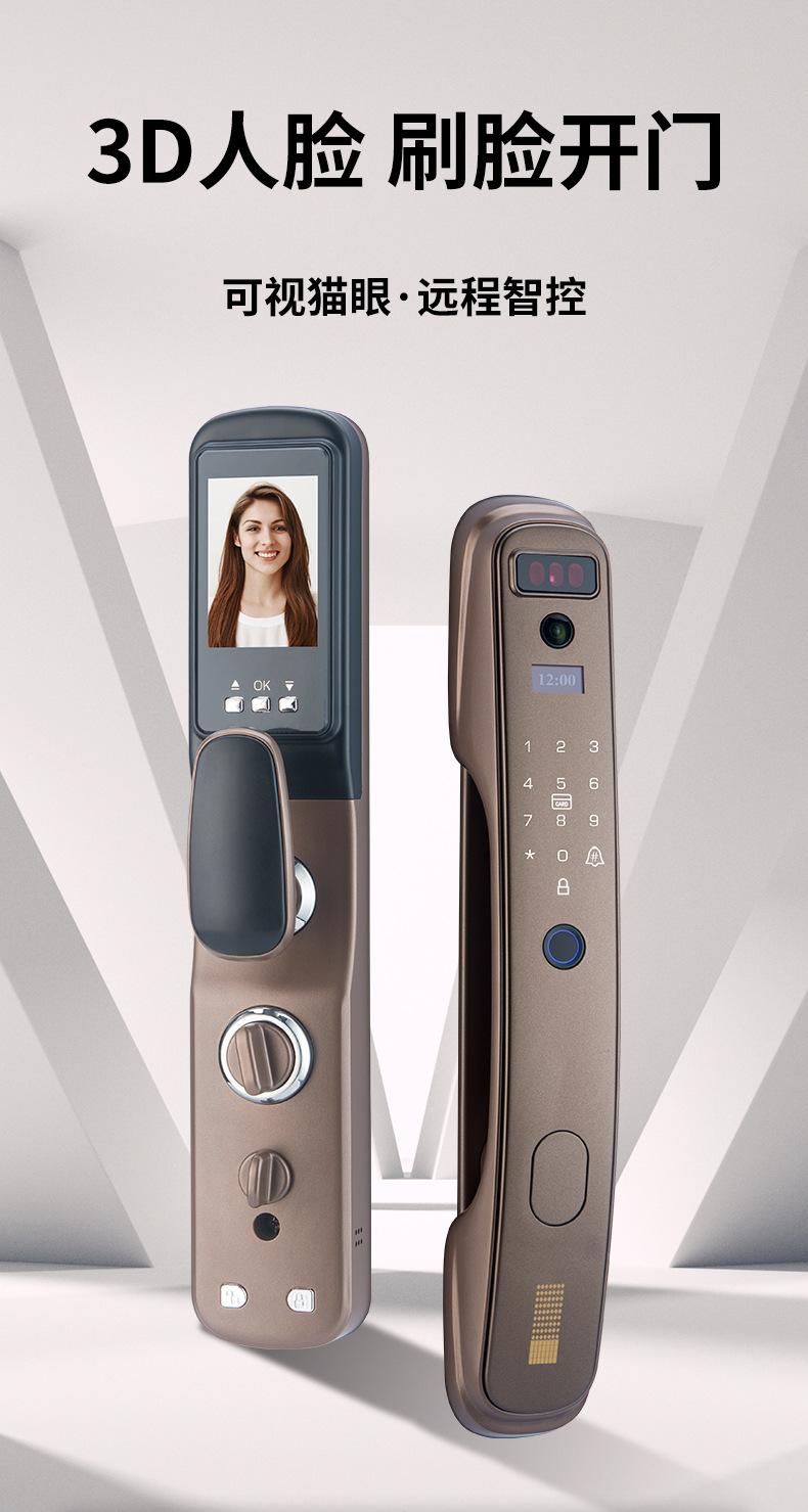 Cerradura inteligente con reconocimiento facial 3D, cerradura inteligente automática, cerradura de huella dactilar con ojo de gato visual para el hogar, cerradura de puerta antirrobo, cerradura con contraseña