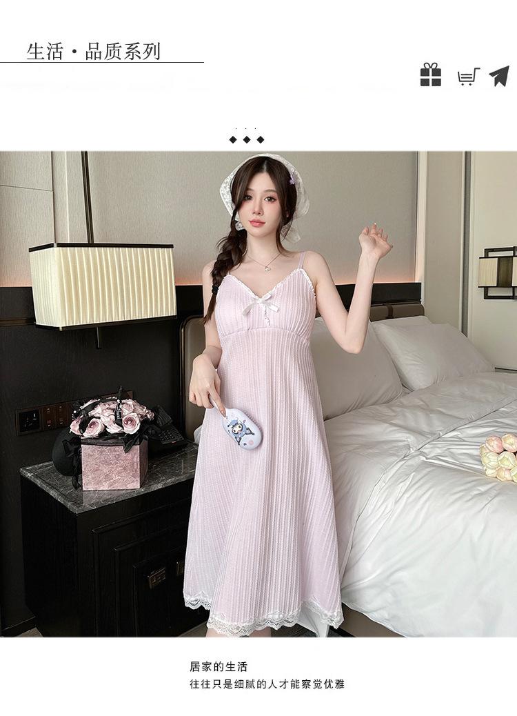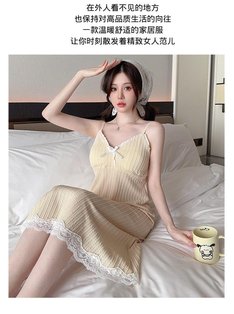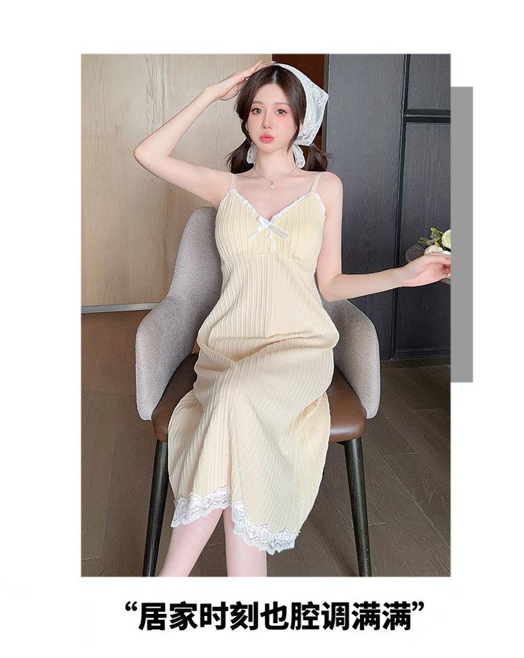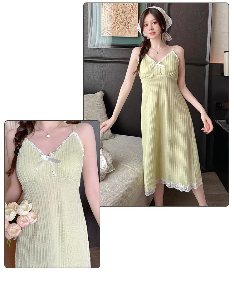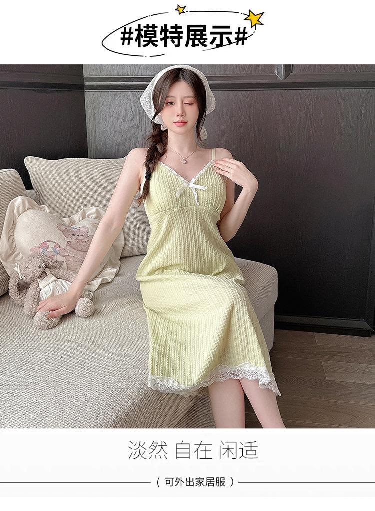 Pijamas de verano para mujer, estilo princesa dulce, con tirantes y almohadilla para el pecho, de longitud media, holgados, para uso exterior y hogar.