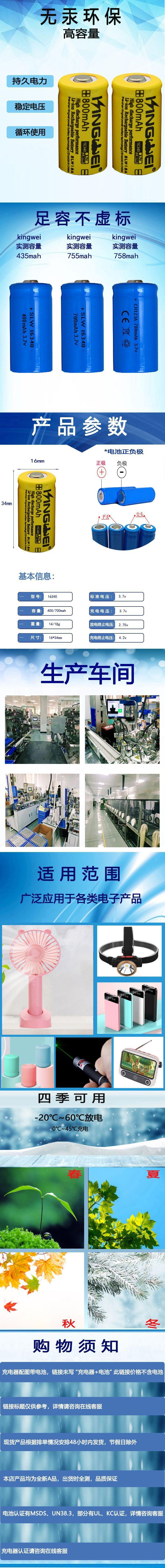 Nueva Batería de Litio Recargable 16340 Genuina 800mAh Batería de Litio 3.7V Batería Recargable Duradera