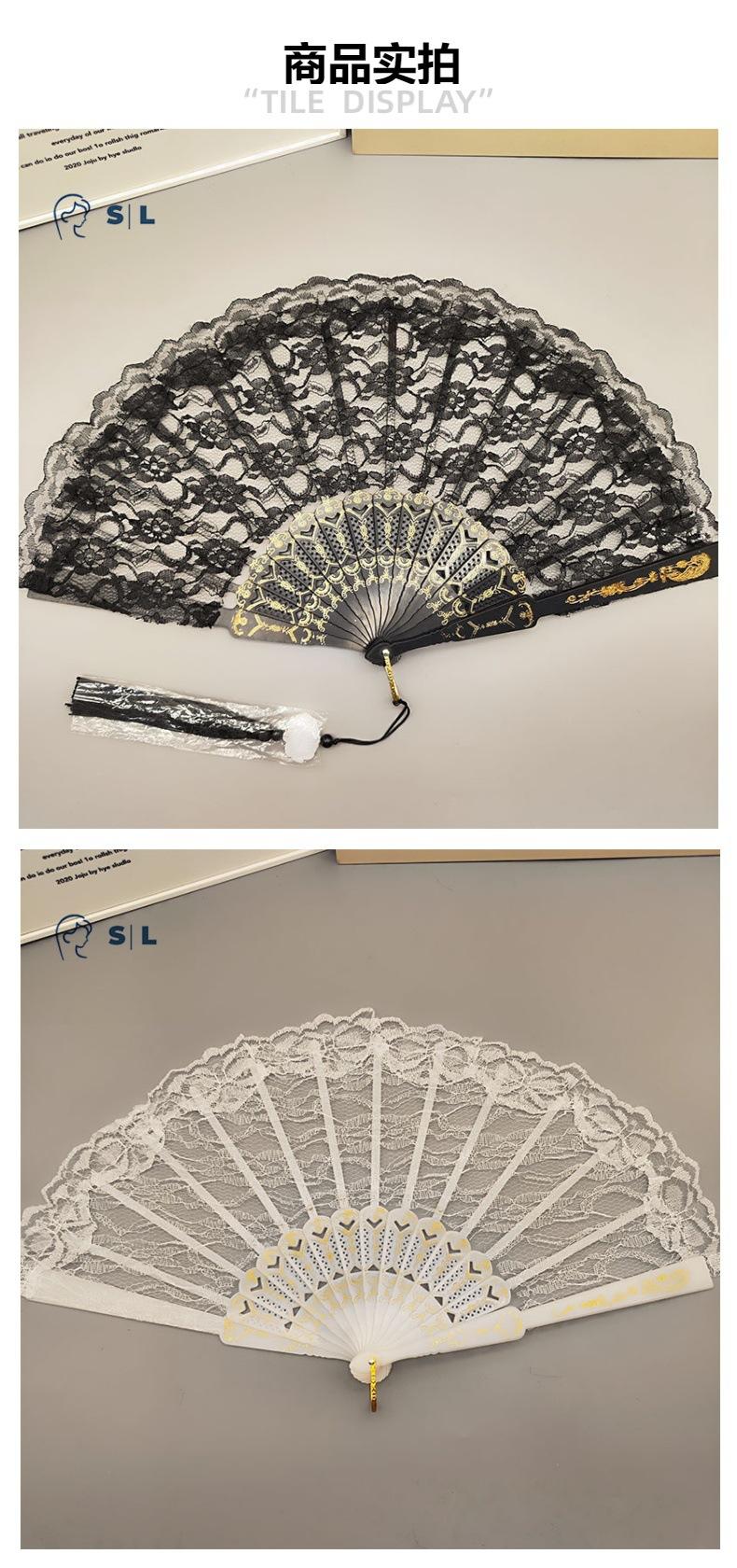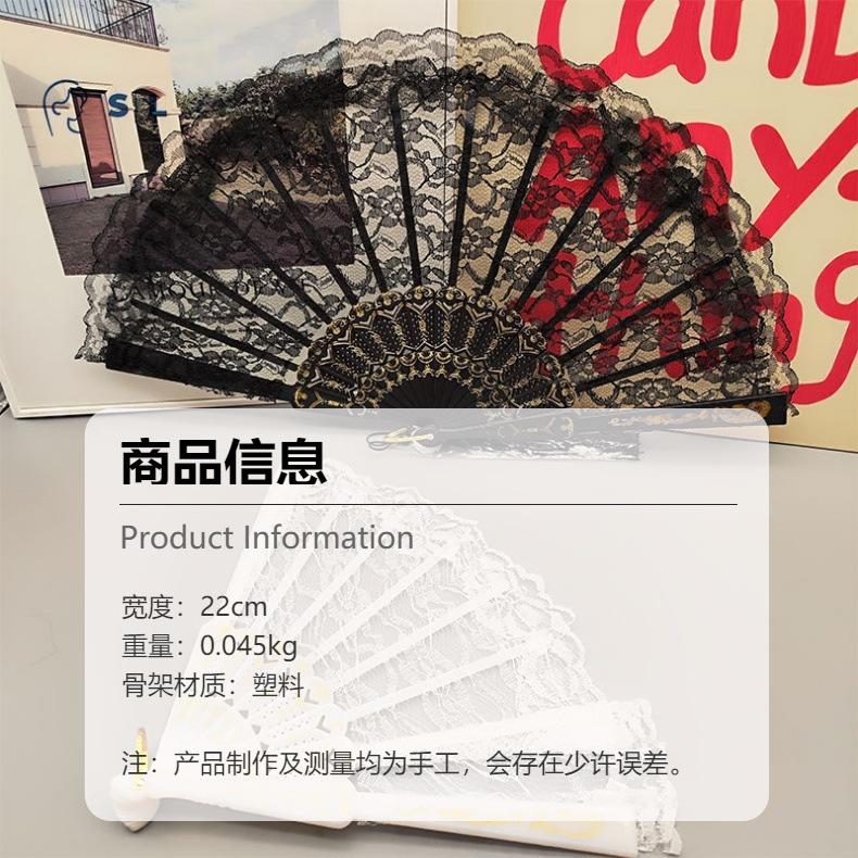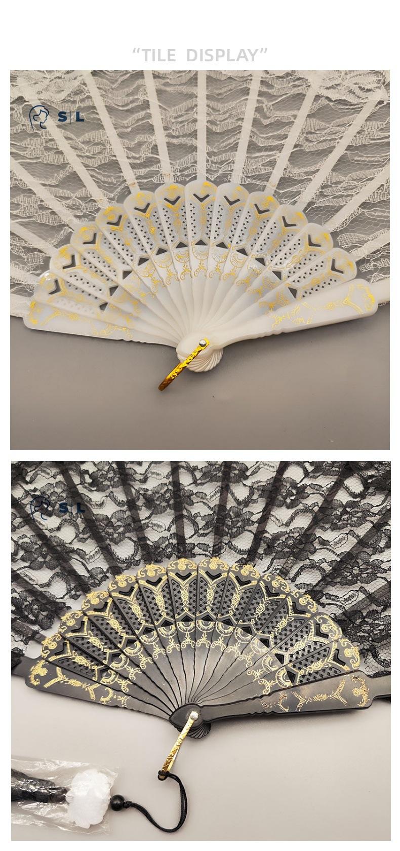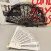 Encaje Retro Sexy Hanfu Chino Cheongsam Posing Abanico Blanco Mujer Accesorios de Apoyo para Boda Plegable Joyería