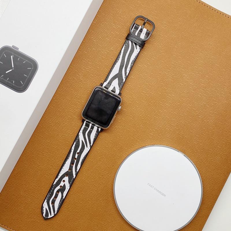 Aplicable a Correa de Cuero de Silicona Apple Apple Watch5 Banda Patrón Pintado Cebra 5ª Generación Hebilla Japonesa