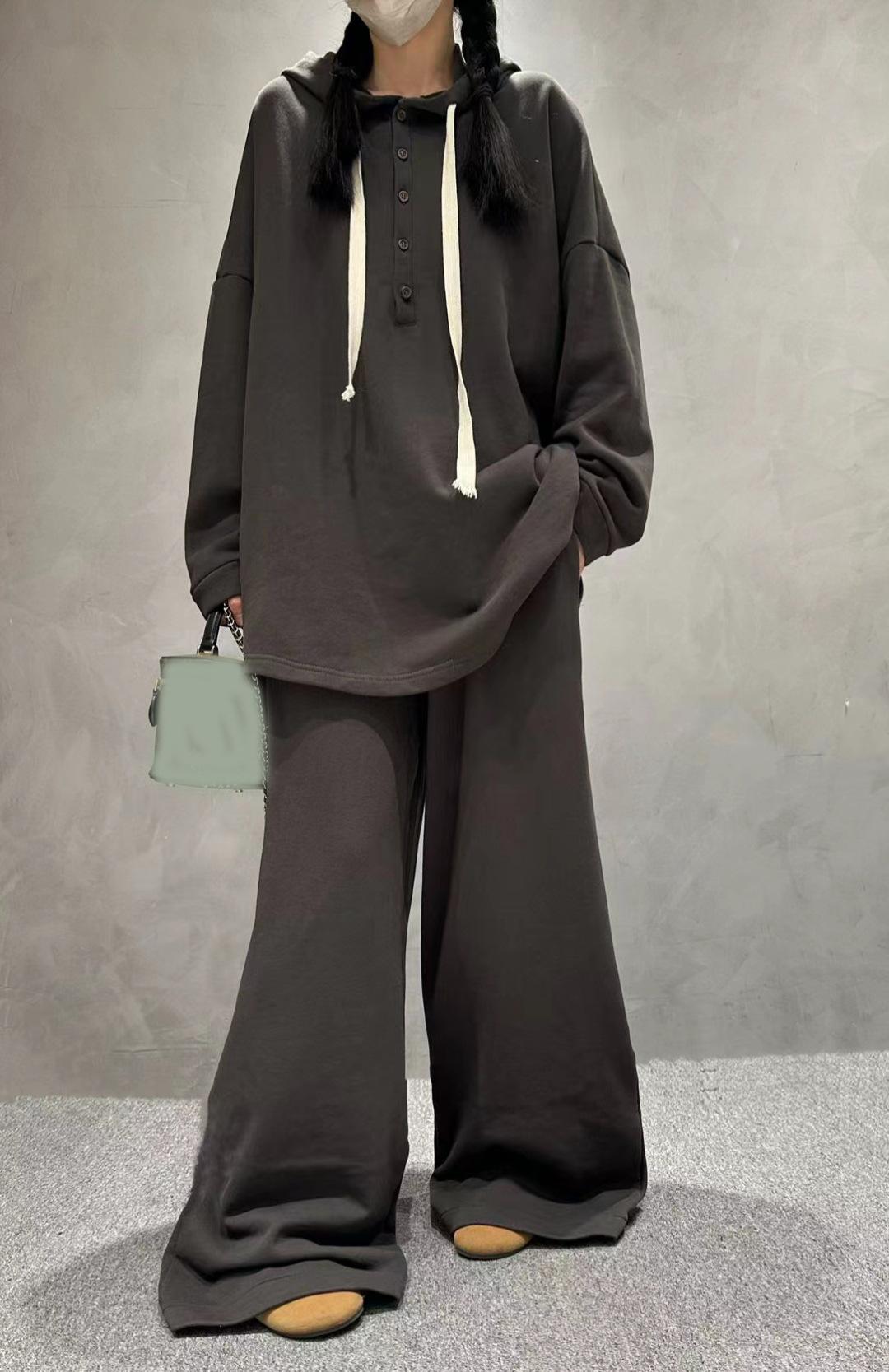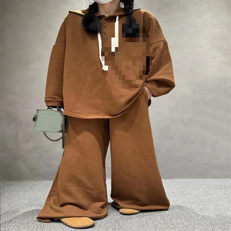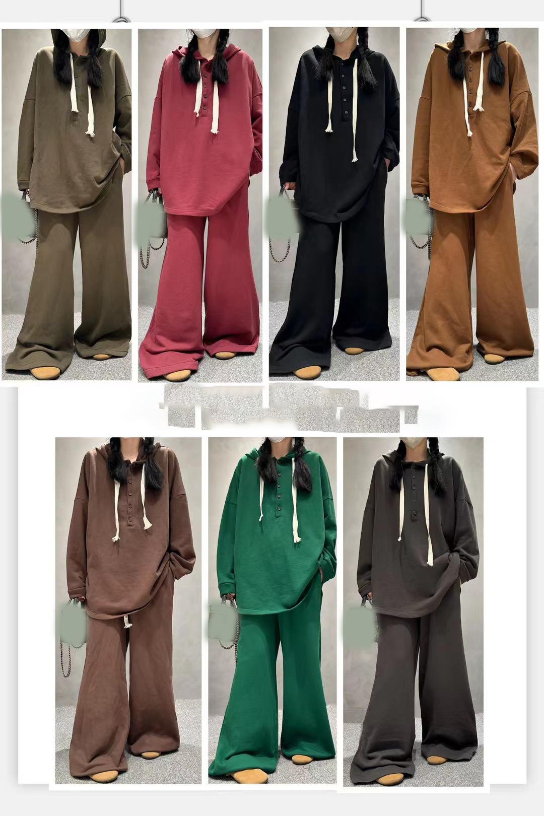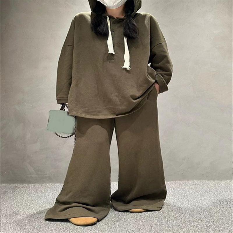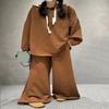 Traje de pantalón de pierna ancha de talla grande para mujer, nuevo otoño e invierno 2023, europeo transfronterizo, color sólido, temperamento casual, dos piezas para mujer