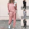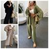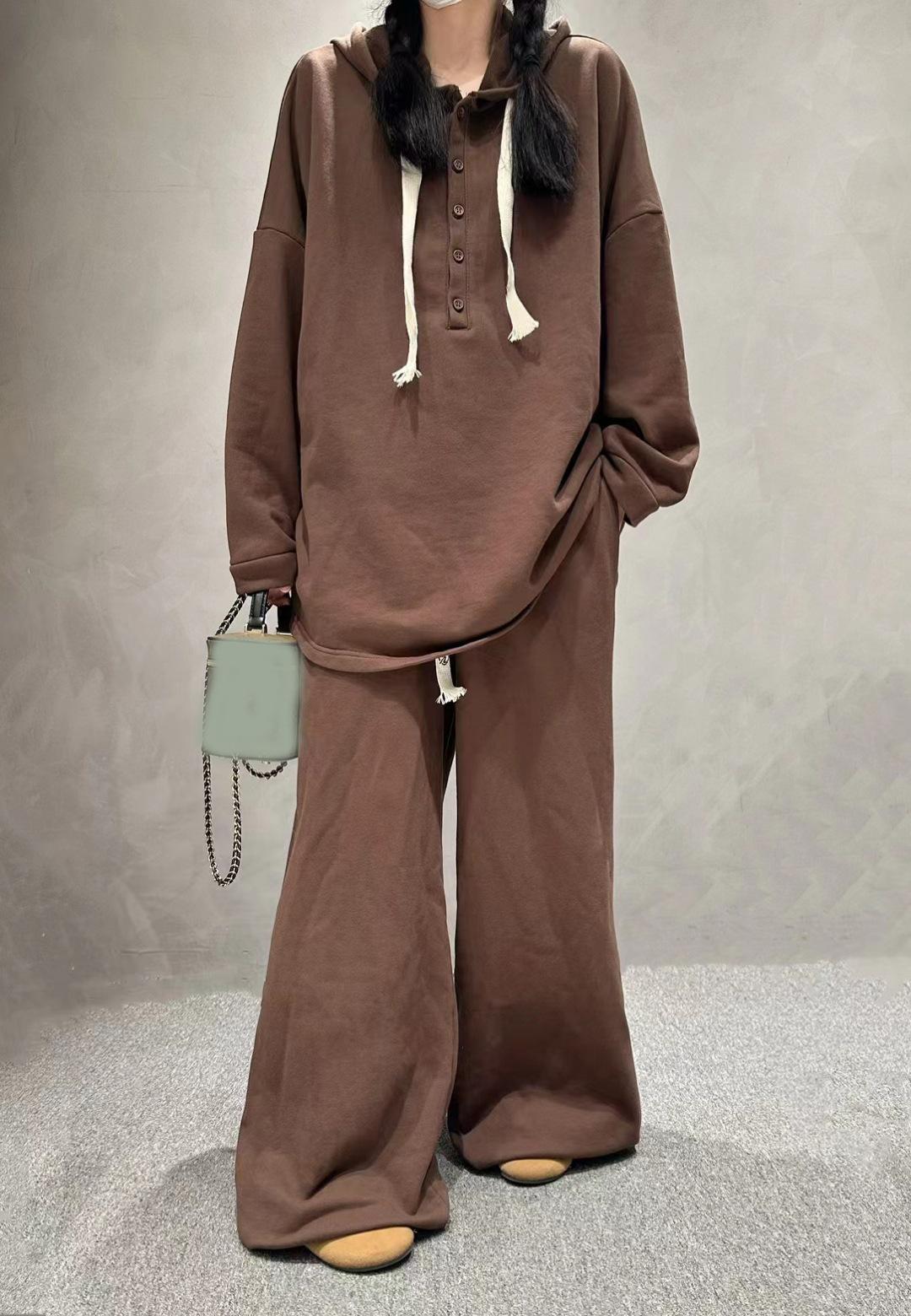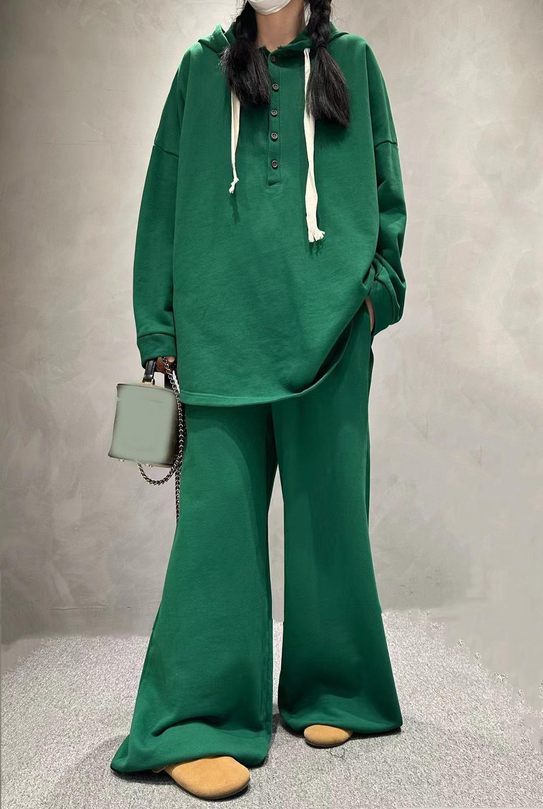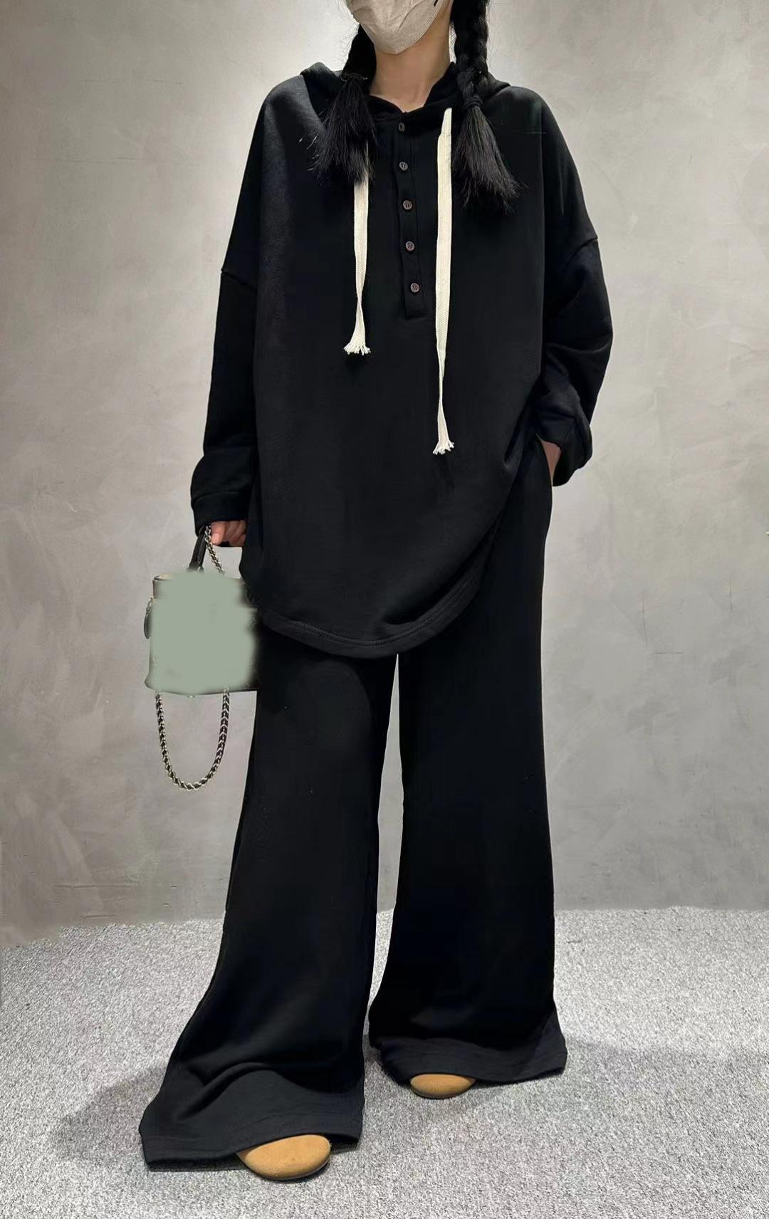 Traje de pantalón de pierna ancha de talla grande para mujer, nuevo otoño e invierno 2023, europeo transfronterizo, color sólido, temperamento casual, dos piezas para mujer