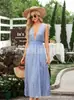 Nueva Falda de Playa de Amazon con Aberturas, Falda Larga Estilo Vacacional, Vestido Sexy de Playa sin Mangas con Escote en V Profundo y Pecho Envolvente