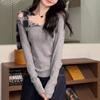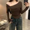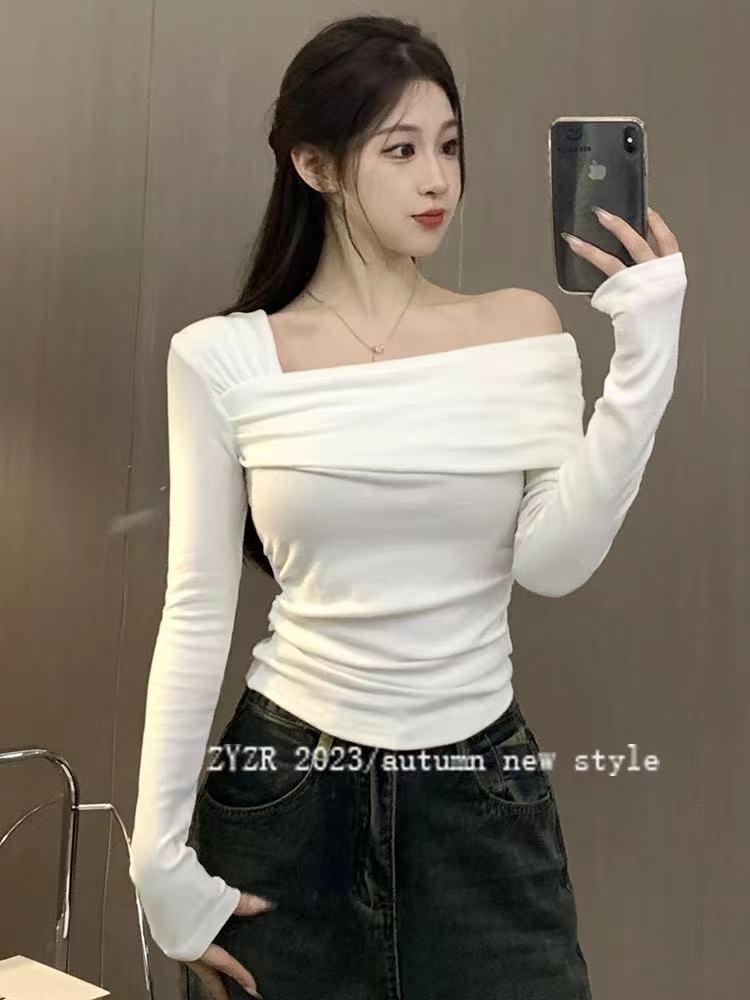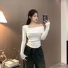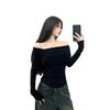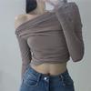 Top de Manga Larga Pure Sexy Spice Girl para Mujer 2024 Nueva Ropa de Primavera Estilo Coreano Corto Cuello Inclinado Hombros Descubiertos Ajustado