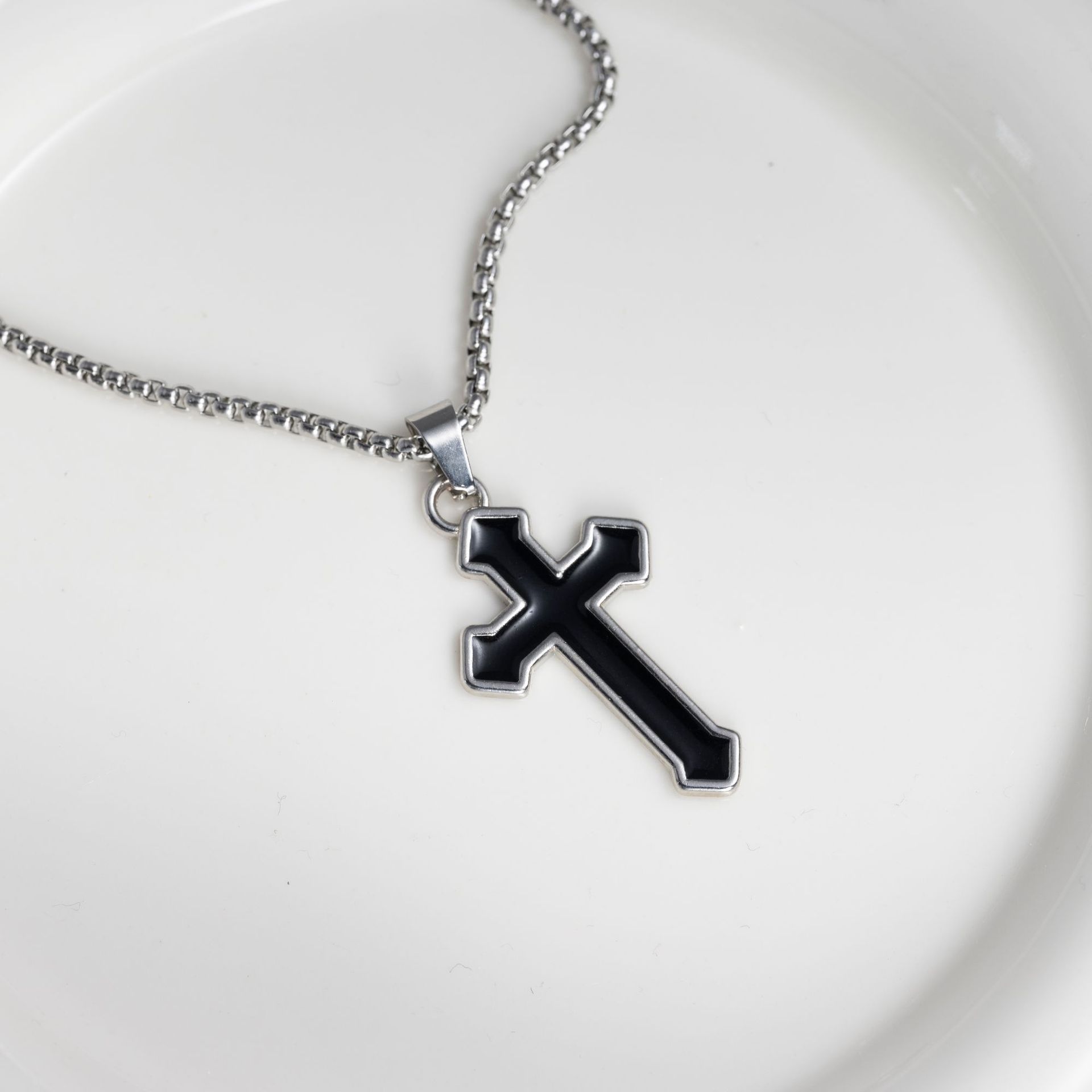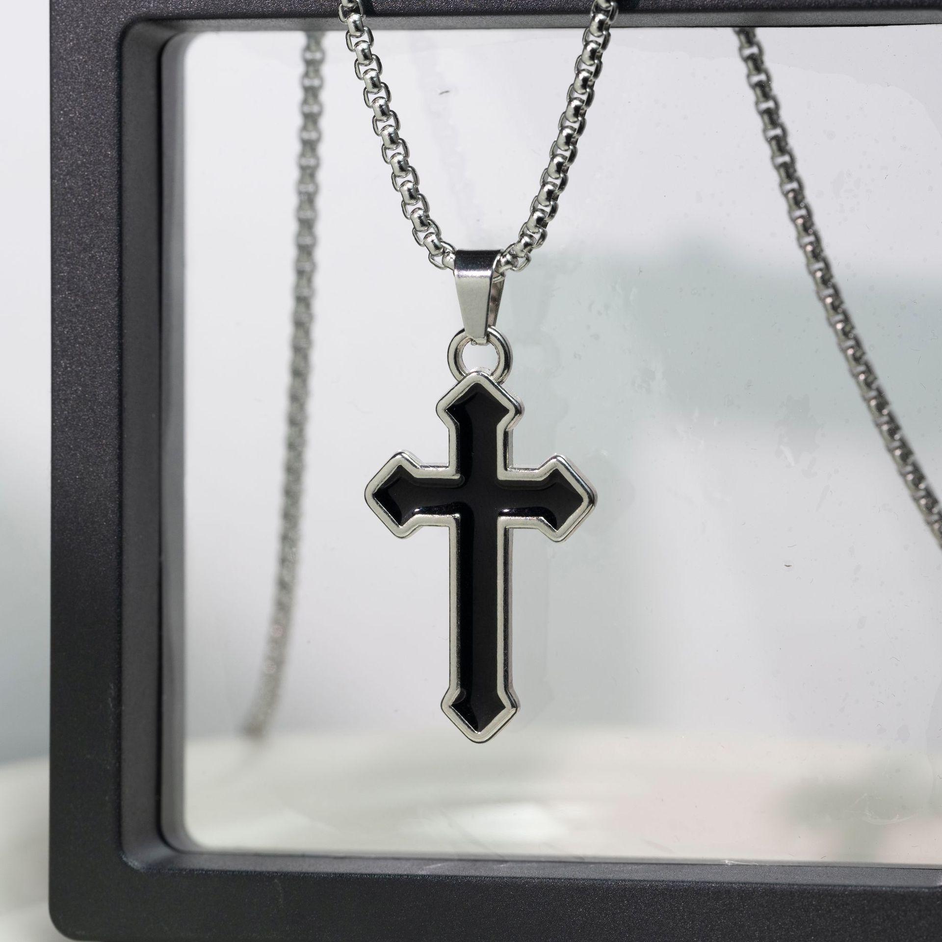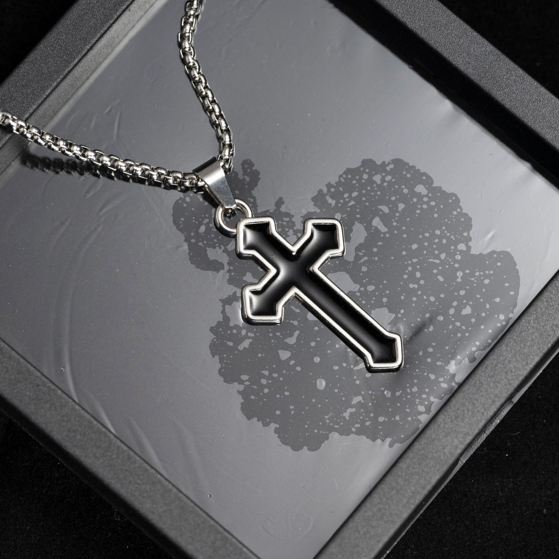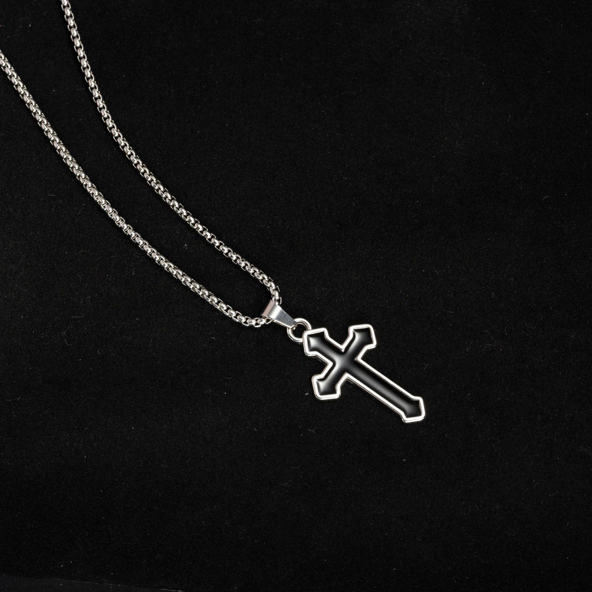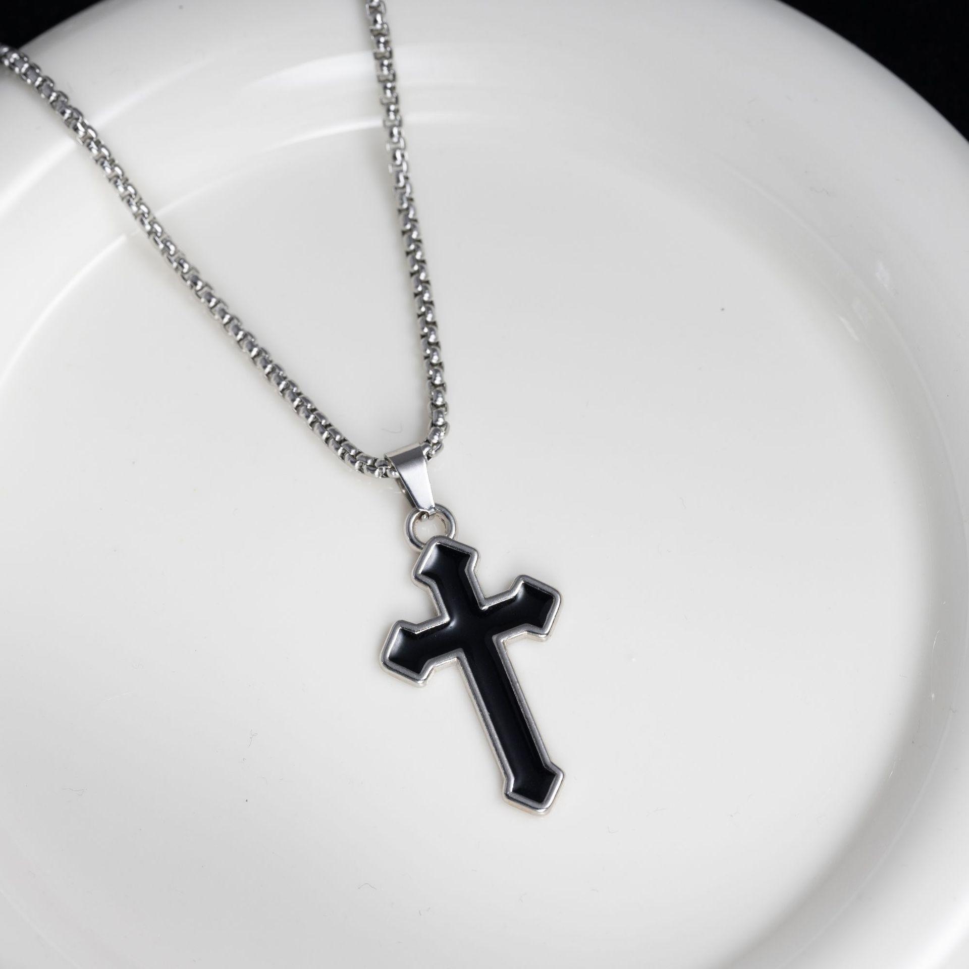 Black oil drop cross [titanium steel chain 70CM]]