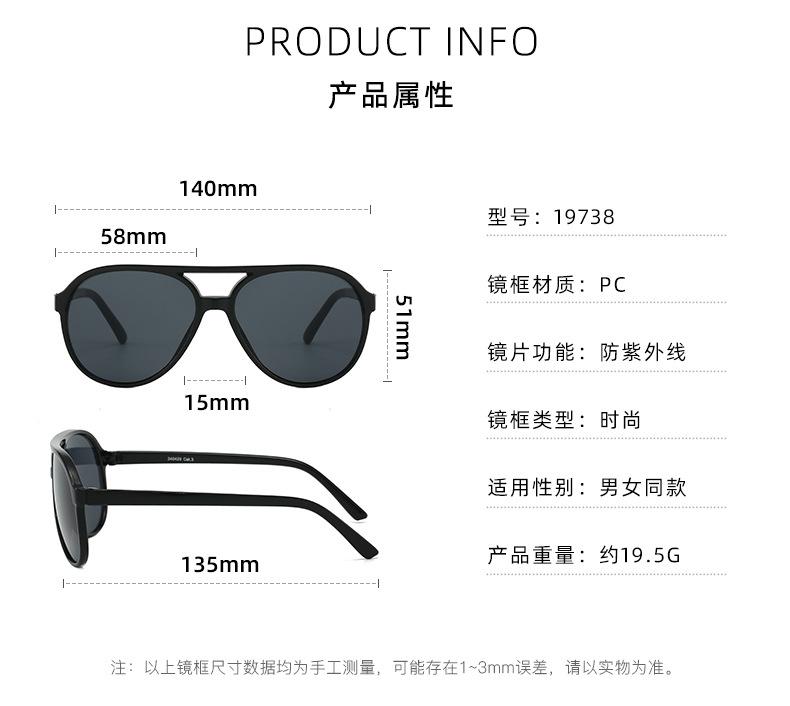 Gafas de sol de nuevo estilo moda doble puente montura generosa gafas unisex gafas de sol compras jugar gafas de sol