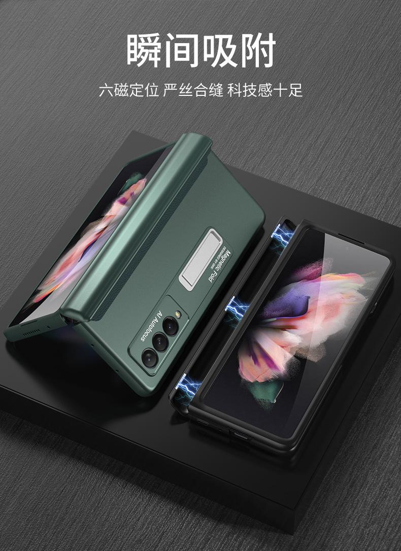 Adecuado para Samsung Zfold3 Soporte Magnético Funda para Teléfono Ultrafina Plegable W22 Bisagra de Cobertura Total Carcasa Protectora Creativa