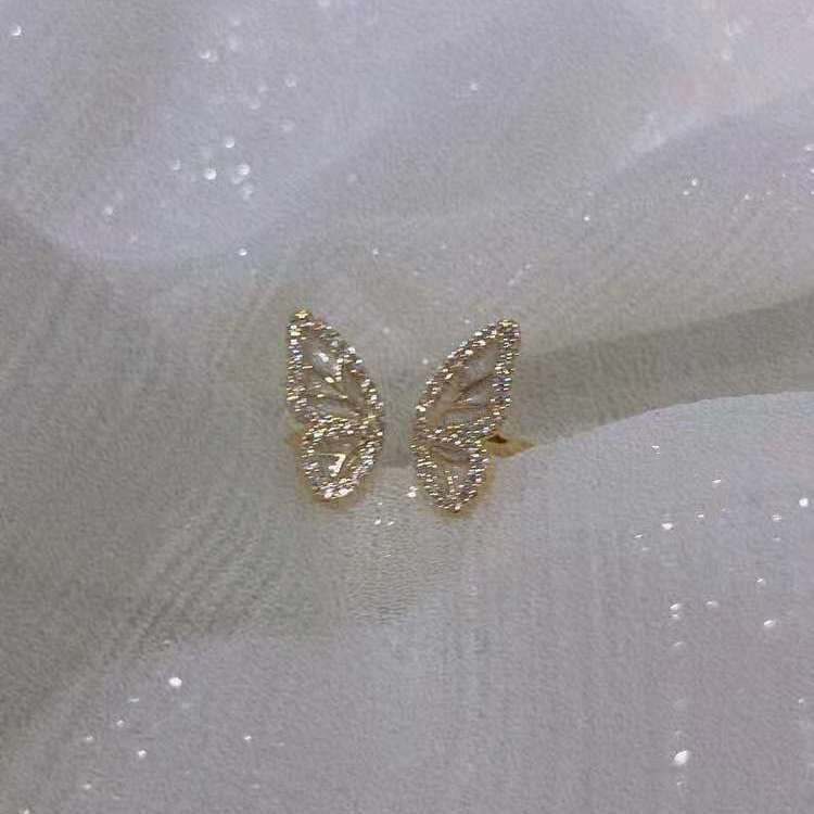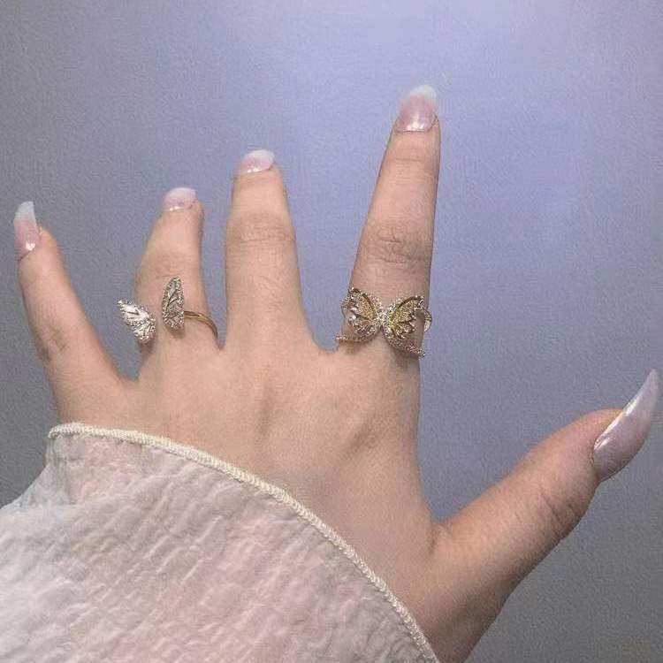 Hada Completa ~ Anillo Exquisito de Butterfly Hollow Anillo Simple de Diamantes para Mujer Elegante Retro Corte Anillo Abierto Diamante Completo