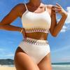 Traje de baño de dos piezas de comercio exterior europeo y americano para mujer, Nuevo traje de baño sexy con empalme de tiras para aguas termales, Traje de baño bikini de playa para mujer