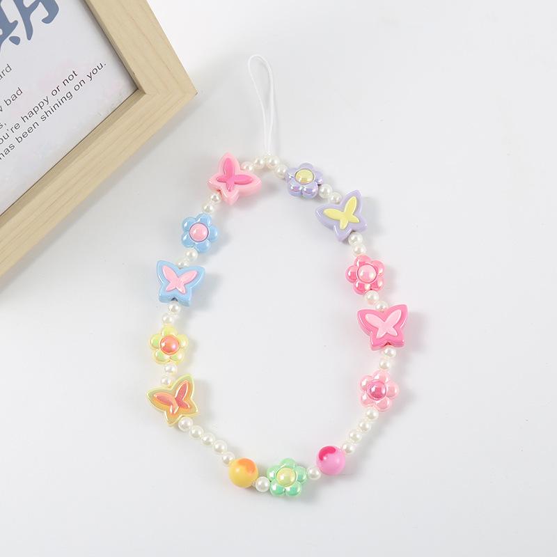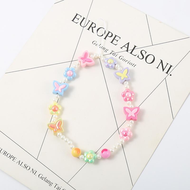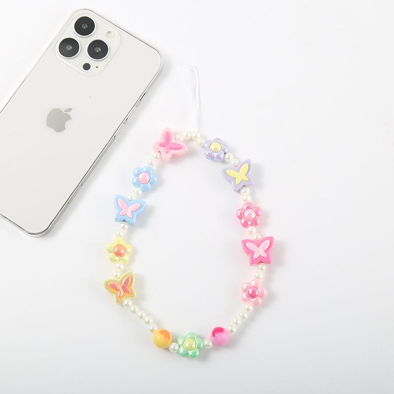 Cadena para teléfono de flor de mariposa, Popular en Xiaohongshu, Chica caliente millennial Ins Dulce Lanyard para cámara Ccd Joyería con cuentas