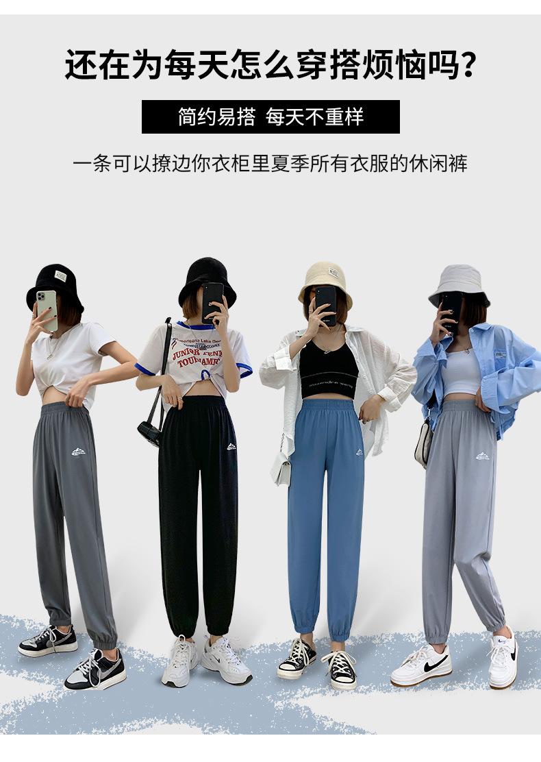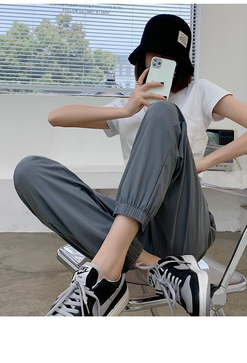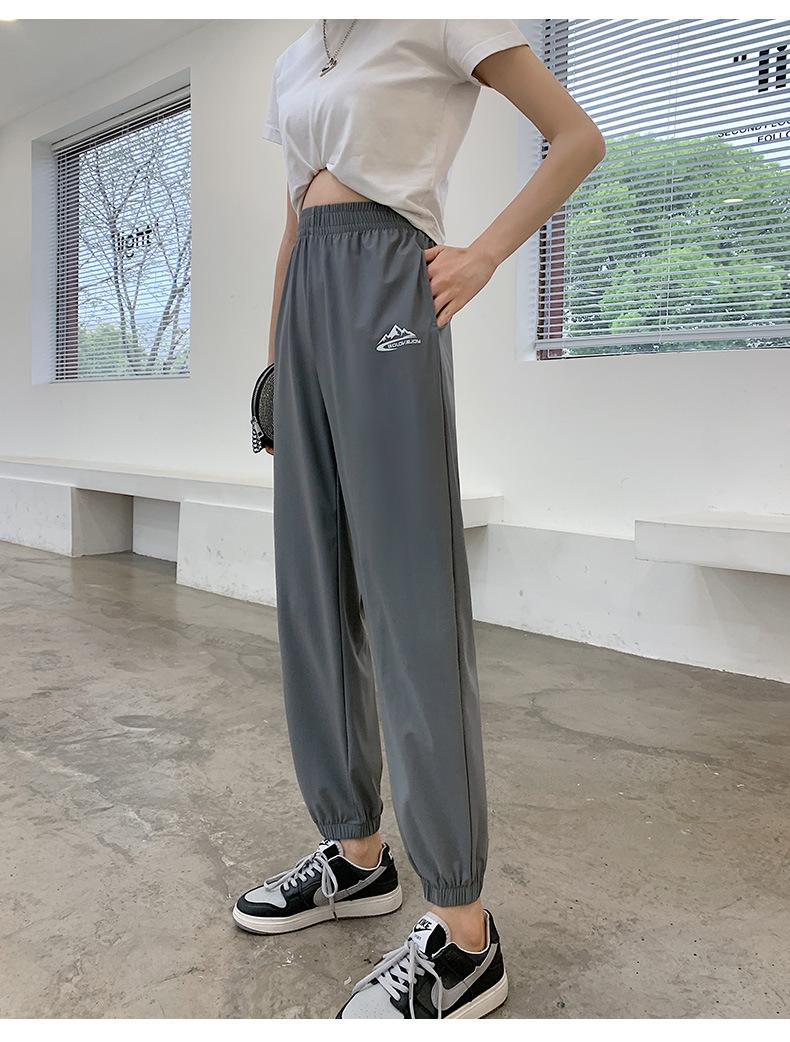 Pantalones deportivos de secado rápido para mujer, recién llegados de verano, pantalones cortos Hallen, cintura alta, sueltos, con puntera en la pierna, pantalones casuales de seda de hielo pequeños, finos