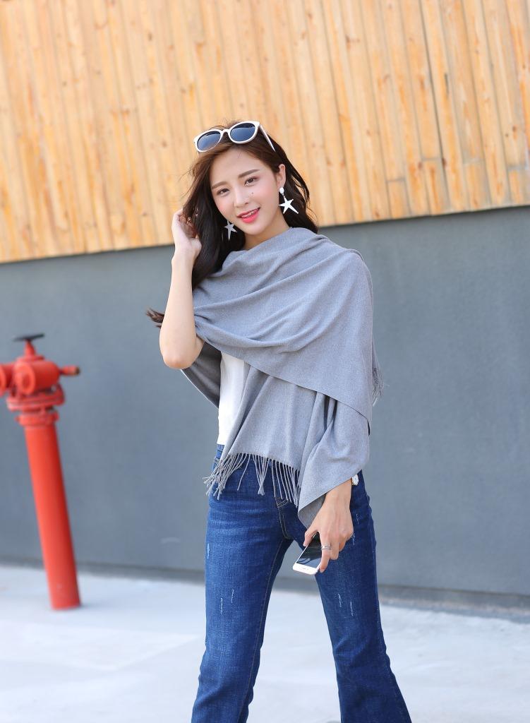 Bufanda Grande Roja Imitación Cachemira Regalo Fiesta Anual Versátil Color Sólido Flecos Bufanda Femenina Fabricante Venta al Mayoreo Elegante