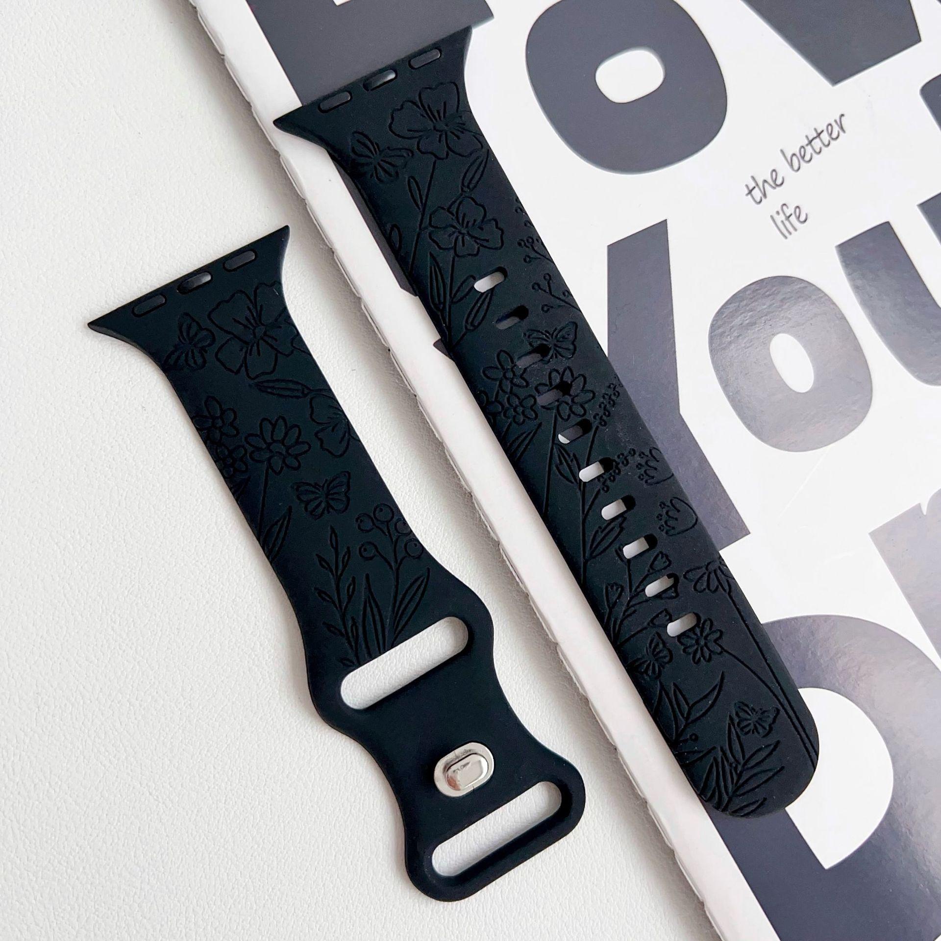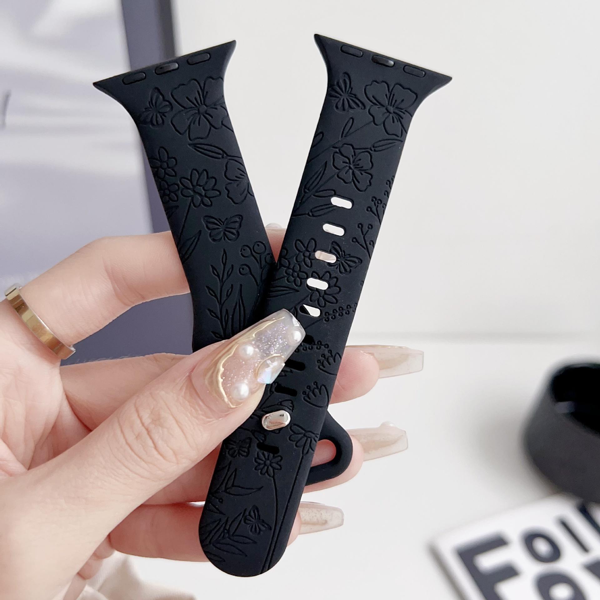 Correa de Silicona con Patrón en Relieve y Doble Hebilla Iwatch11 Adecuada para Apple Watch Applewatch1098 Generación Sports Se
