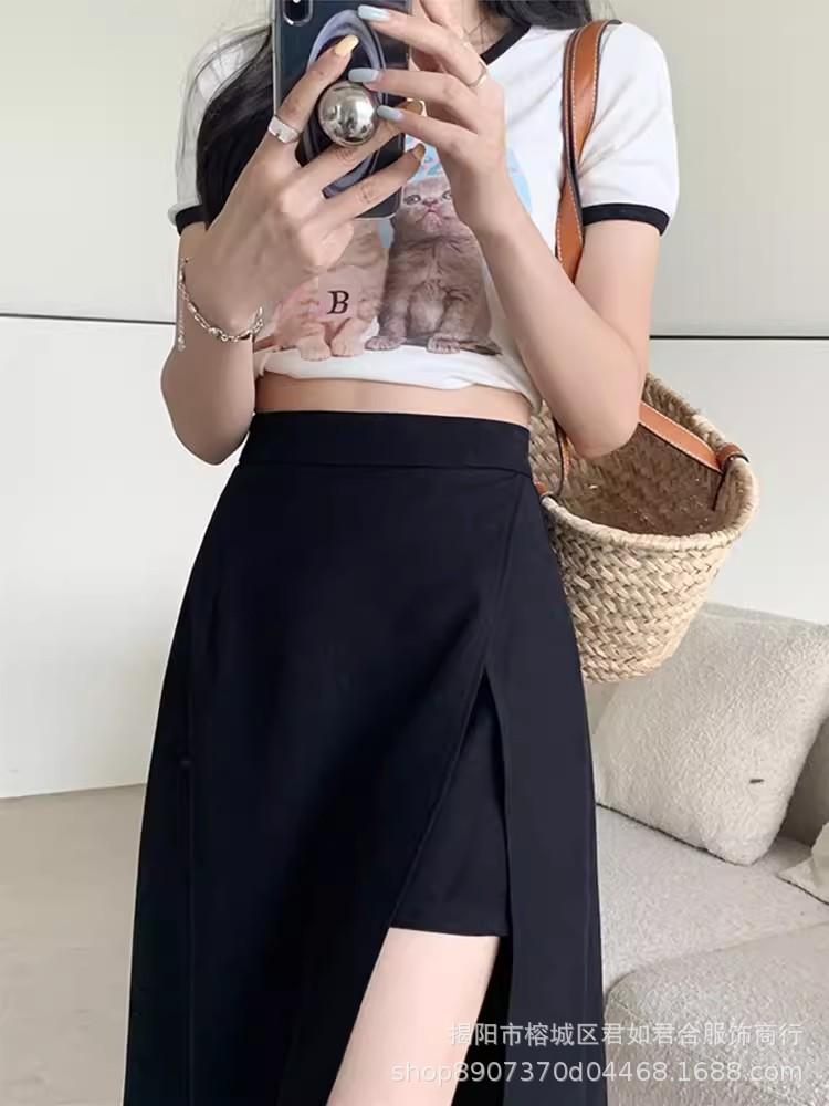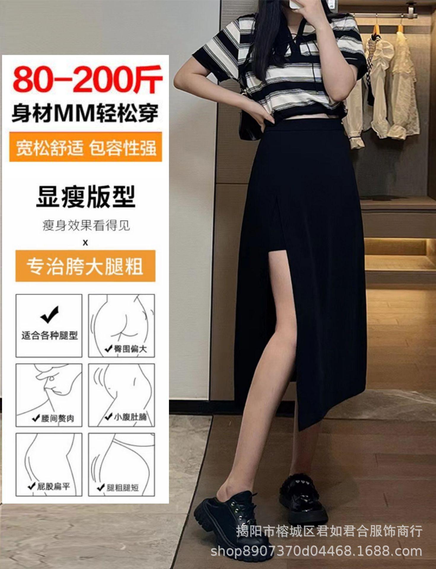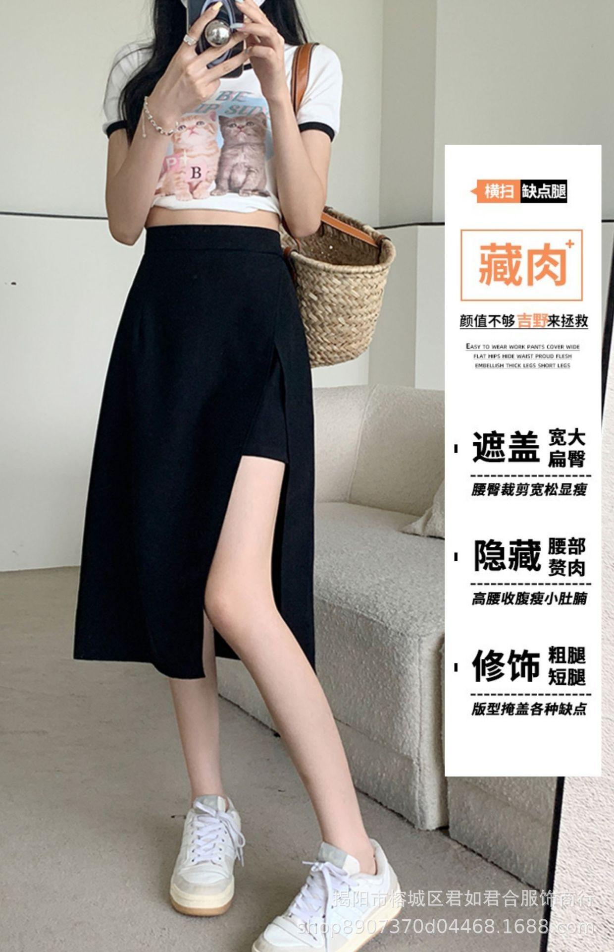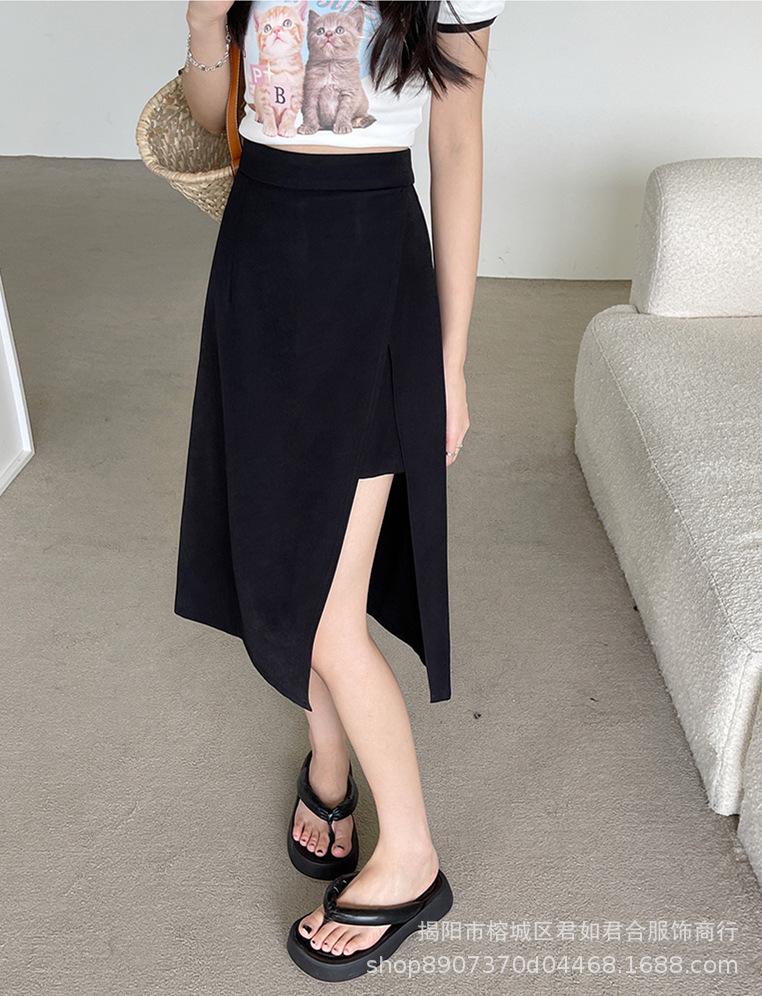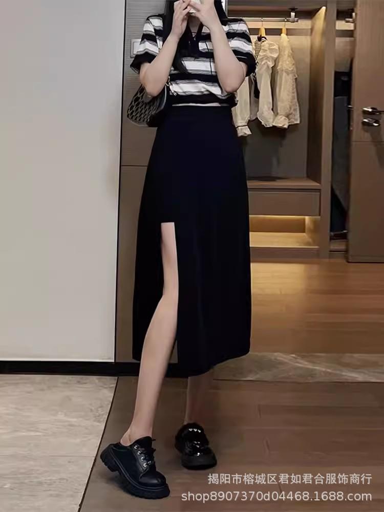 Falda fina de verano de media longitud, nuevo estilo occidental 2024, cintura alta explosiva, adelgazante, línea A, falda larga, falda con abertura pequeña