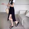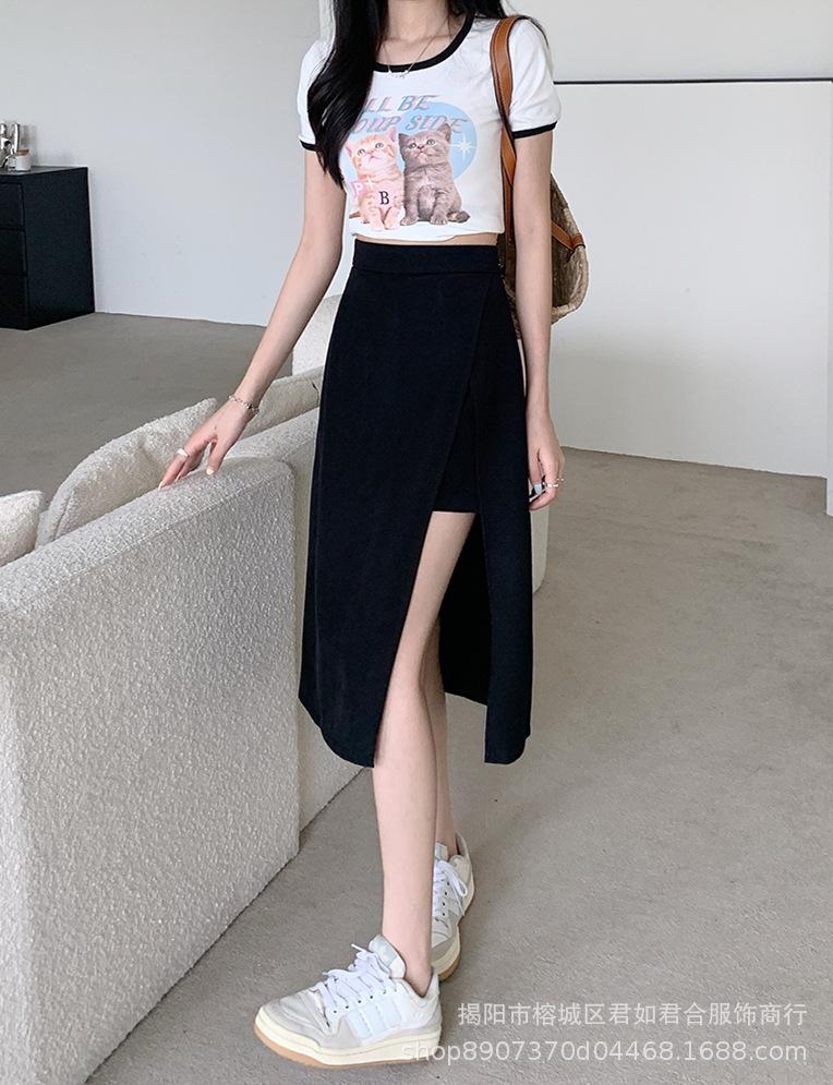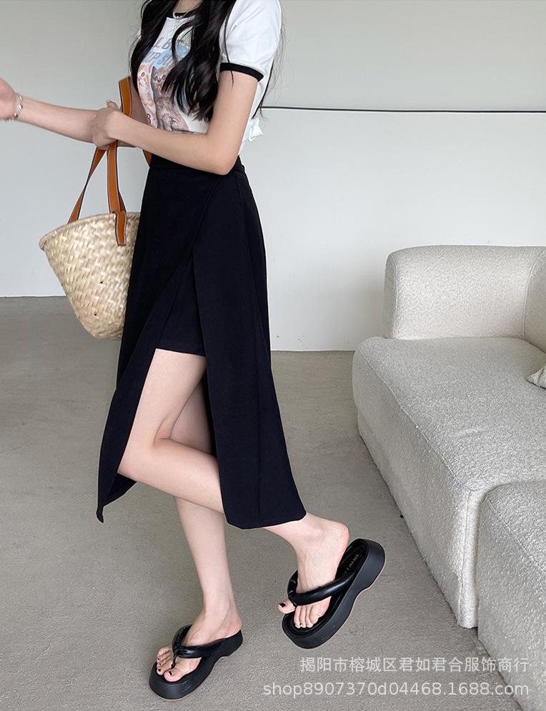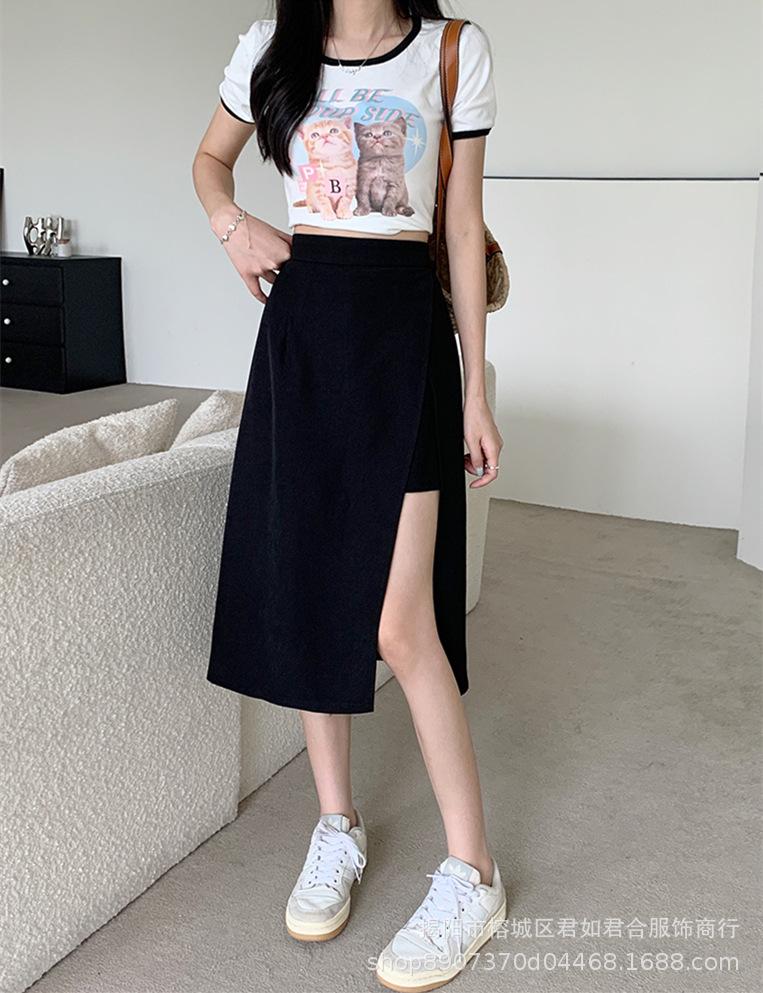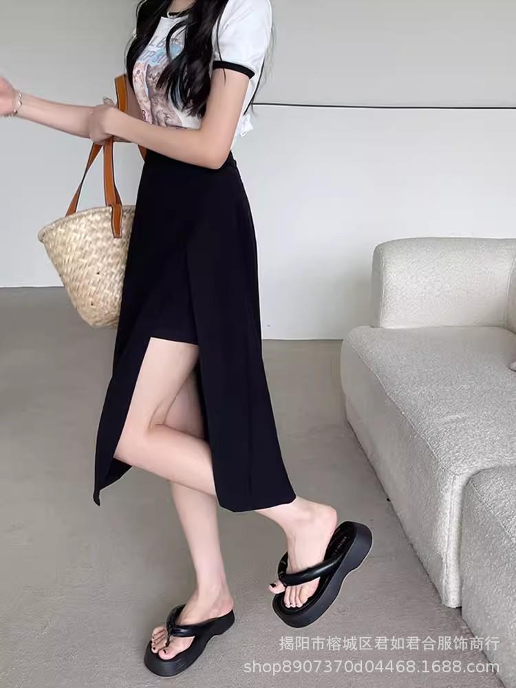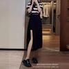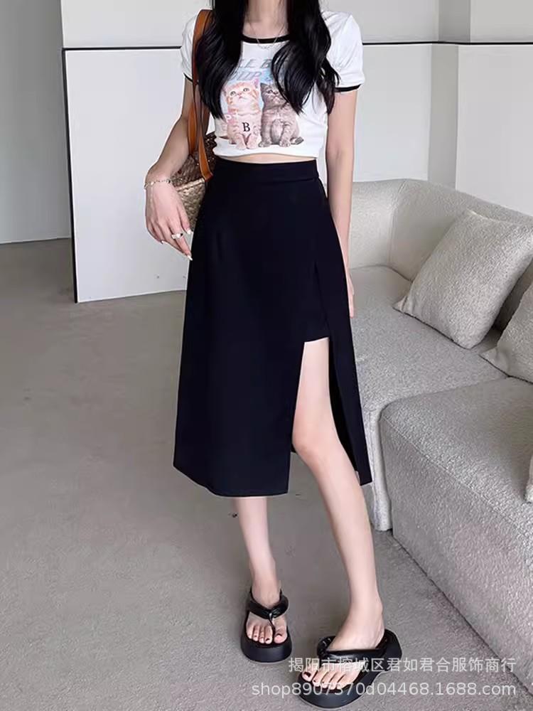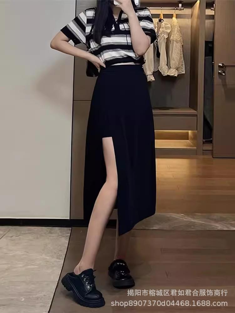 Falda fina de verano de media longitud, nuevo estilo occidental 2024, cintura alta explosiva, adelgazante, línea A, falda larga, falda con abertura pequeña