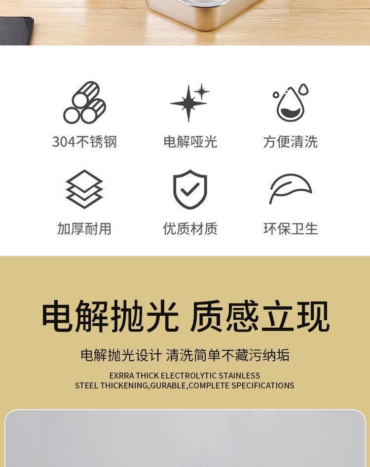 Lavabo cuadrado de acero inoxidable 304, plato rectangular cuadrado, cuenco para porciones de buffet, bandeja profunda, cuenco para comida rápida con tapa, caja cuadrada