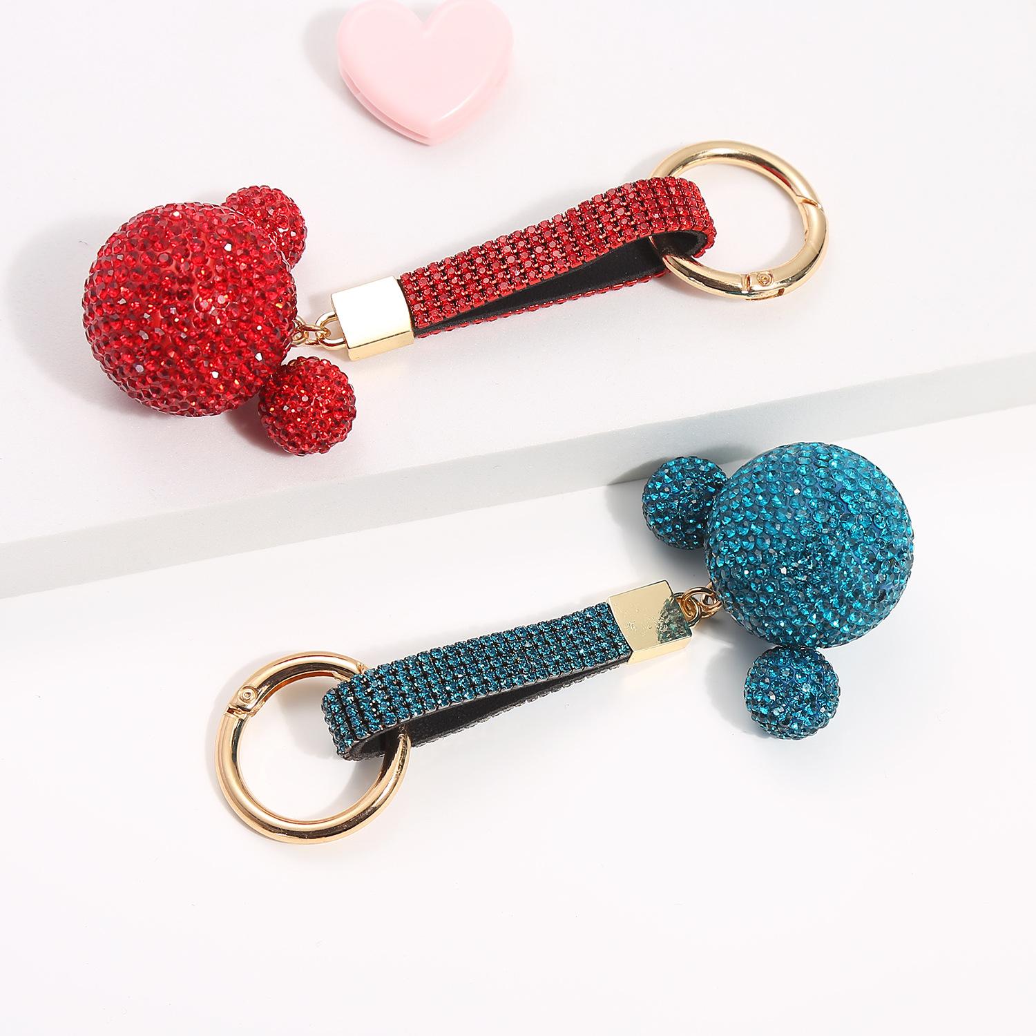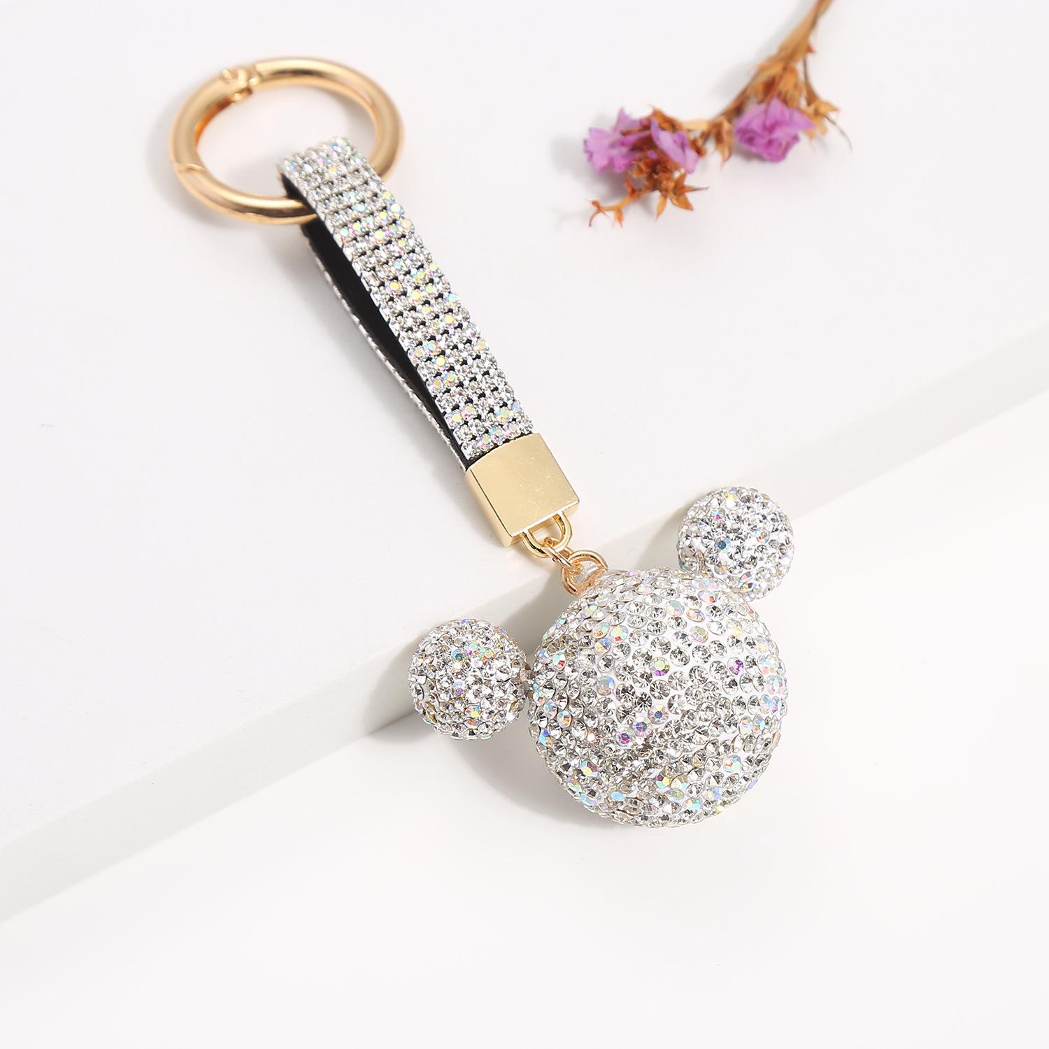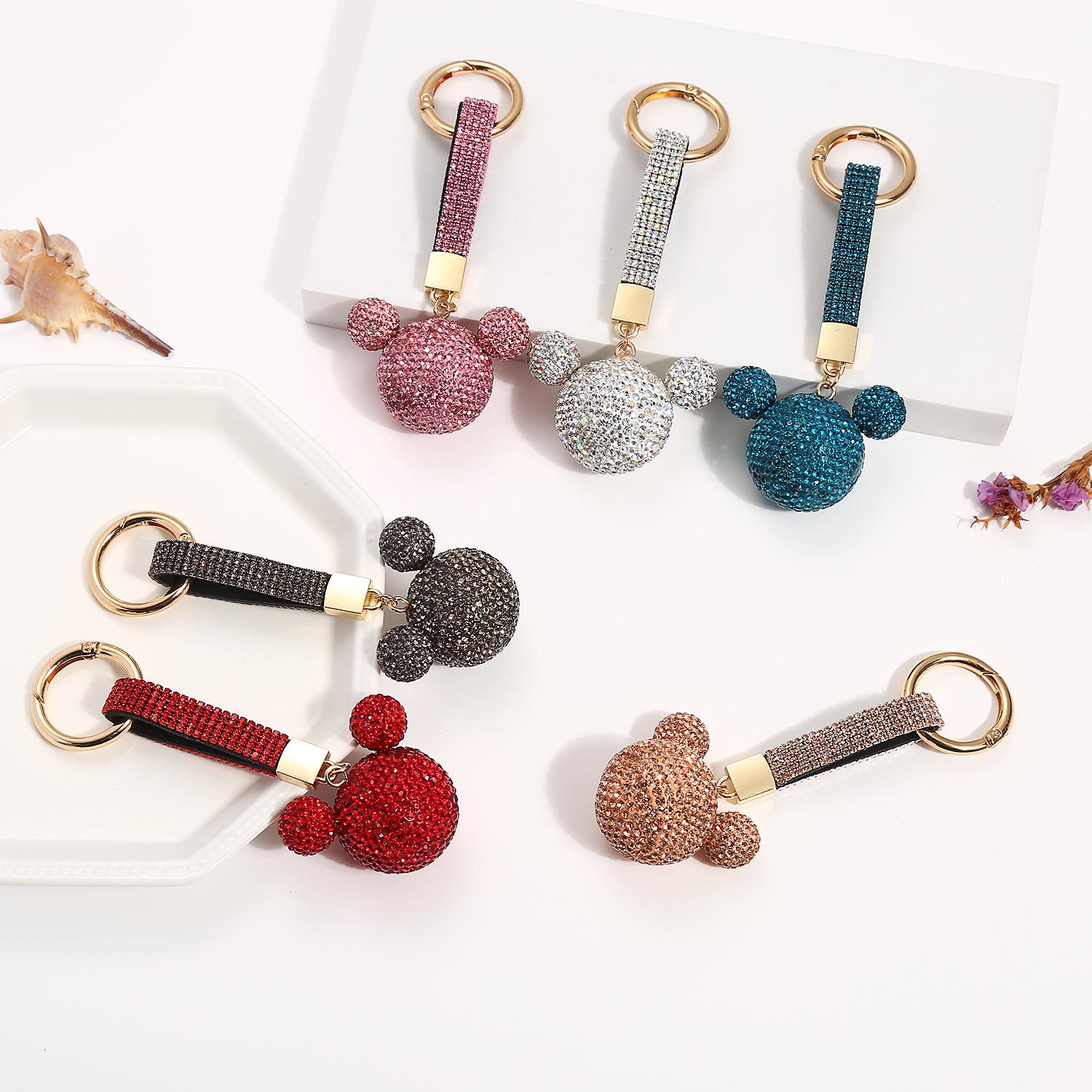 Llavero de Mickey con incrustaciones de diamantes, ideal para mujeres con personalidades de internet, bonito y creativo adorno para bolsos, llavero de coche de alta gama.